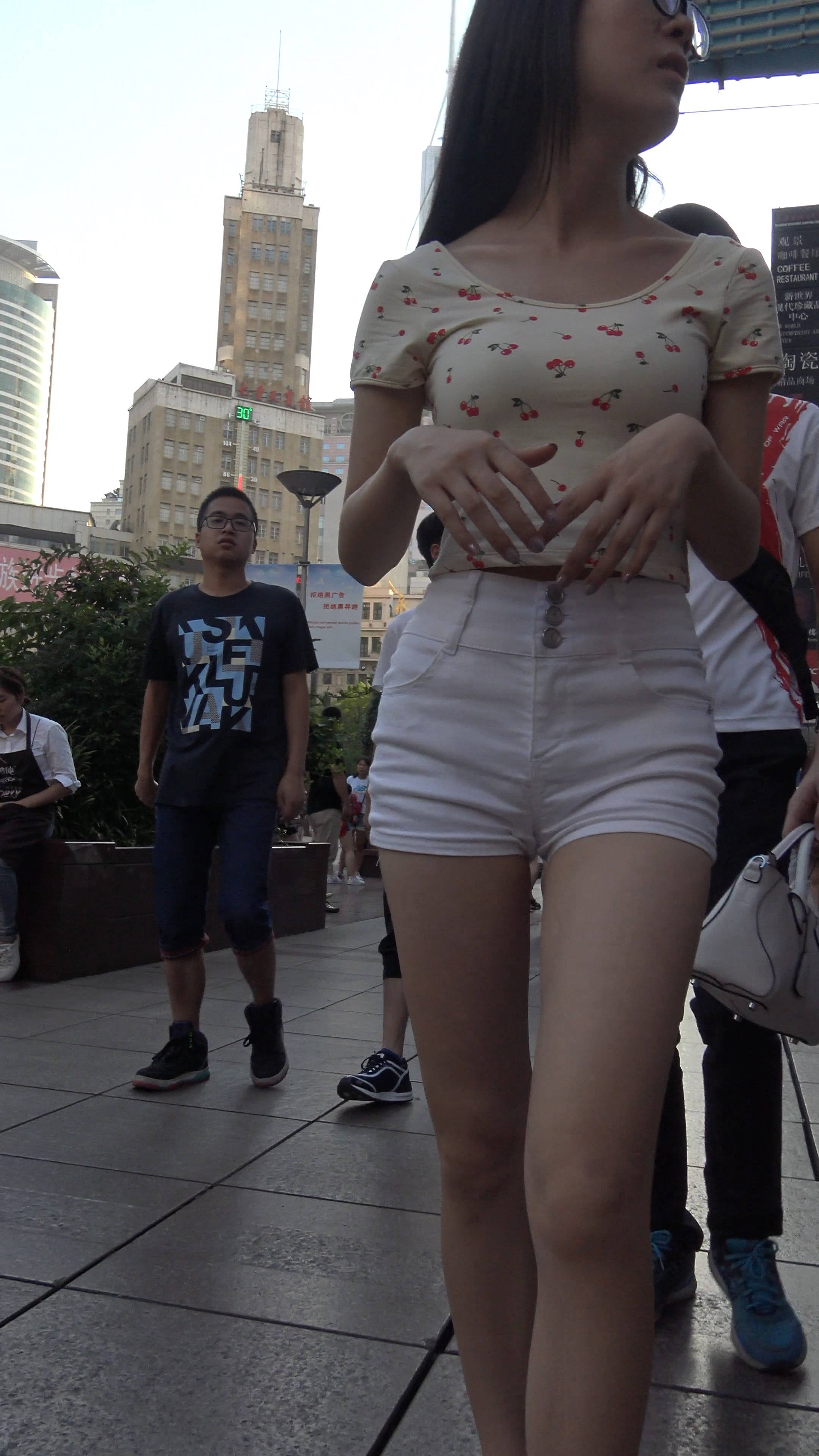 4k-街拍白短热裤苹果臀裸腿运动鞋眼镜美女 编号7945 |