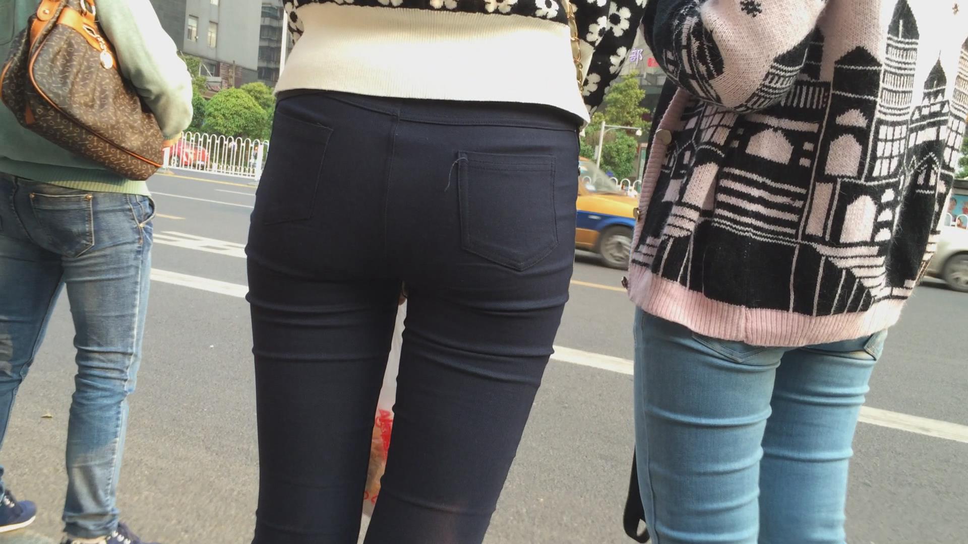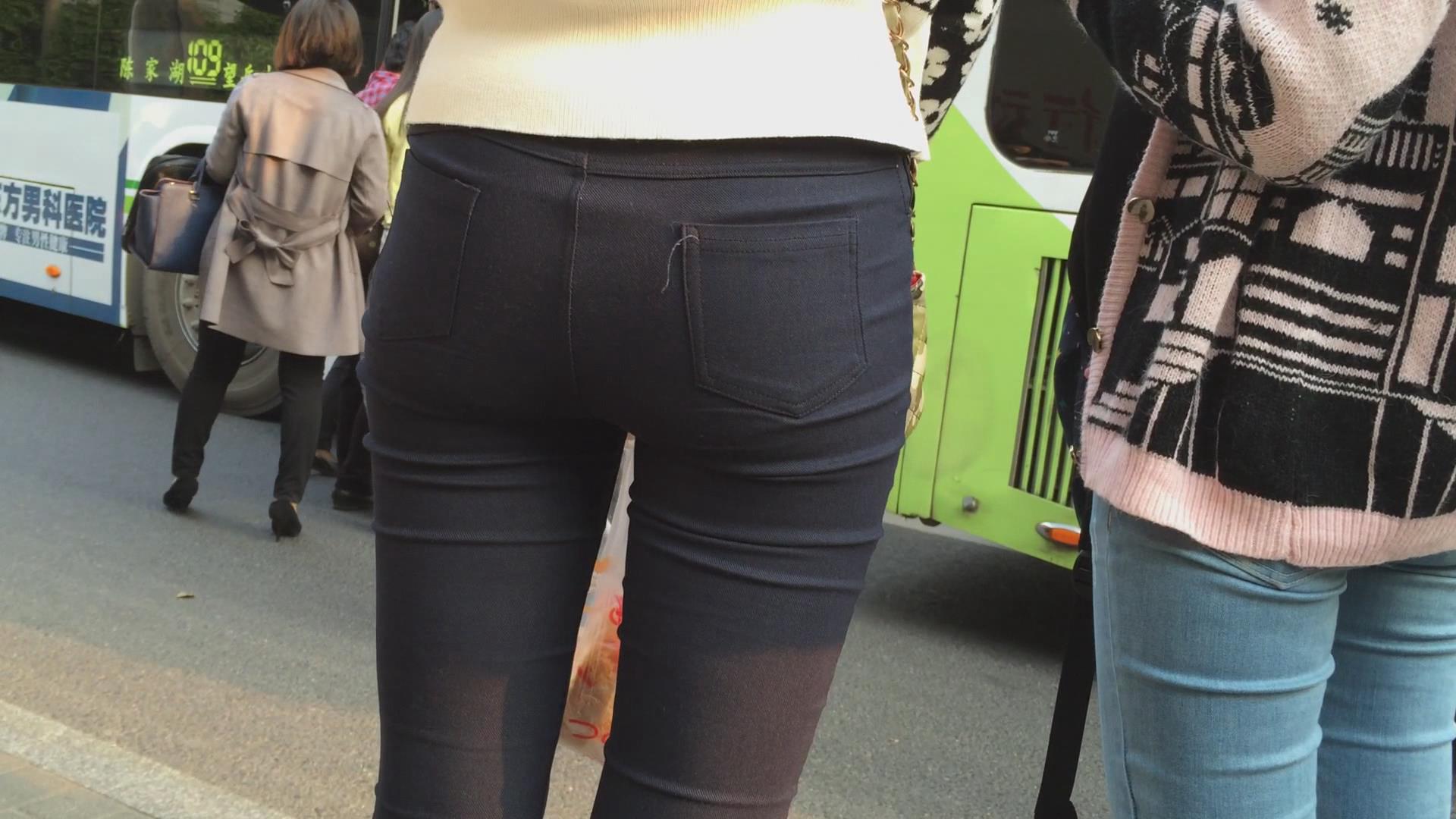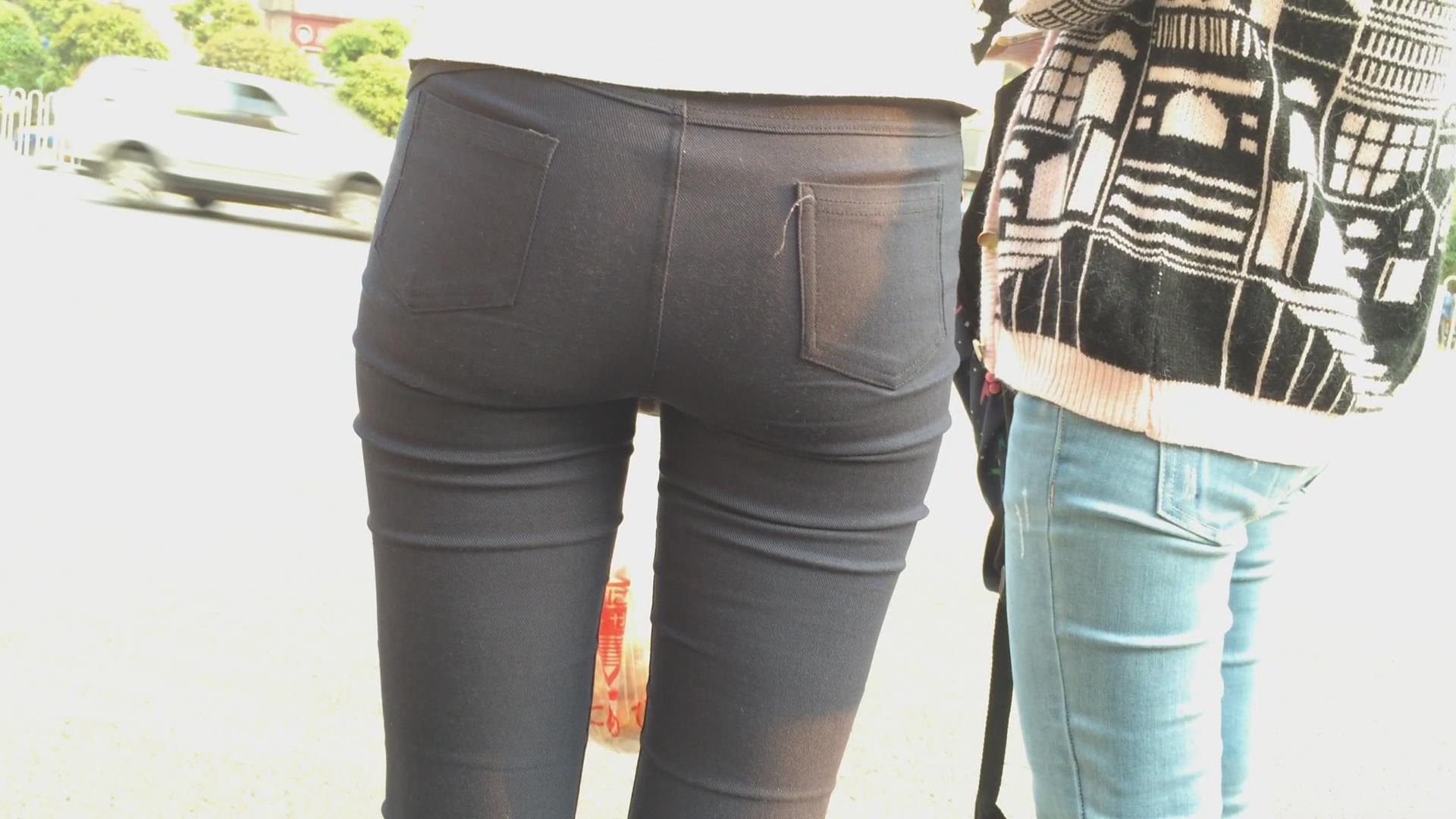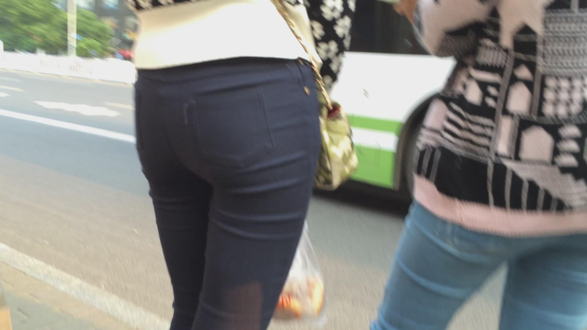 紧身黑裤美臀女孩在等公交 编号6095 |