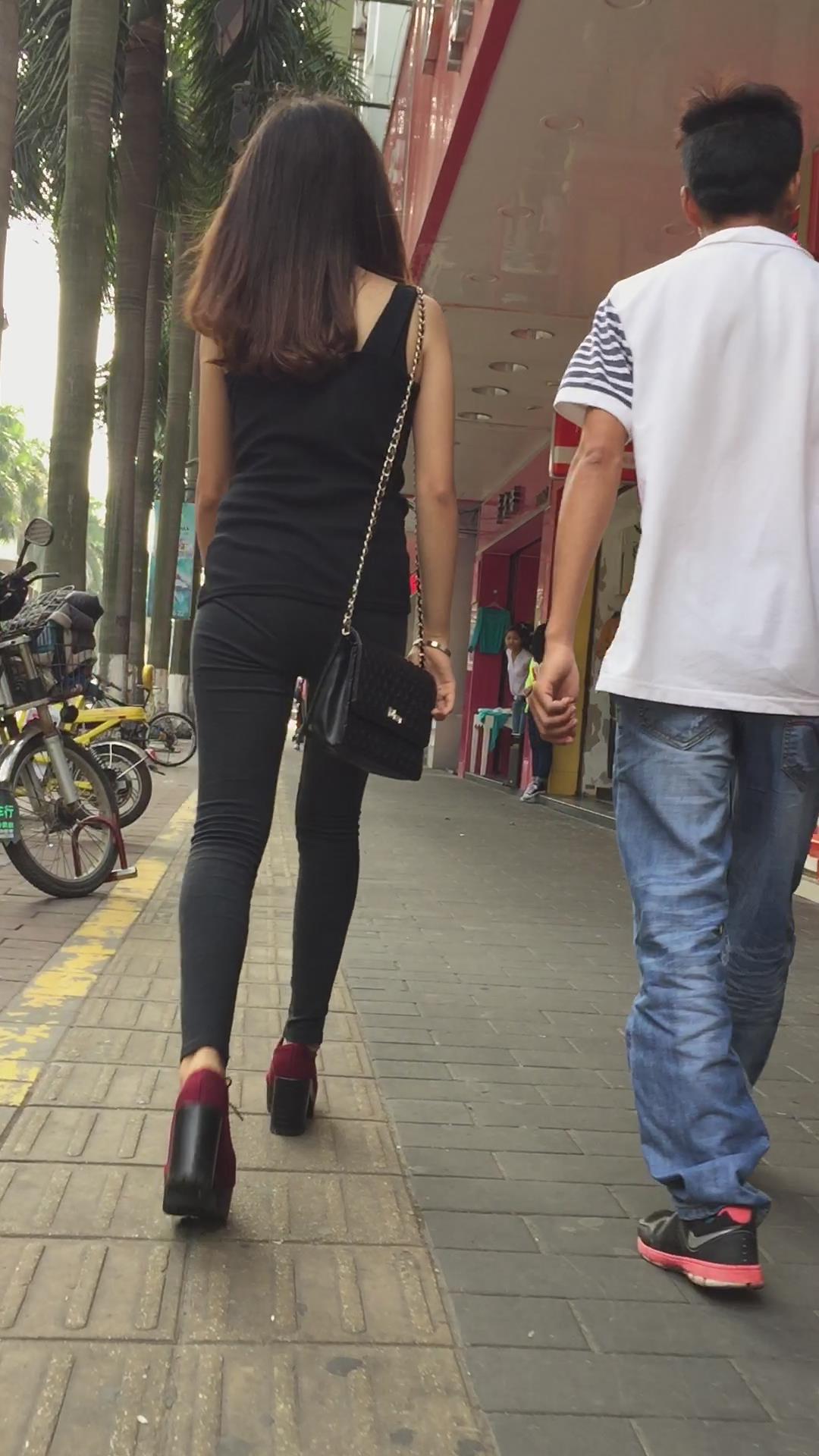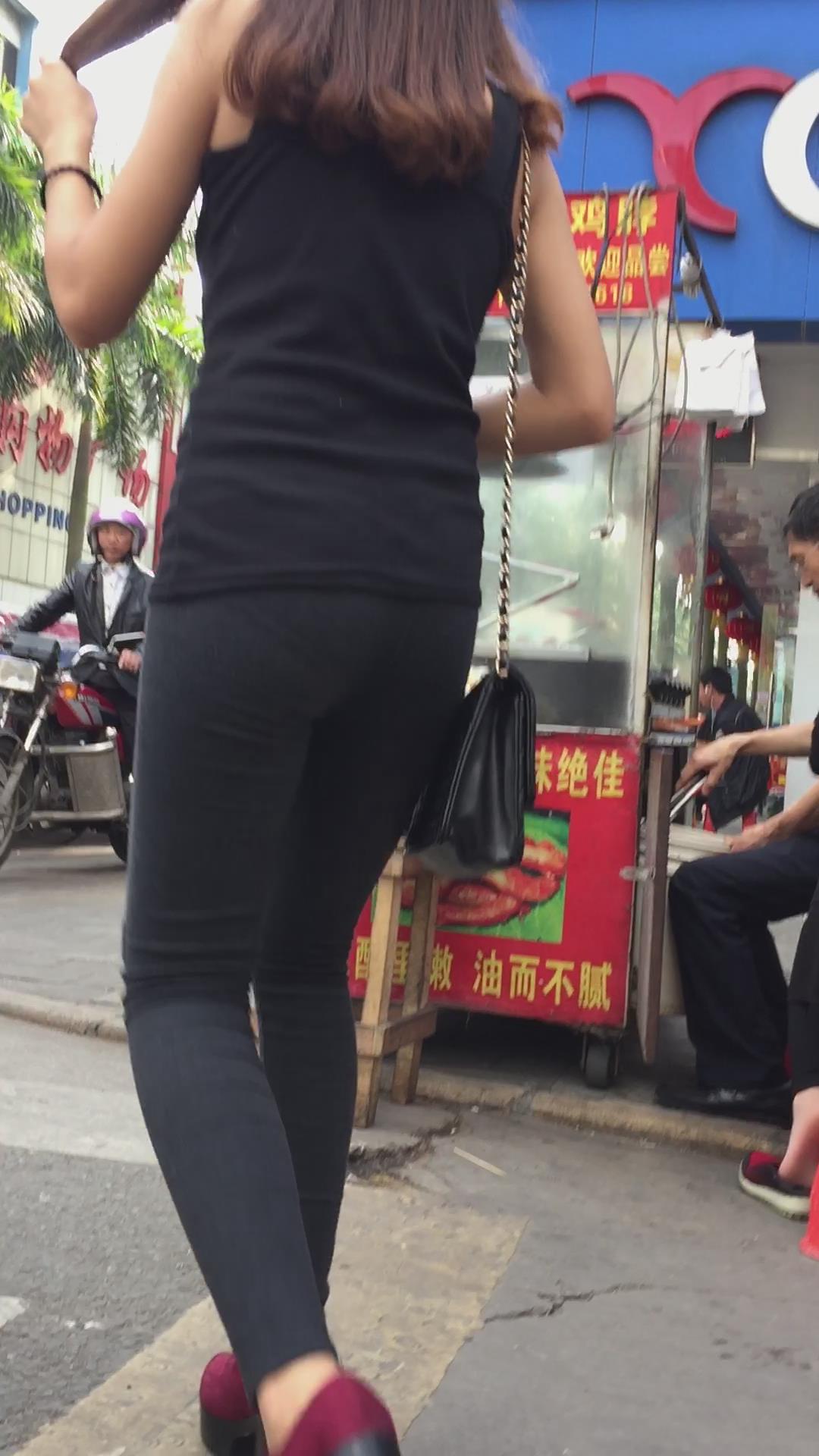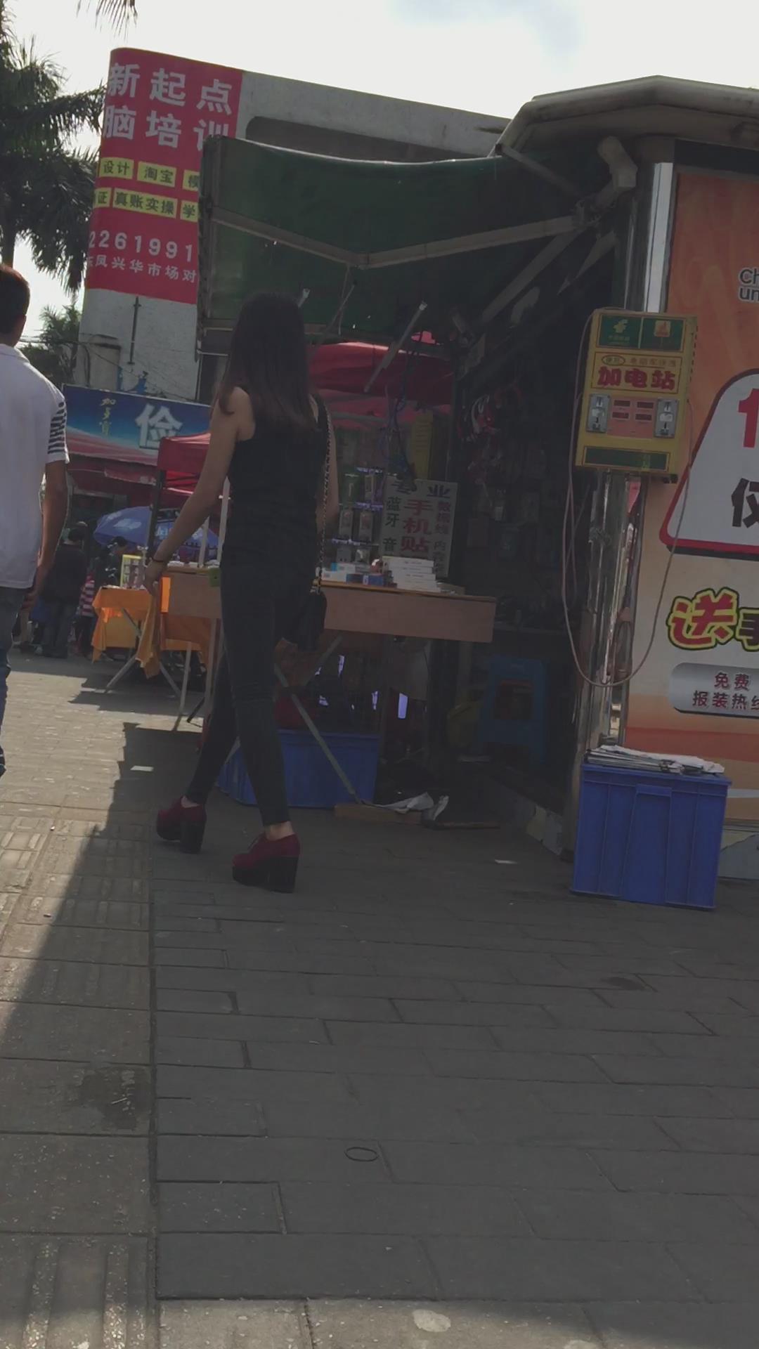 好身材紧身黑裤圆臀坡高跟鞋女孩 编号6100 |