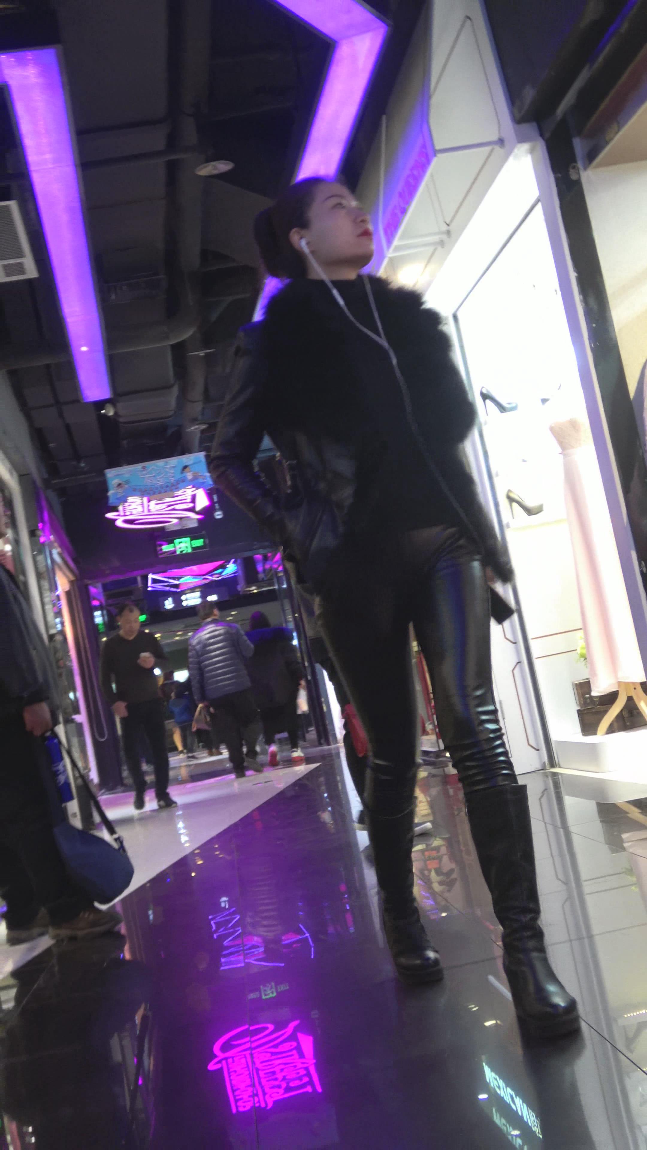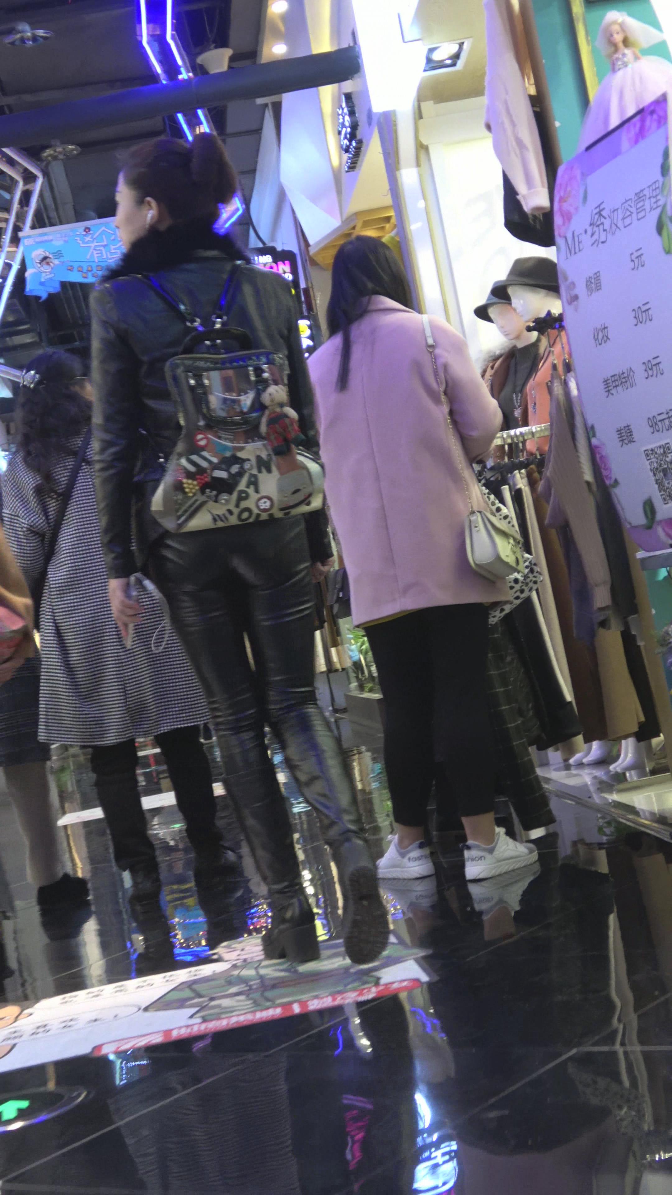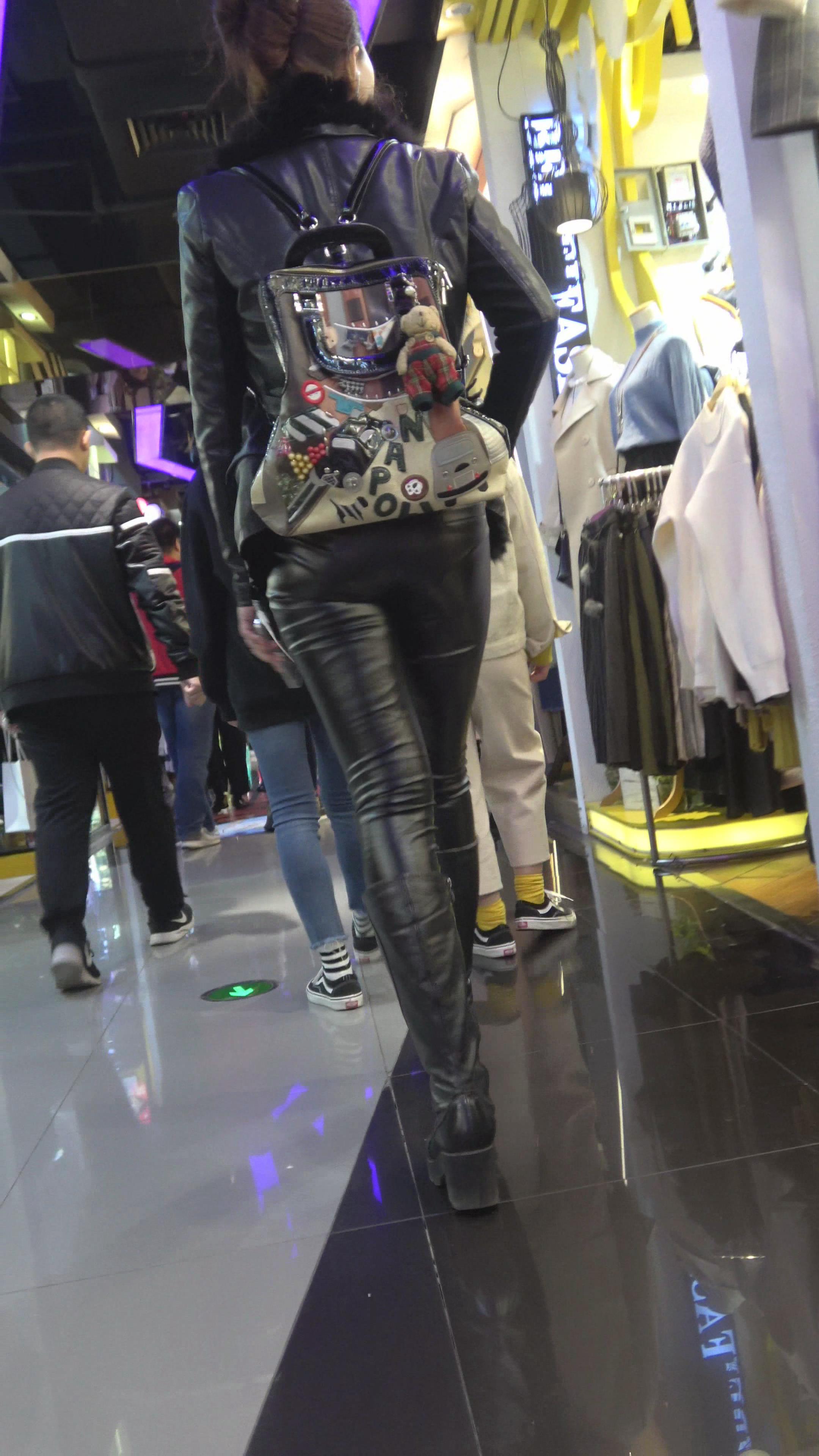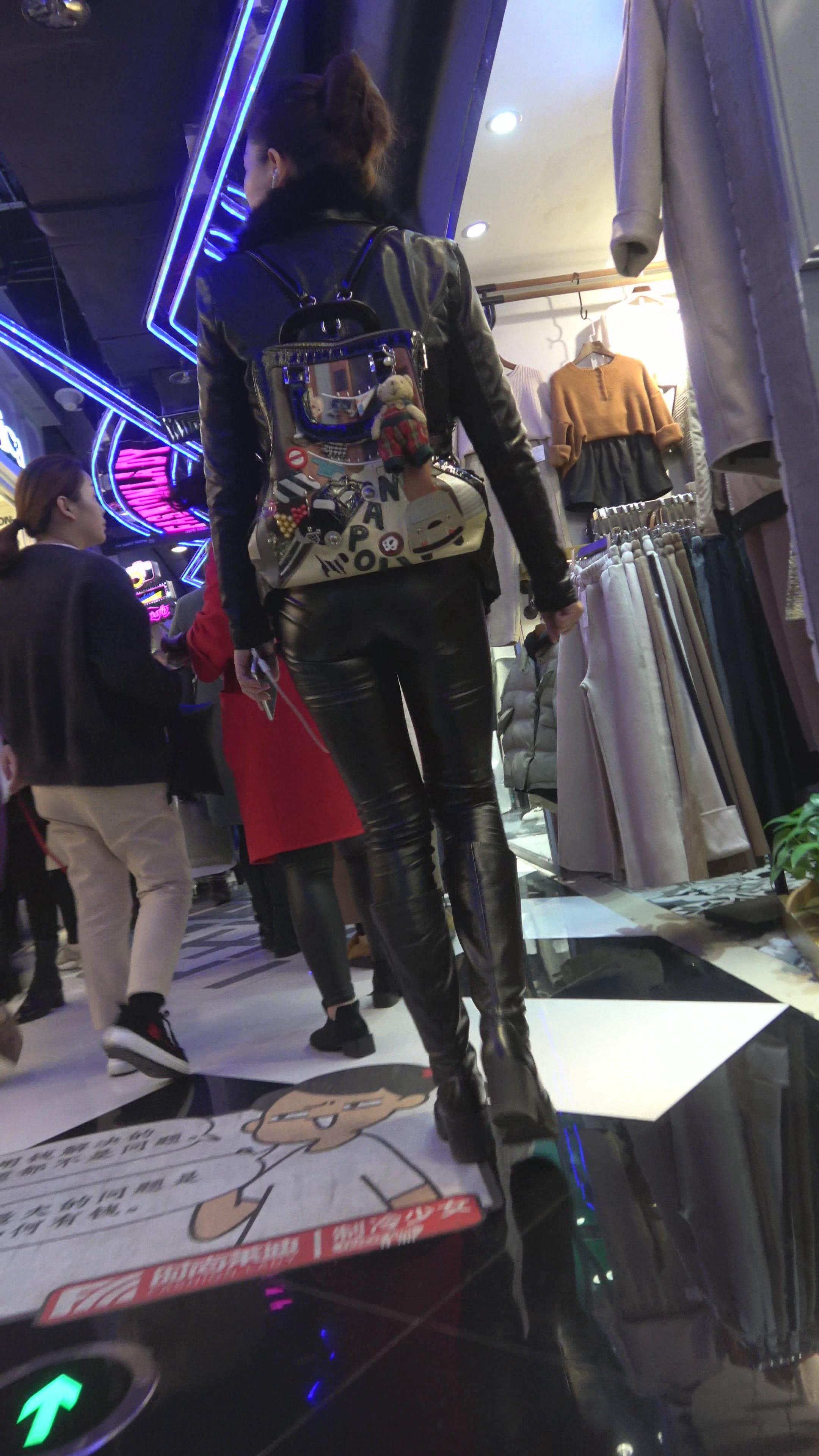 4K - 逛商场的紧身皮裤街拍少妇 编号5266 |