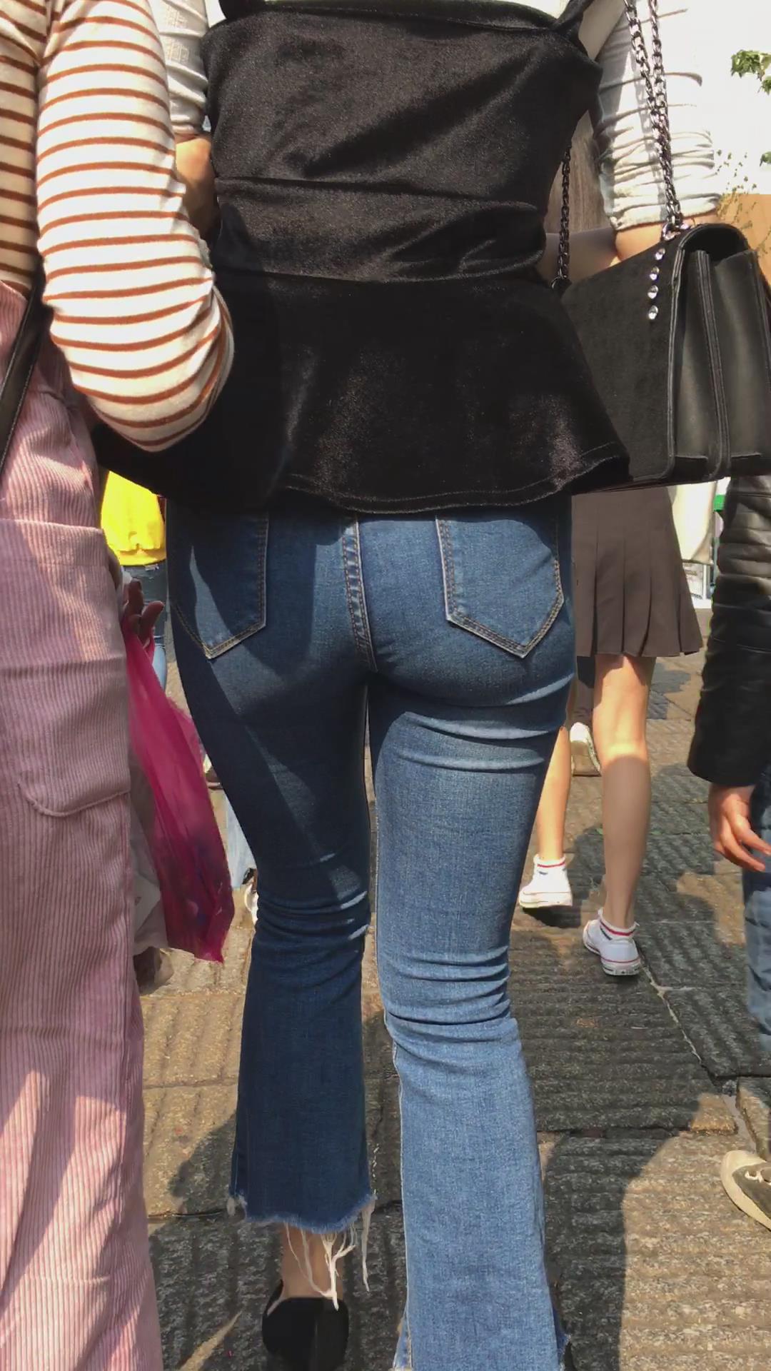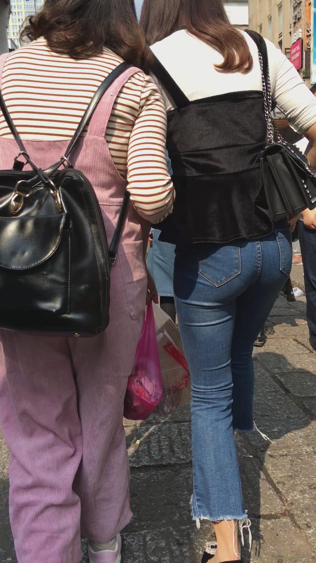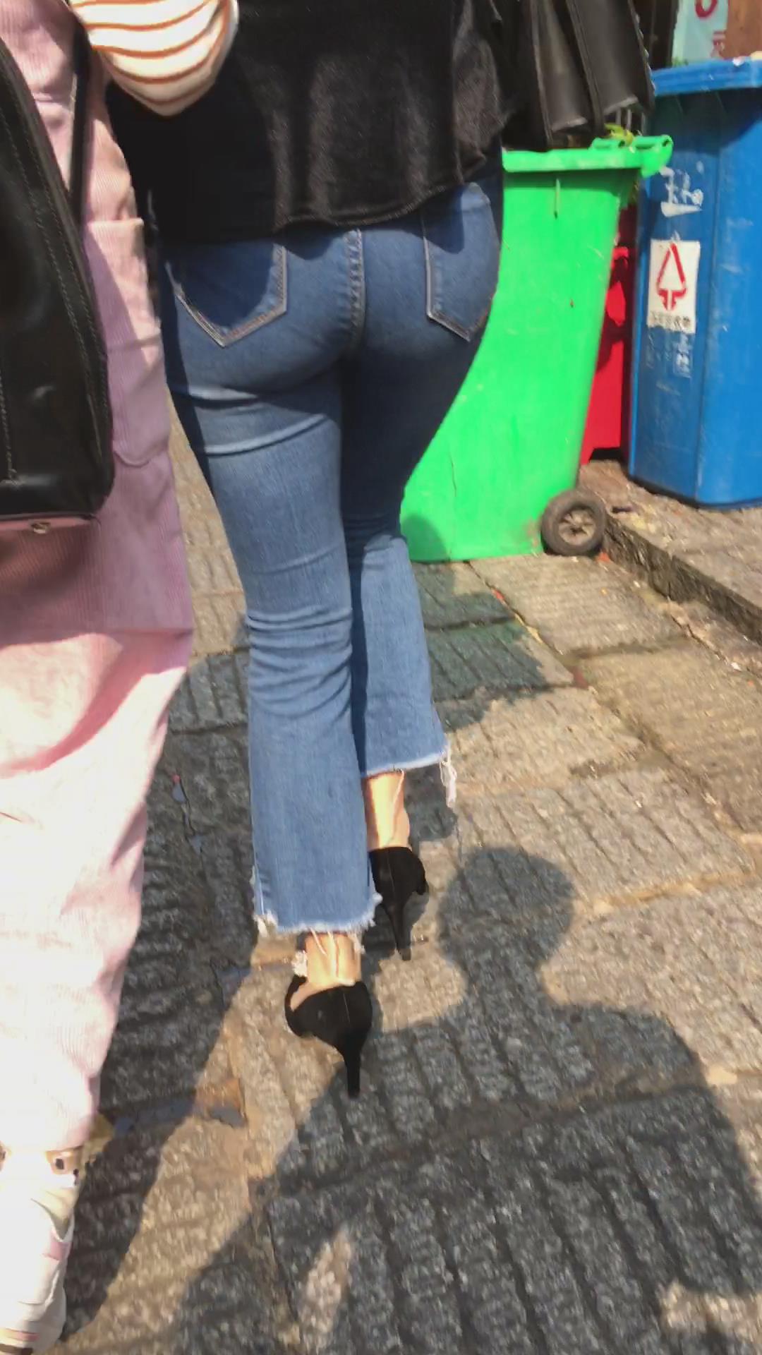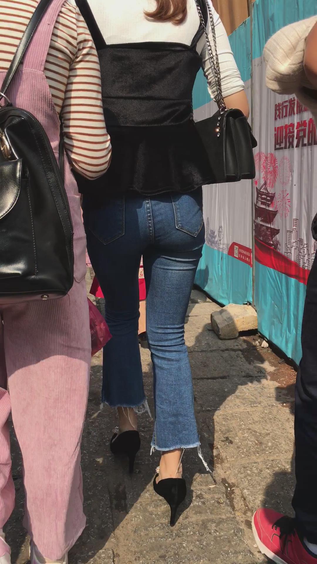 超紧身蓝色牛仔裤高跟鞋街拍美女 编号5332 |