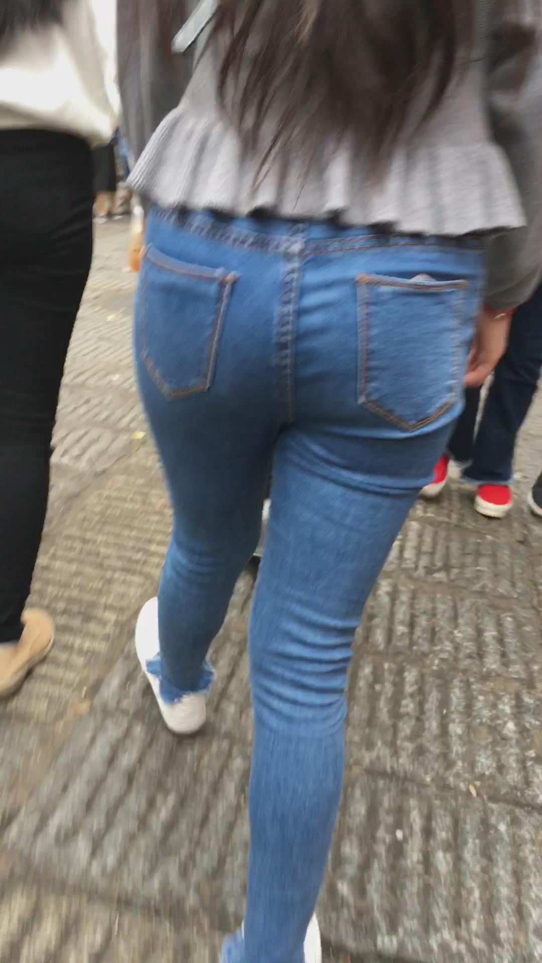 街拍圆臀紧身蓝色牛仔裤学生妹 编号5333 |