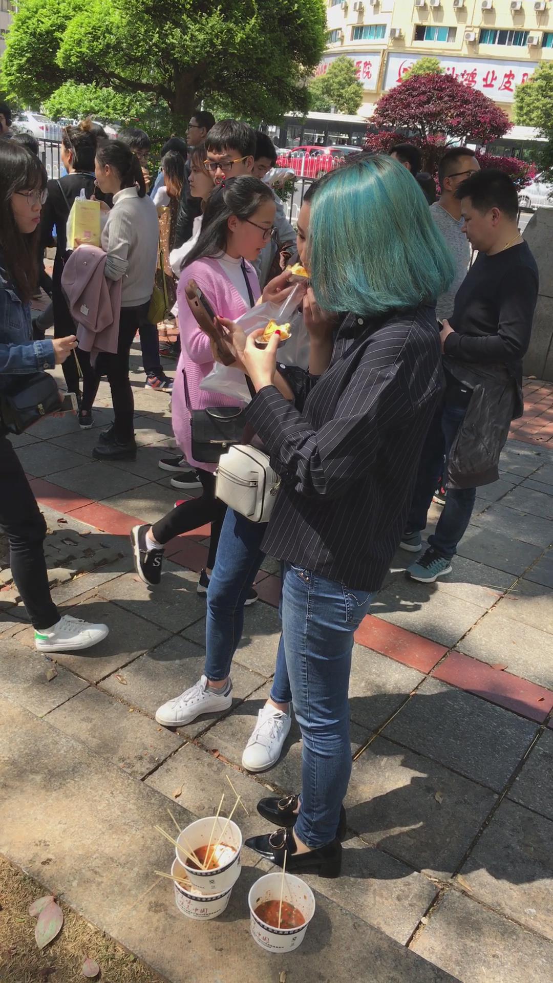 路边吃小吃的两位蓝牛妹纸 编号5353 |