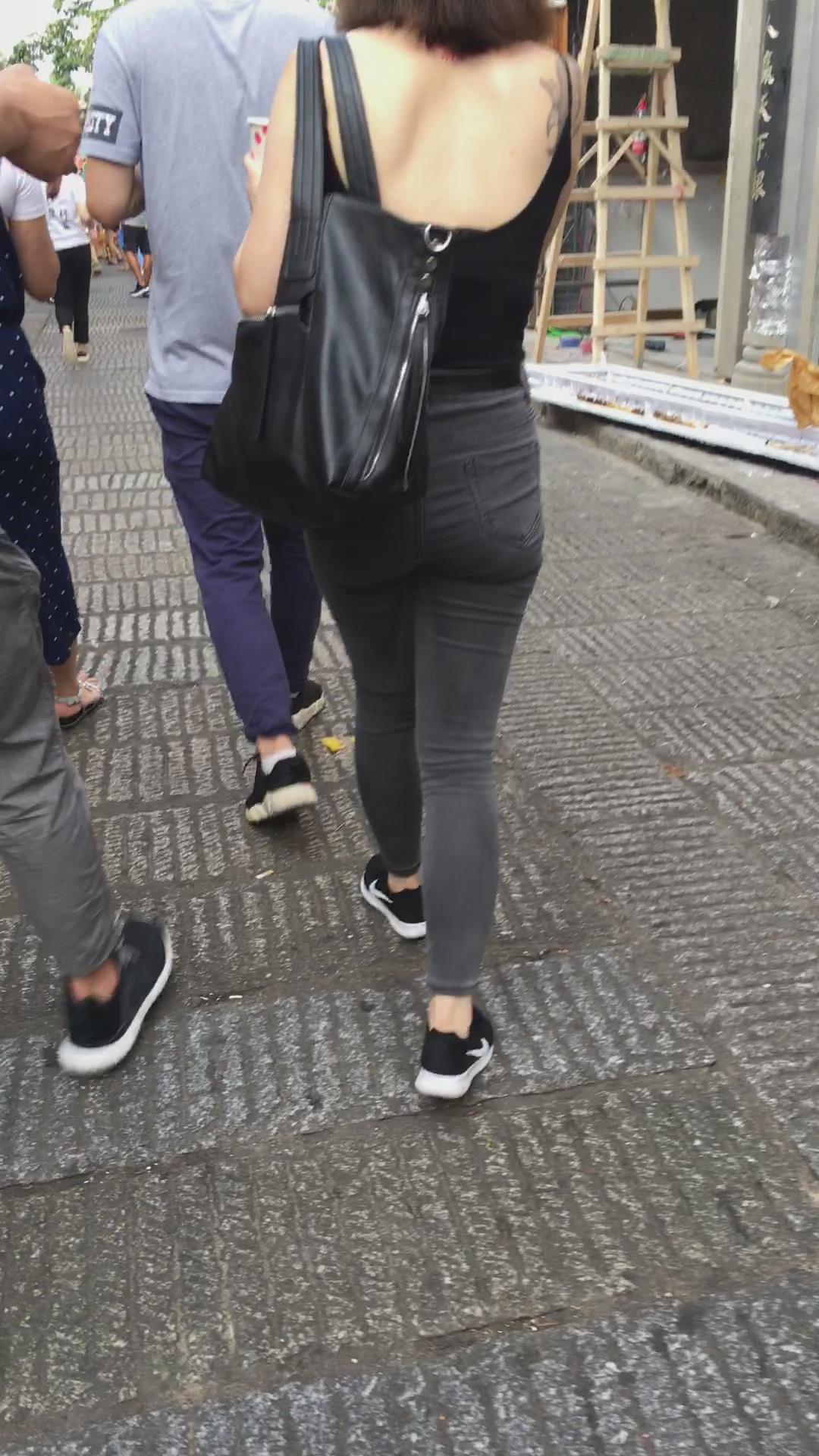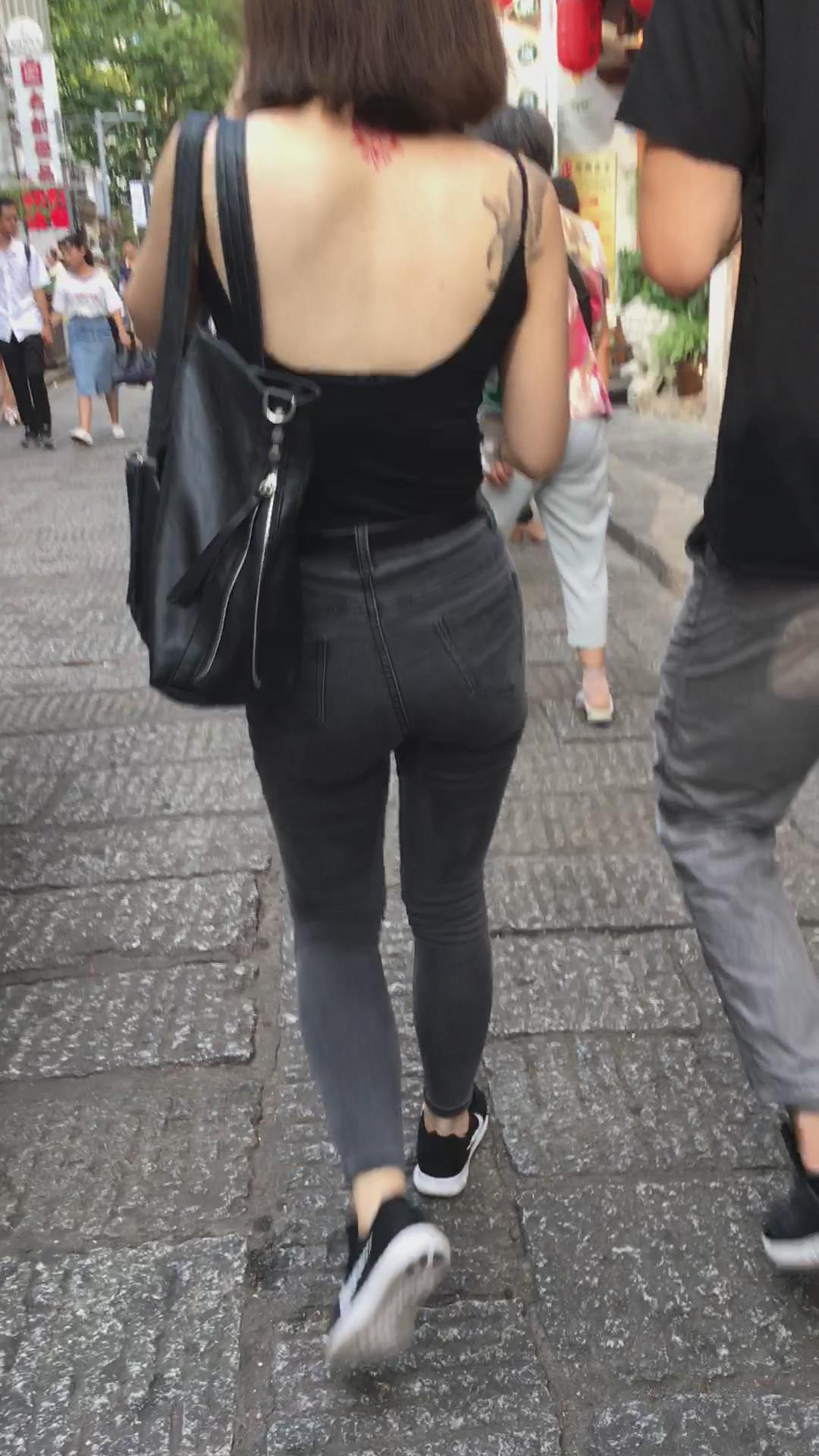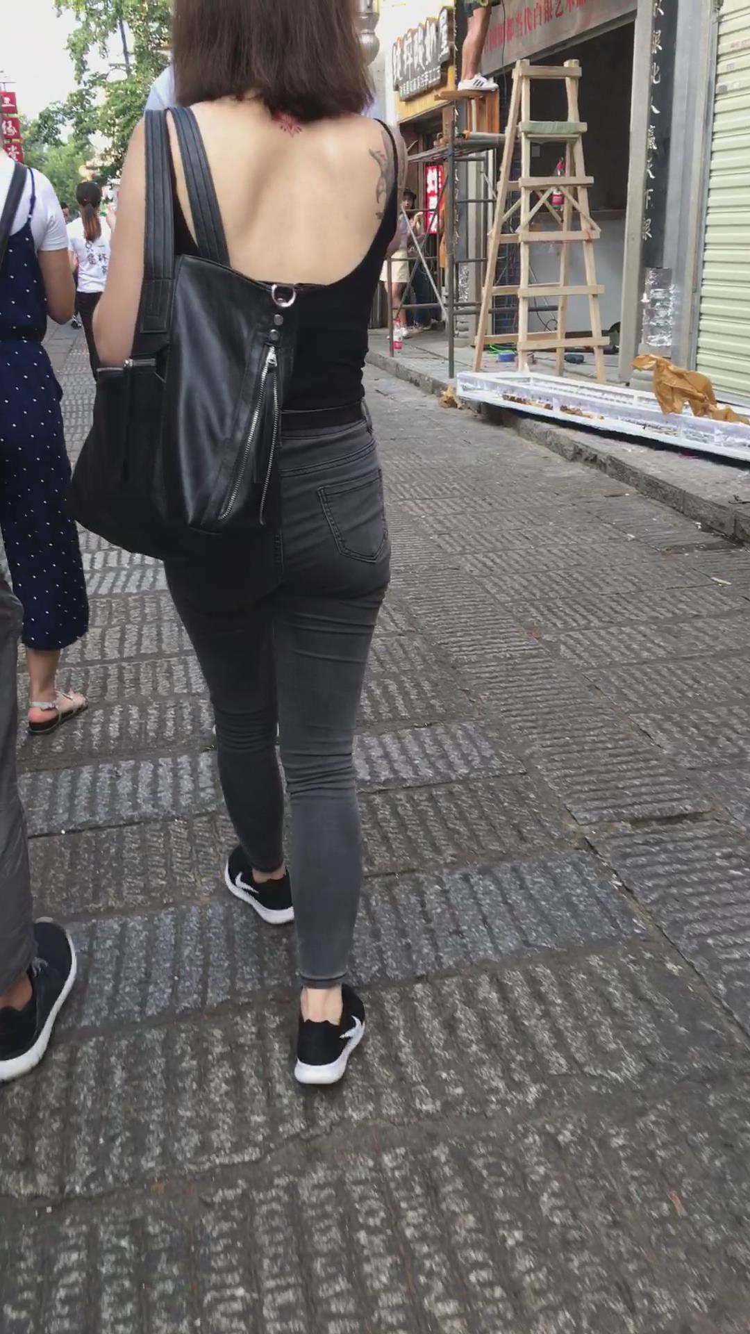 街拍性感美背紧身牛仔裤纹身美女 编号5368 |