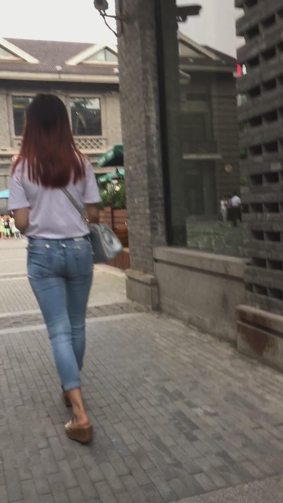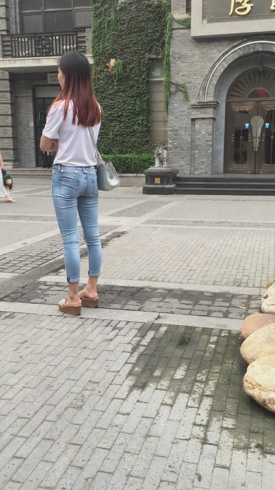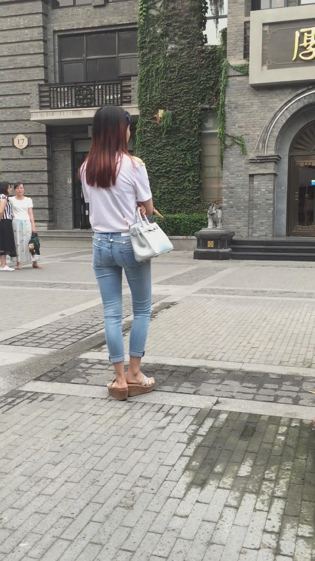 街拍超紧身蓝色牛仔裤宽臀小姐姐 编号5395 |