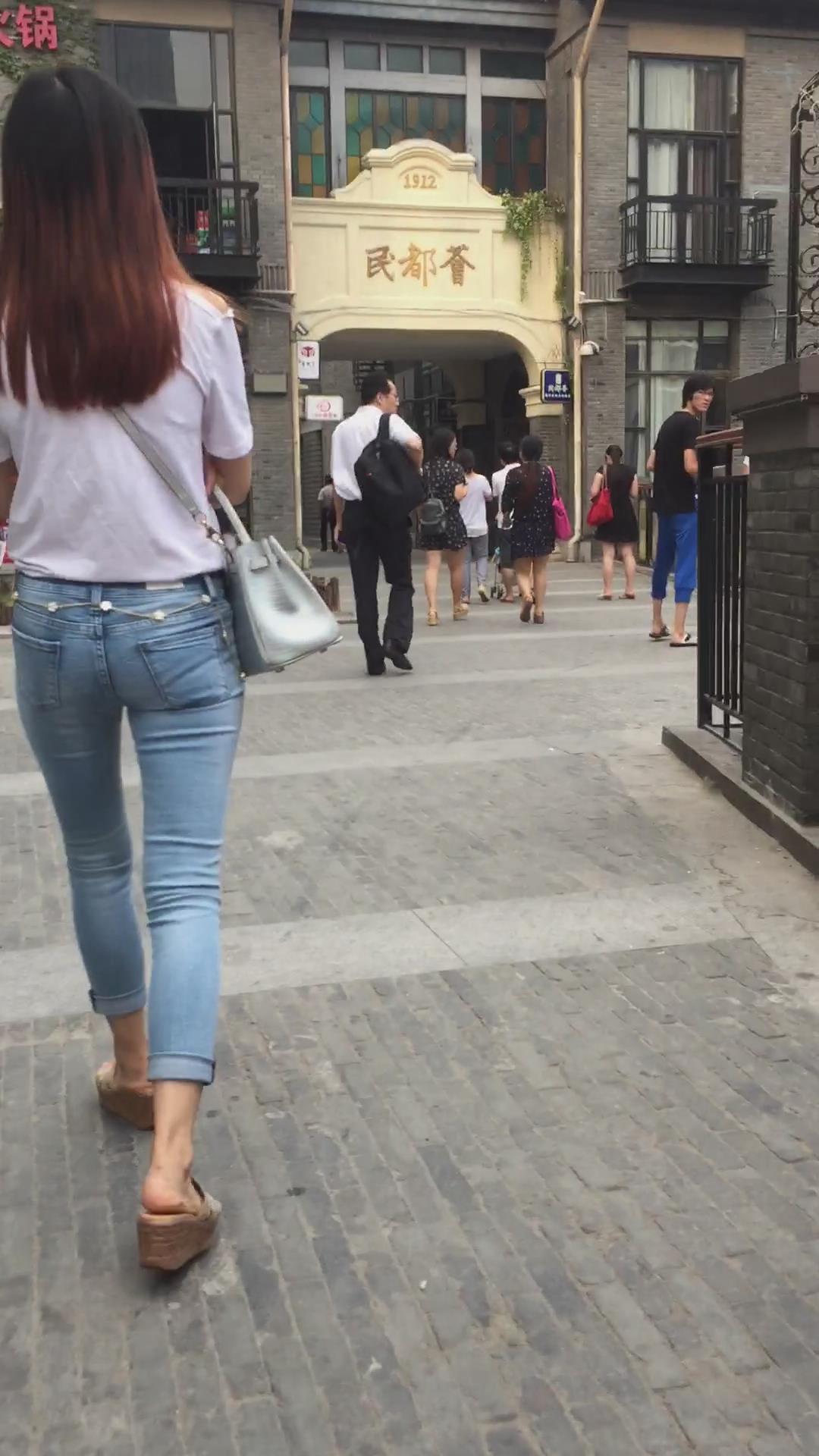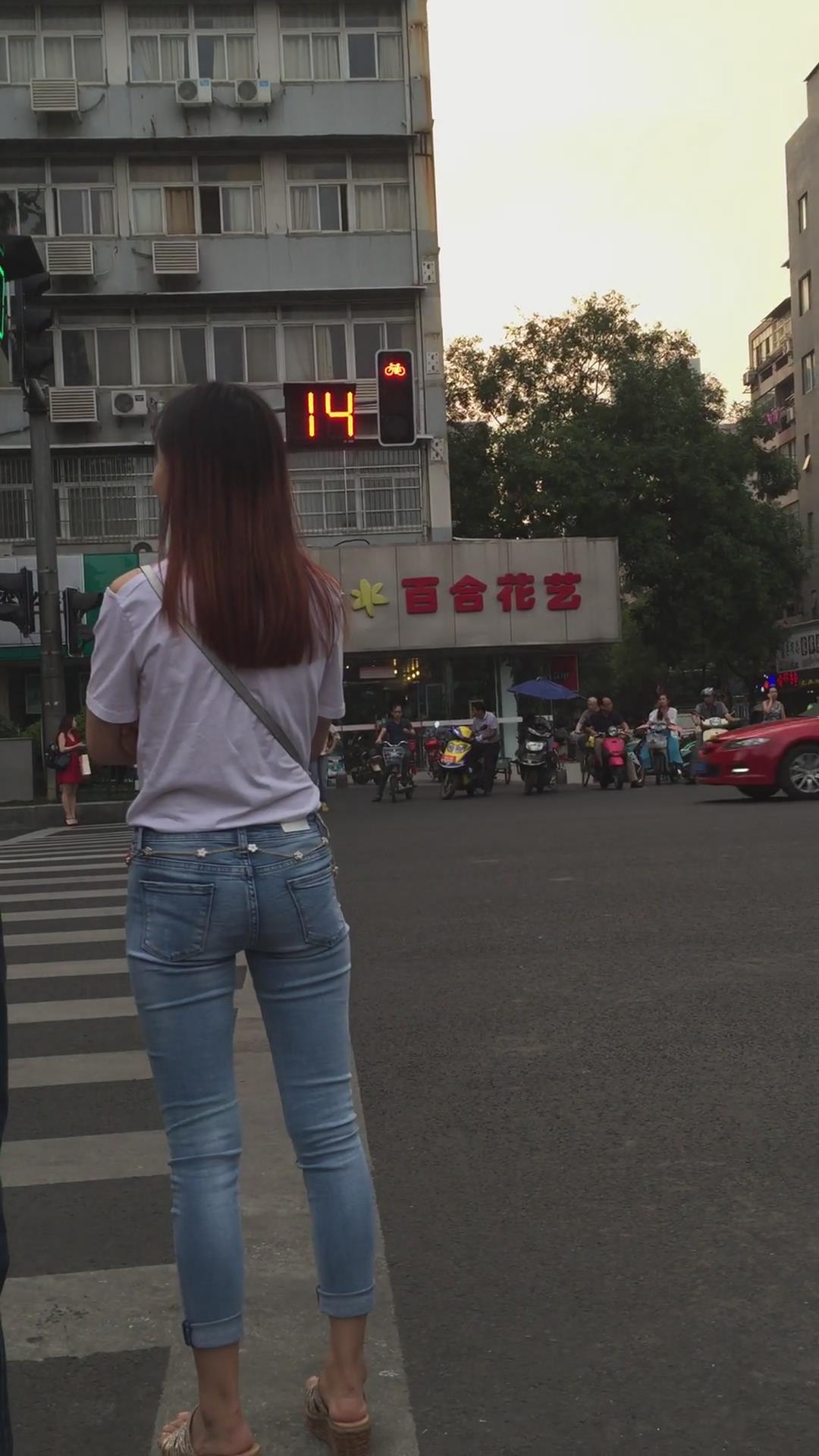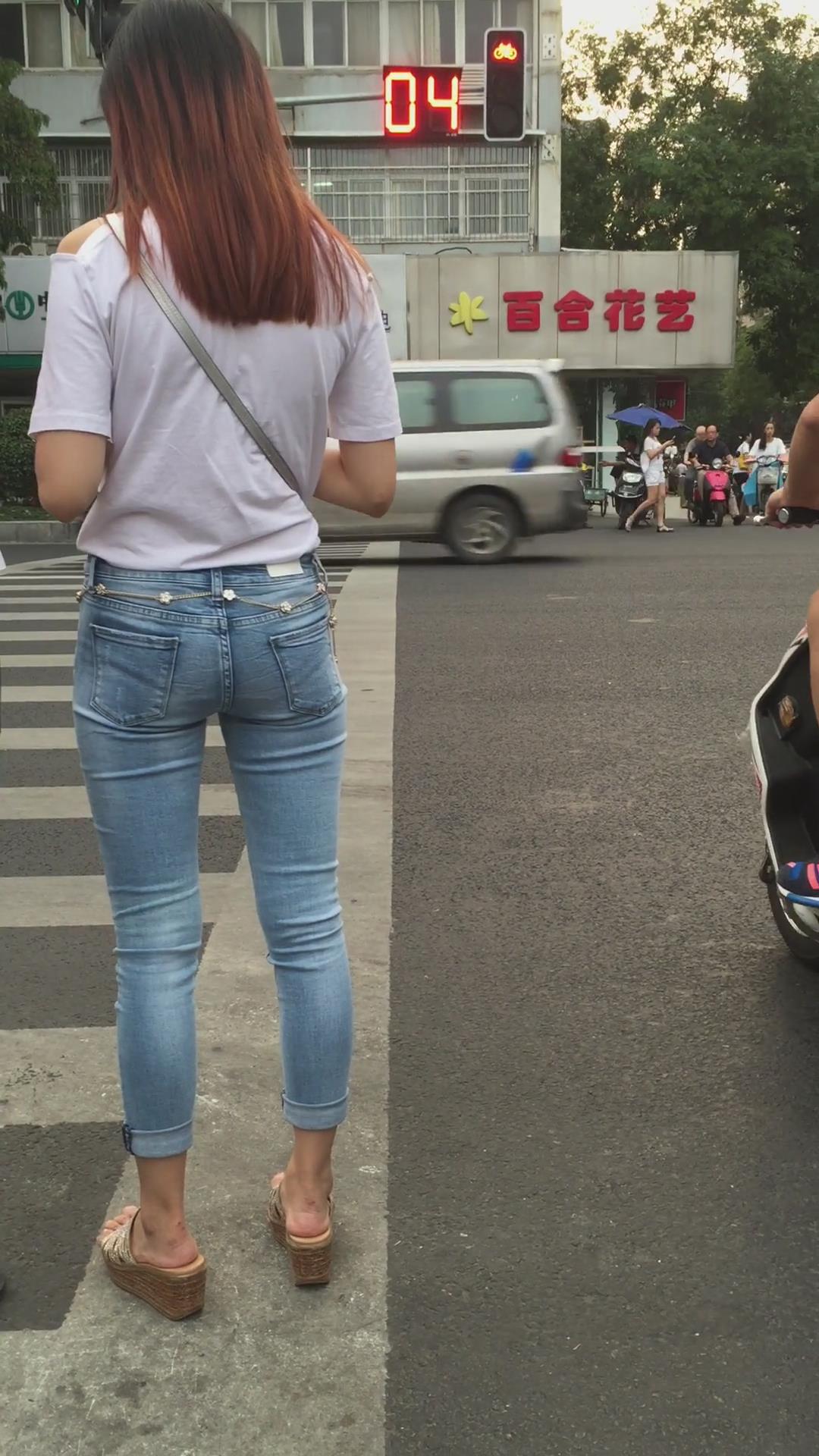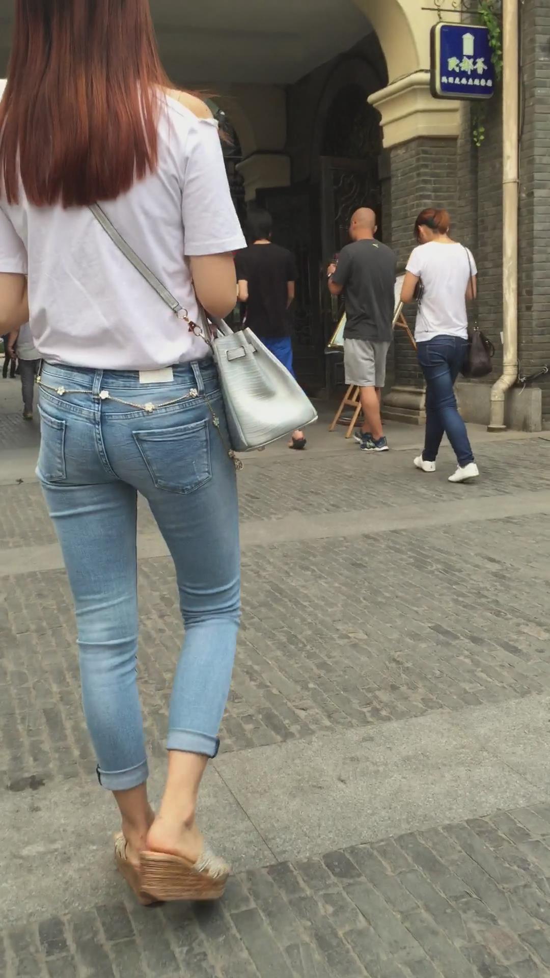 街拍超紧身蓝色牛仔裤宽臀小姐姐 编号5395 |