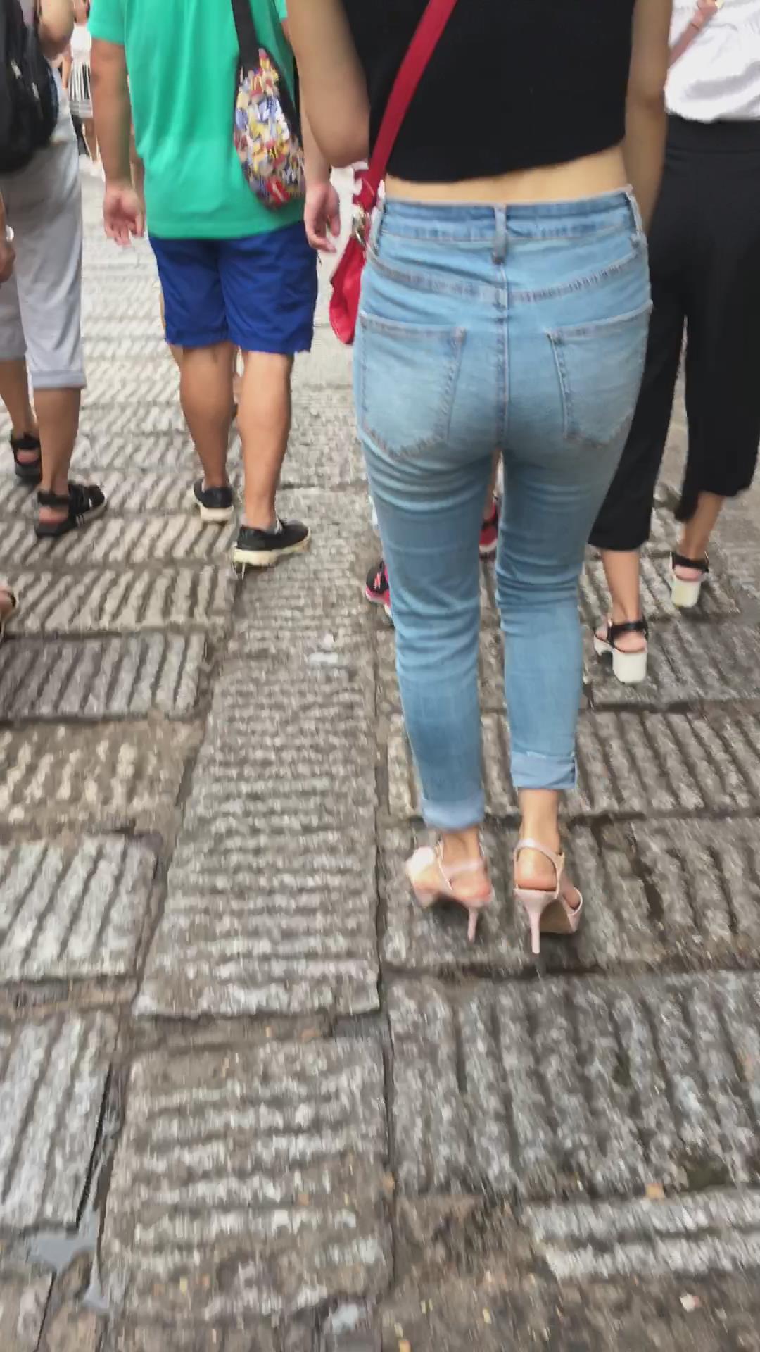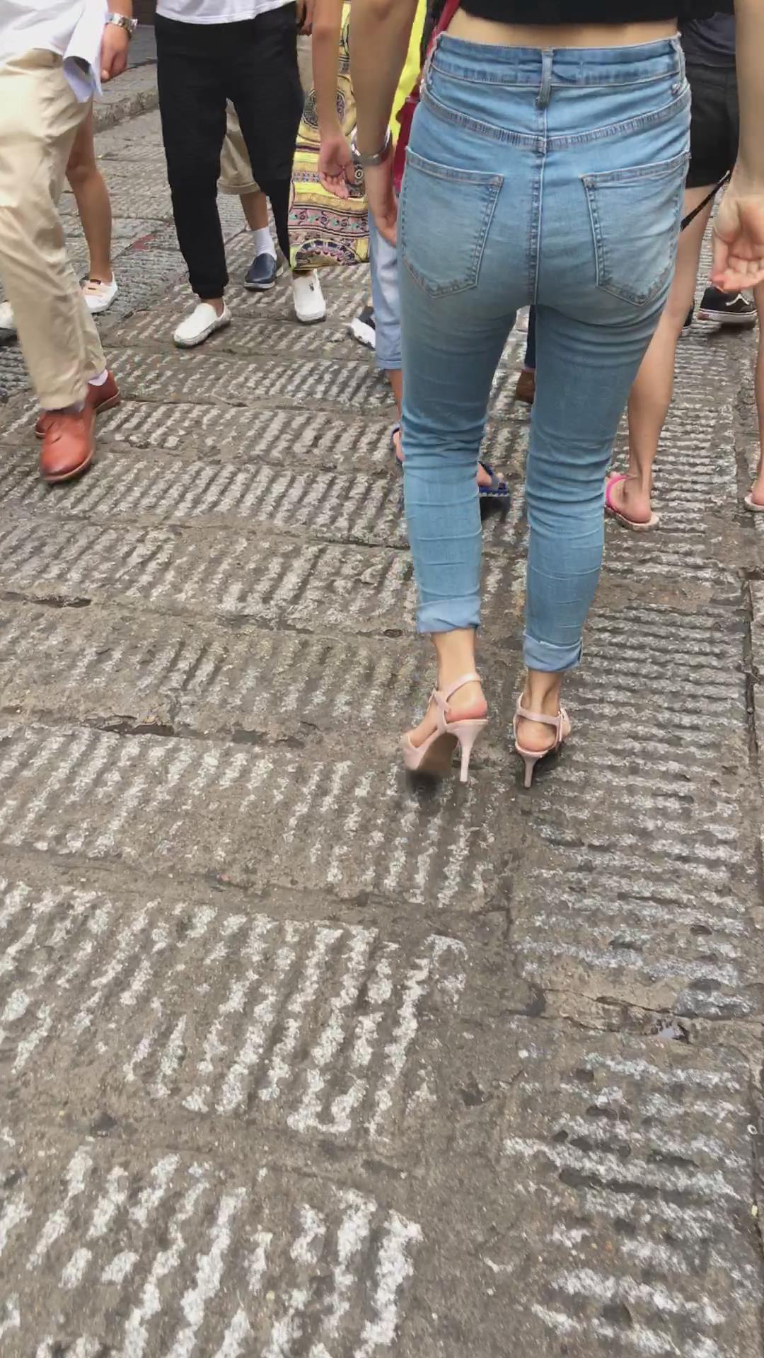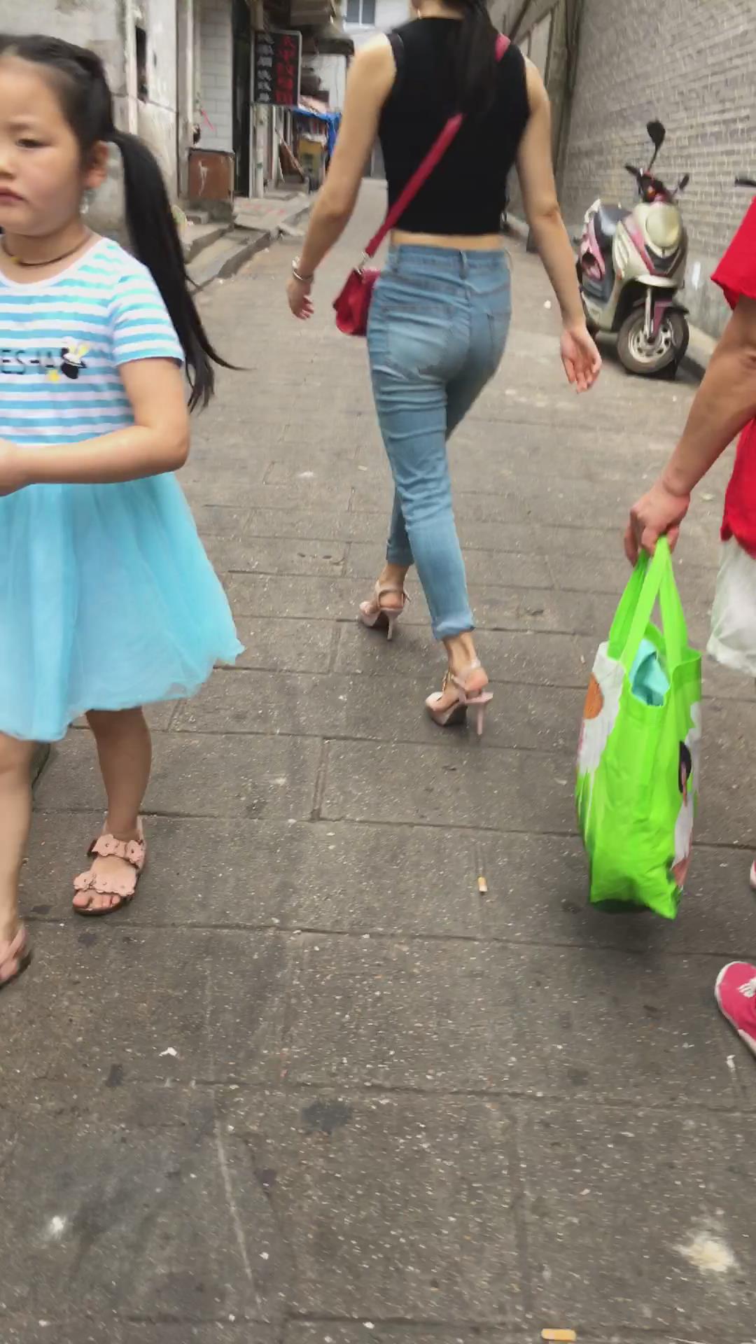 街拍高跟鞋紧身蓝牛小蛮腰美女姐姐 编号5440 |