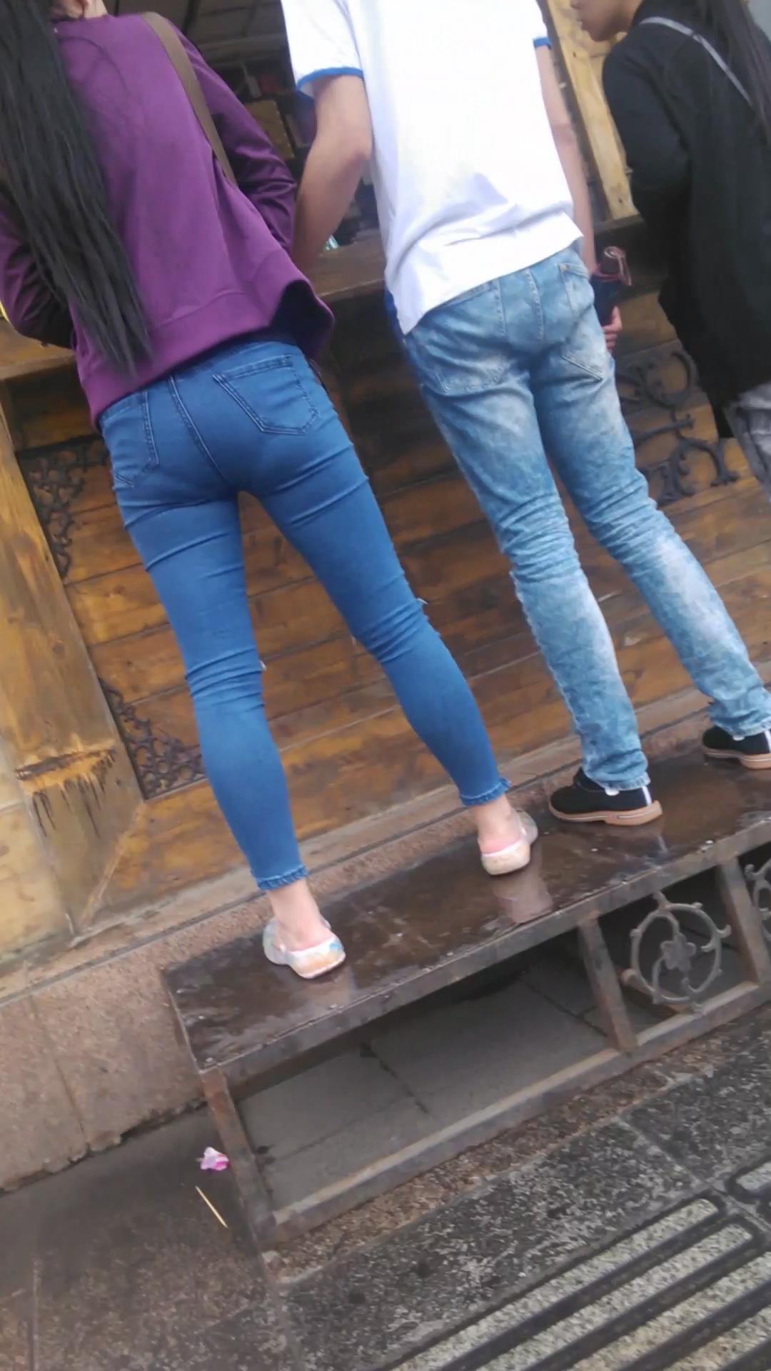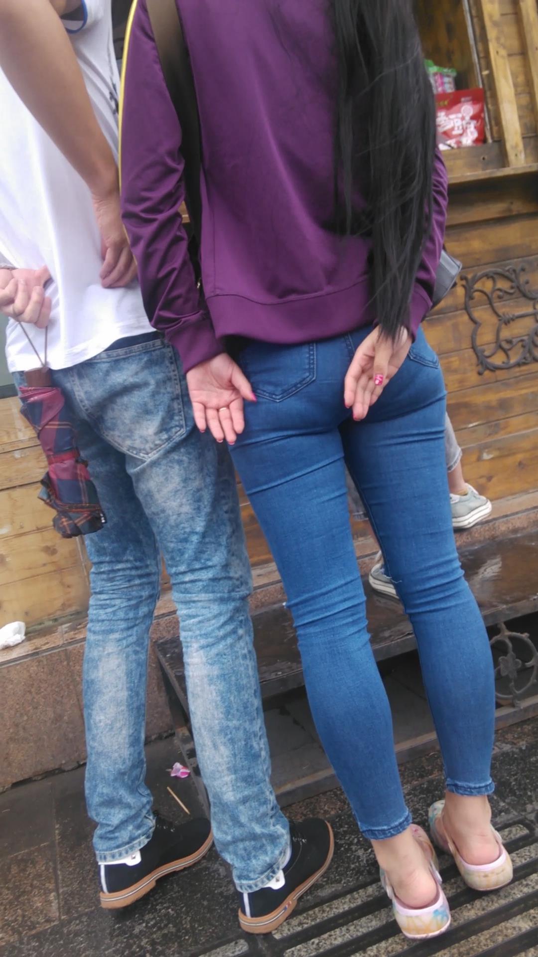 长发超紧身蓝色牛仔裤美眉,撅起美臀 编号5461 |