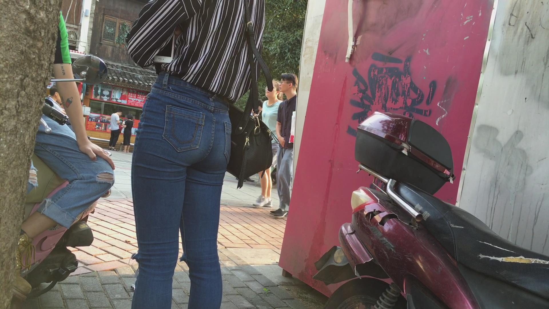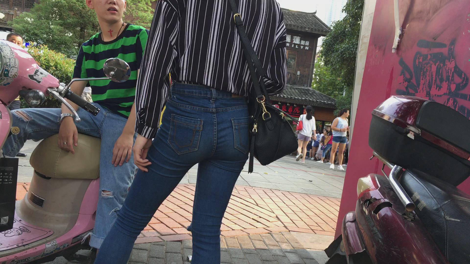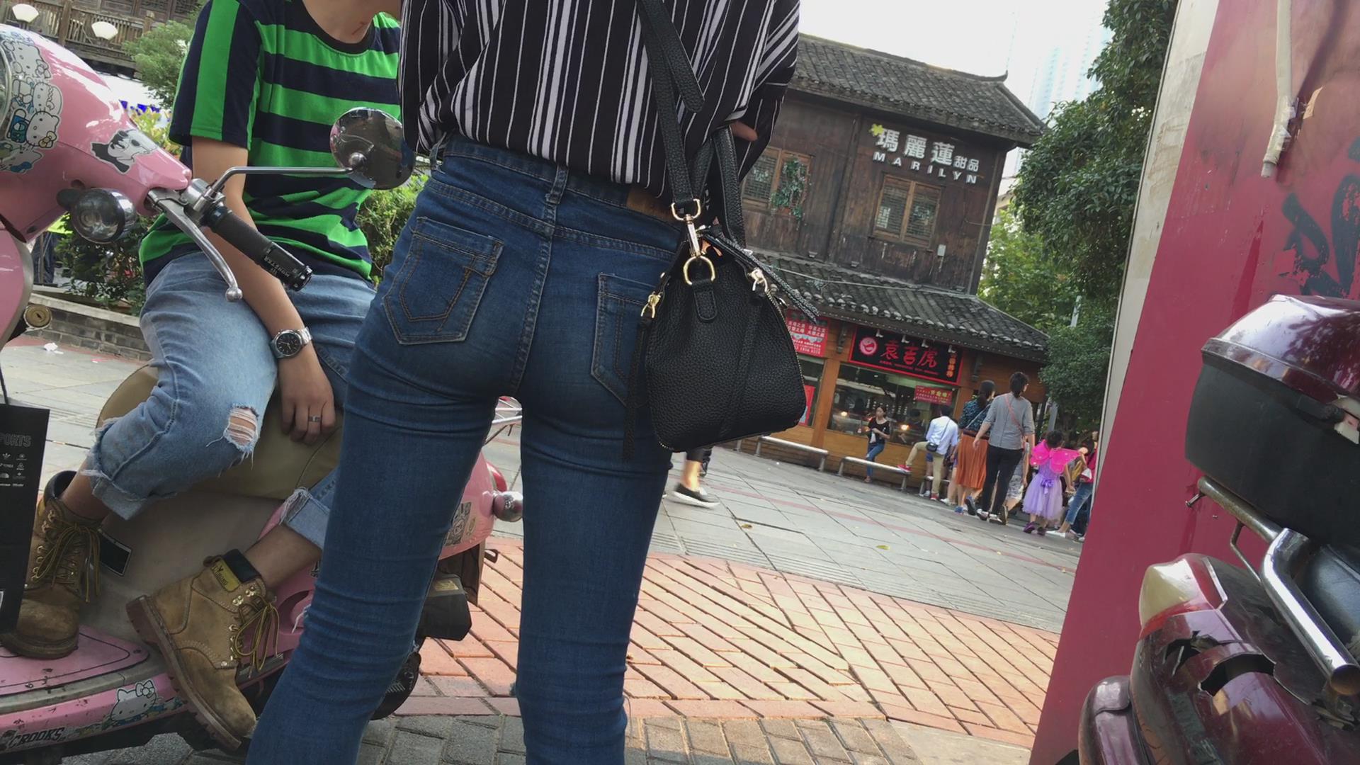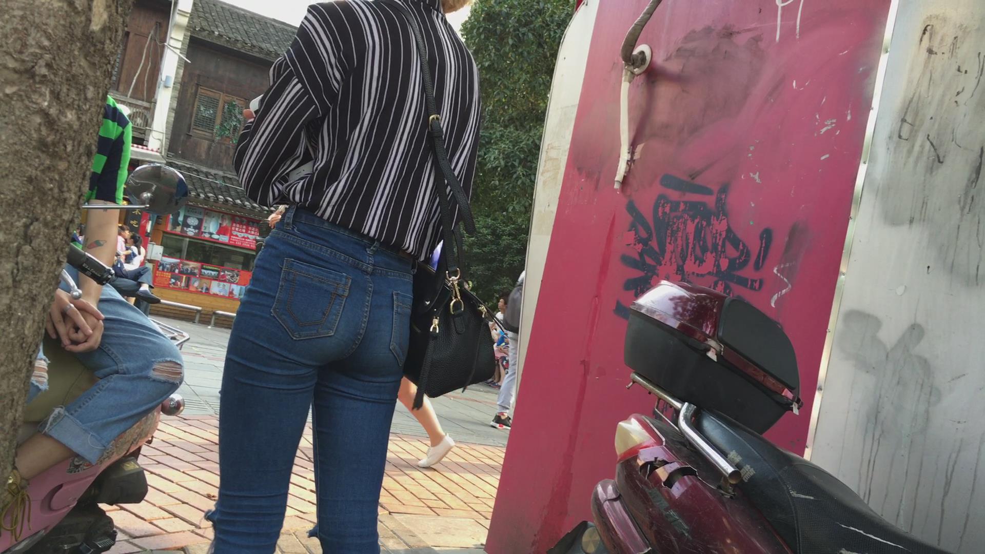 街拍饱满紧俏美臀高腰紧身蓝牛美女 编号5470 |