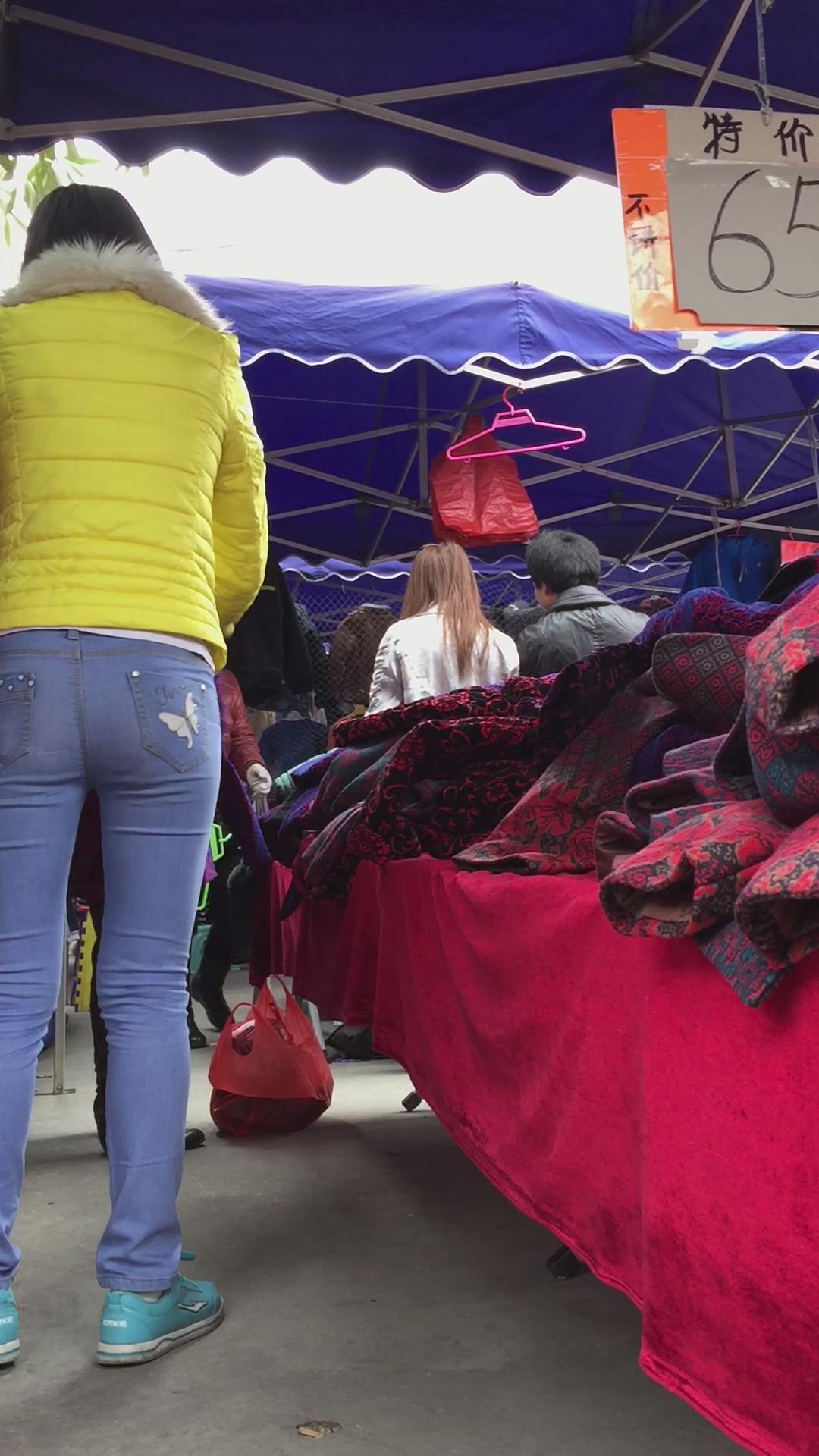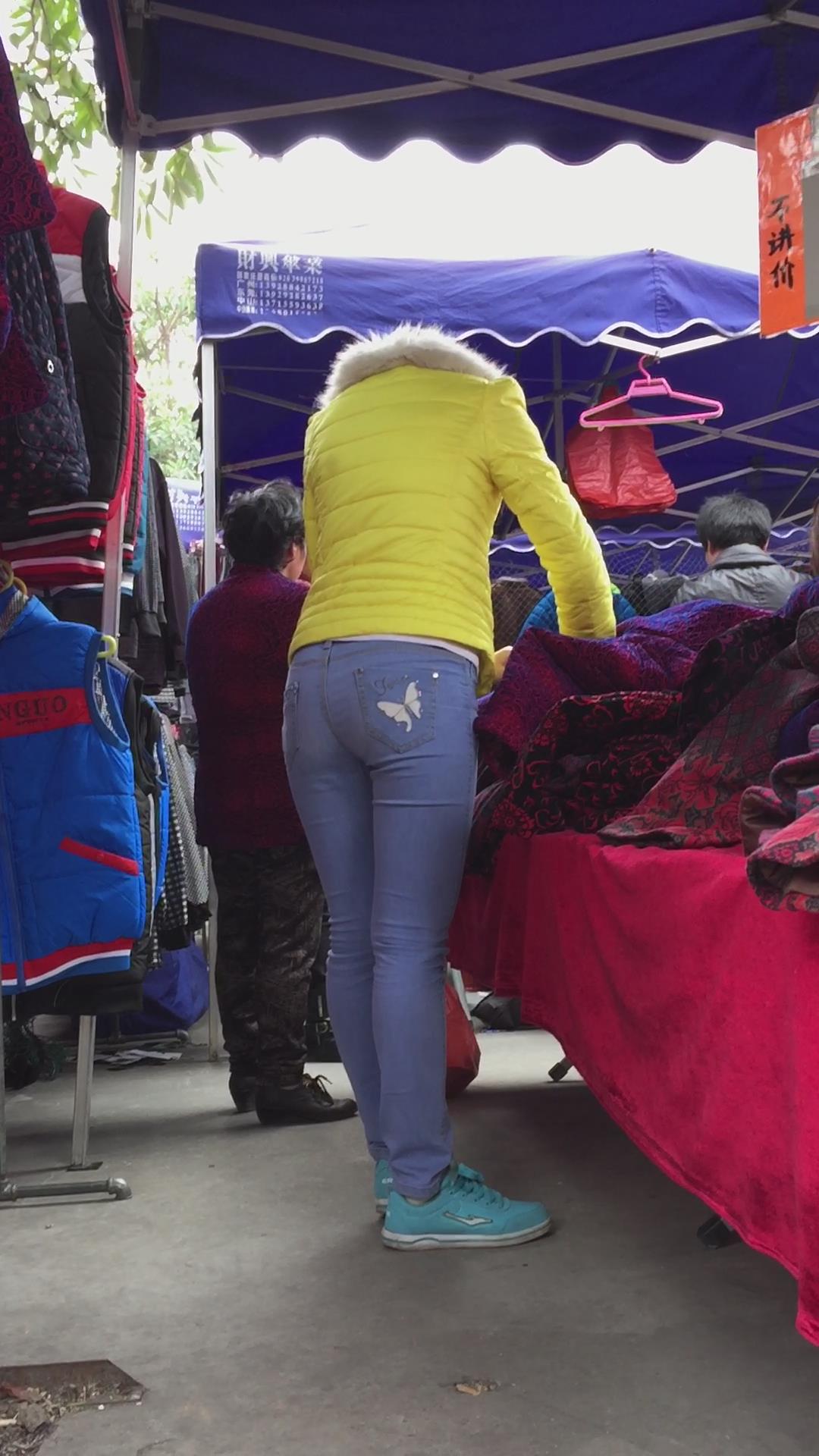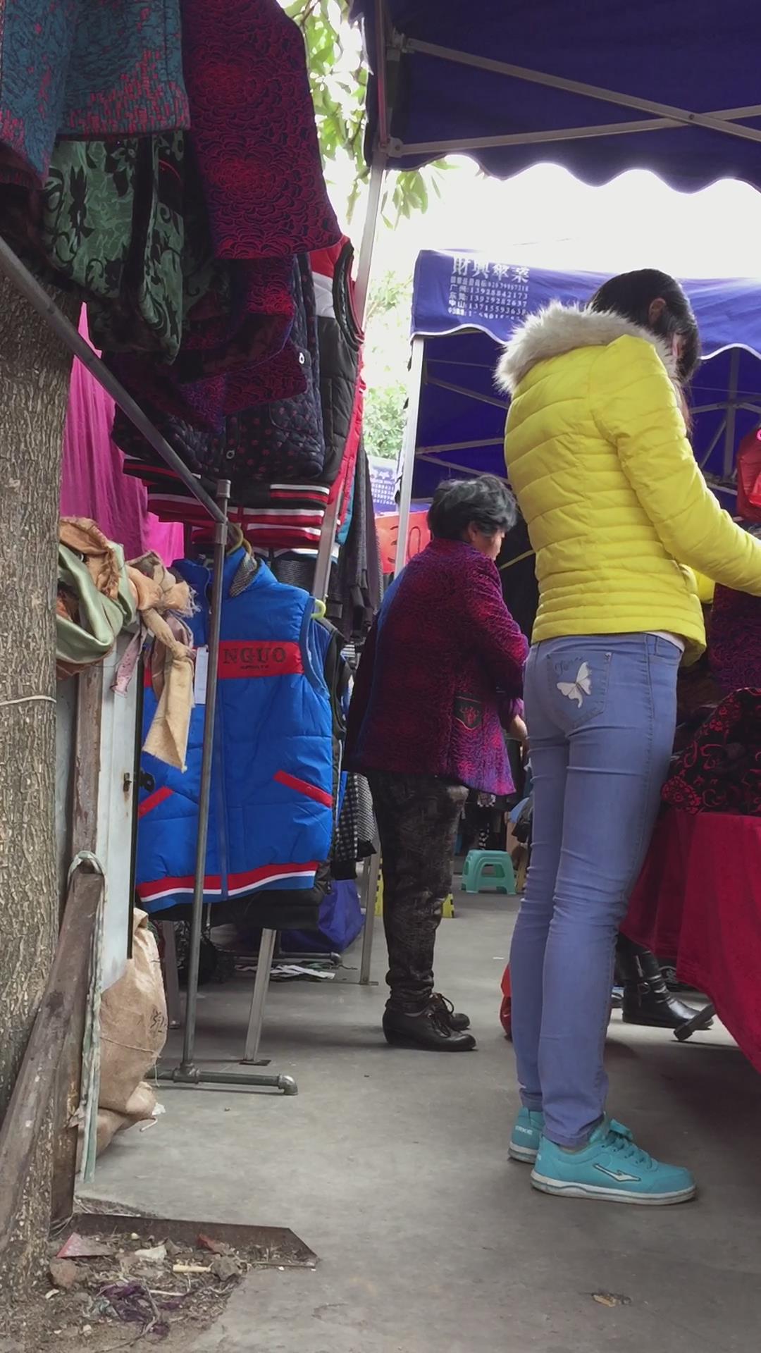 蓝色紧身牛仔小肥妹是个孝顺的孩子,给家里老人买衣服 编号5483 |