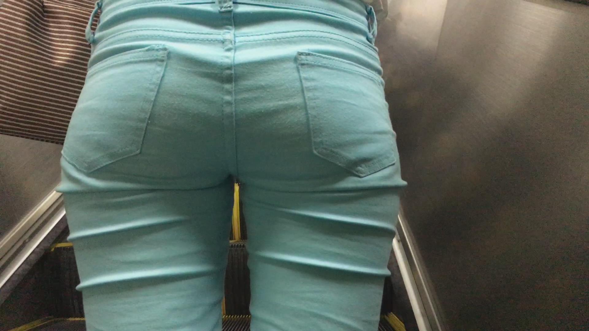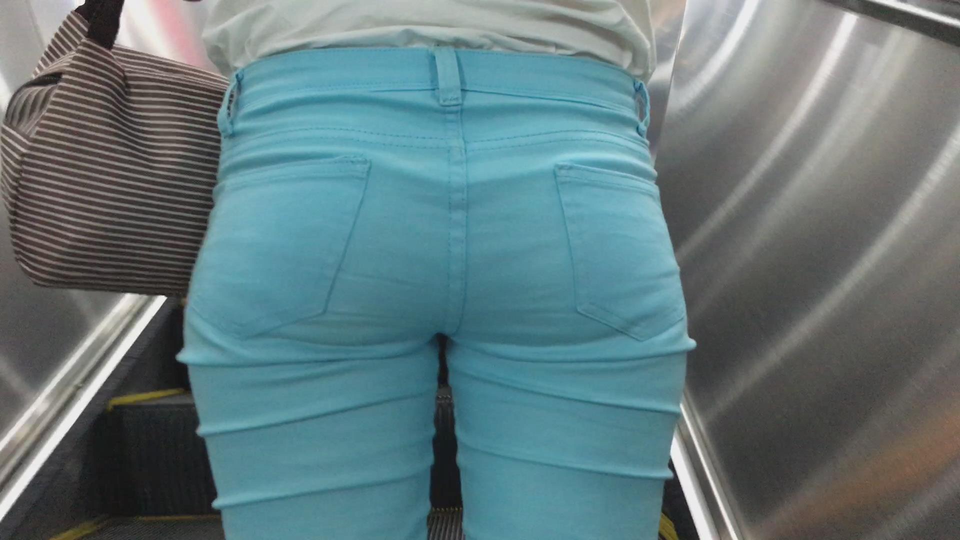 近距离跟拍刚下地铁的宽臀蓝色紧身裤美女 编号5517 |