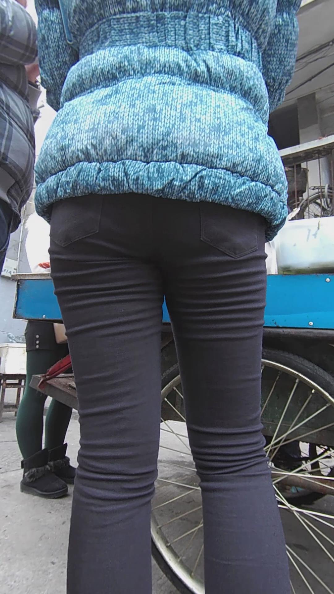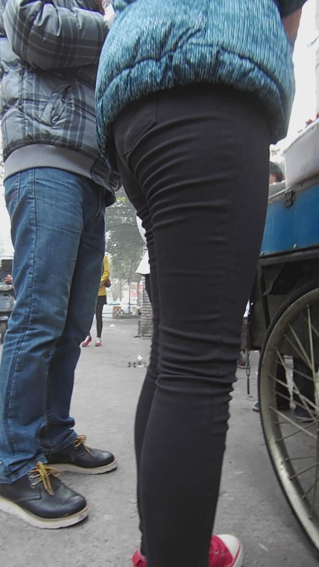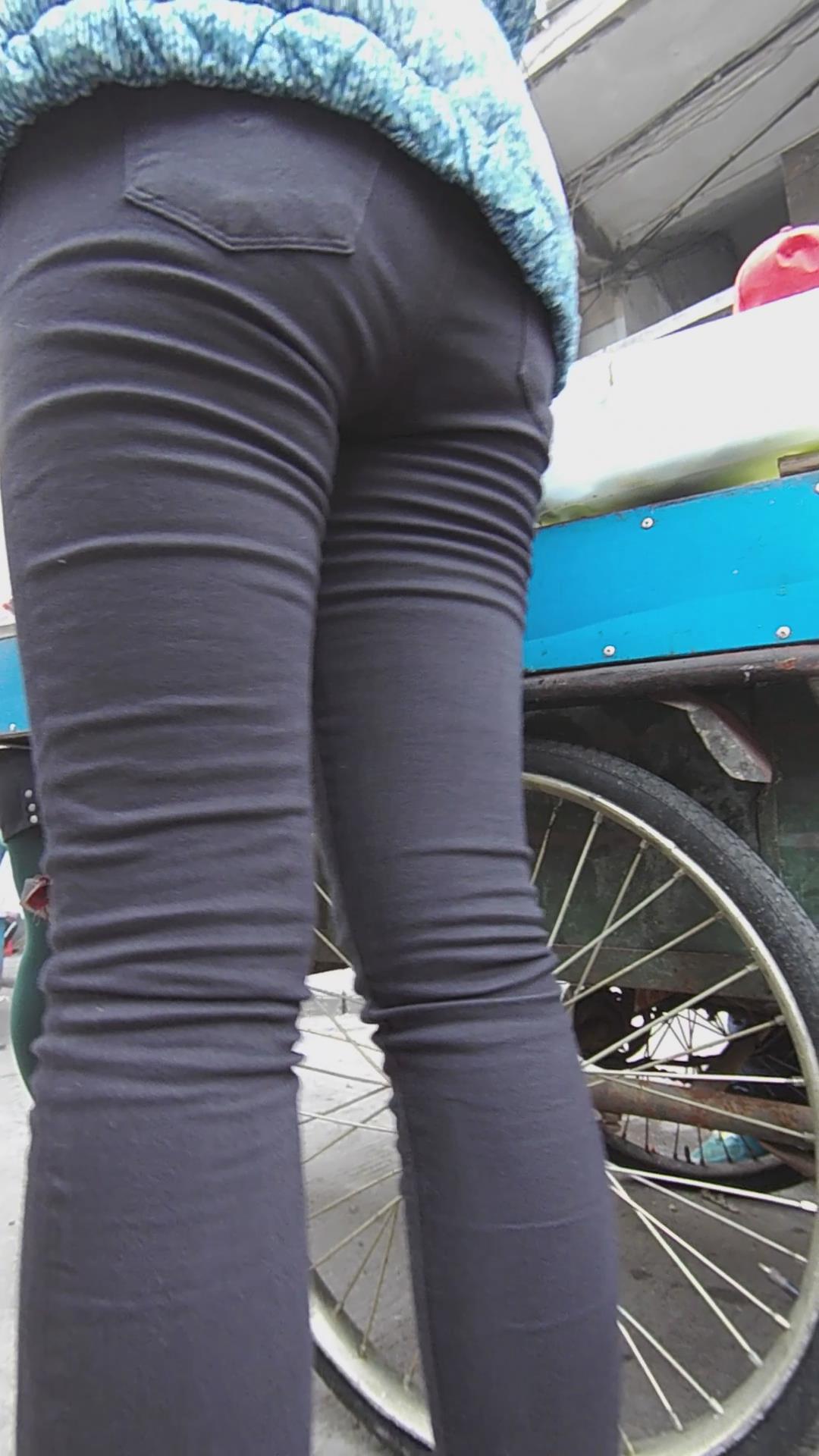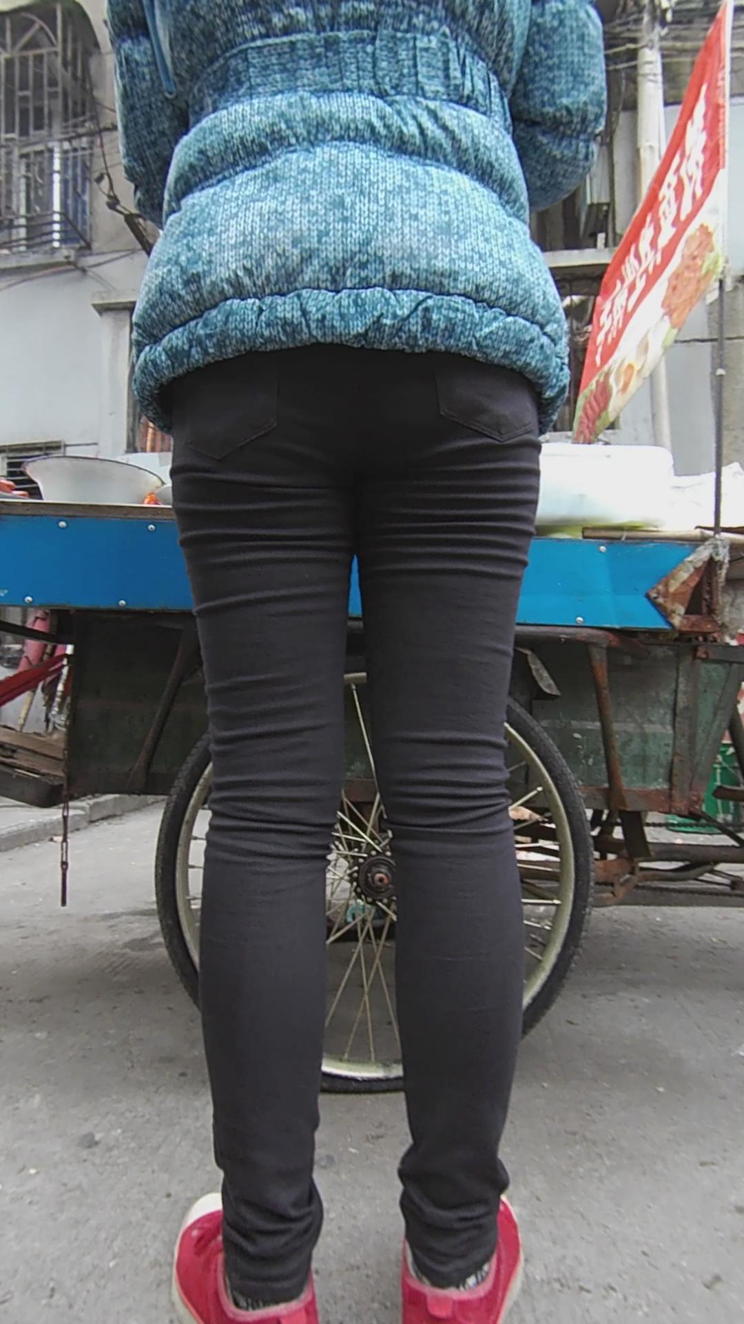 黑色紧身裤美腿妹子买小吃 编号5532 |