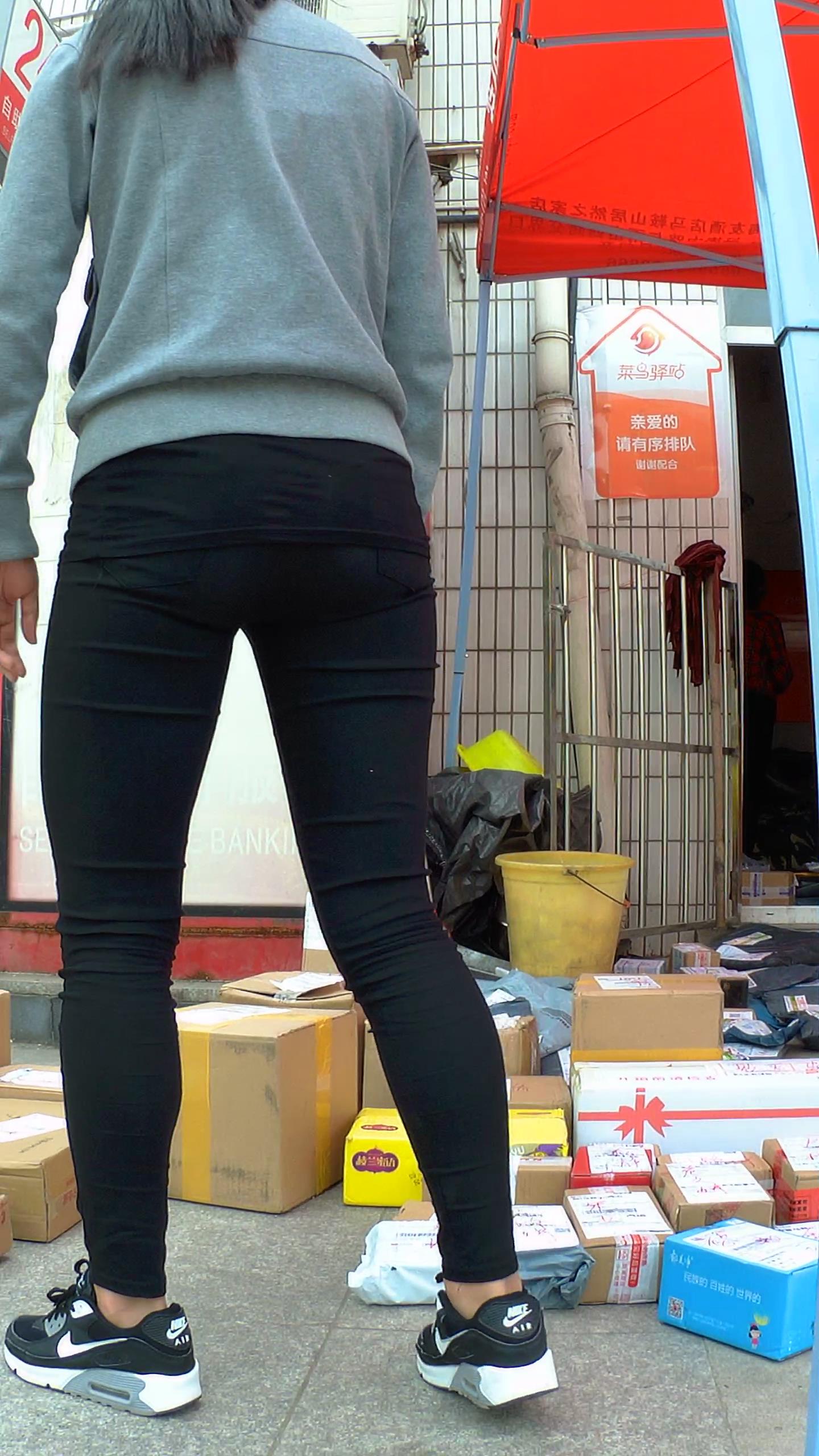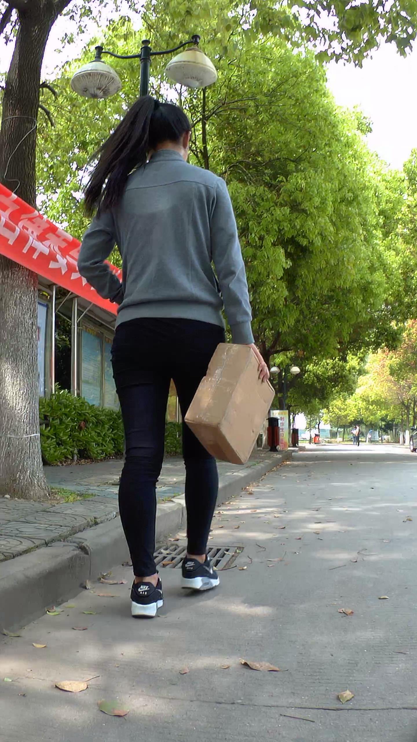 跟拍拿快递的黑色紧身裤大学美眉 编号5541 |