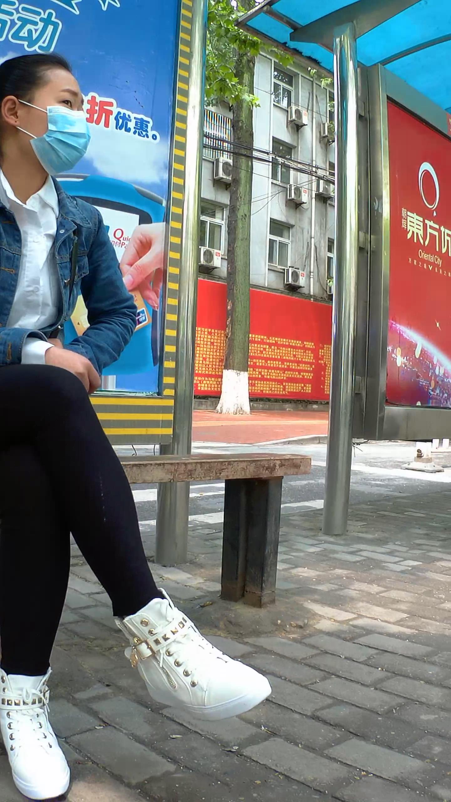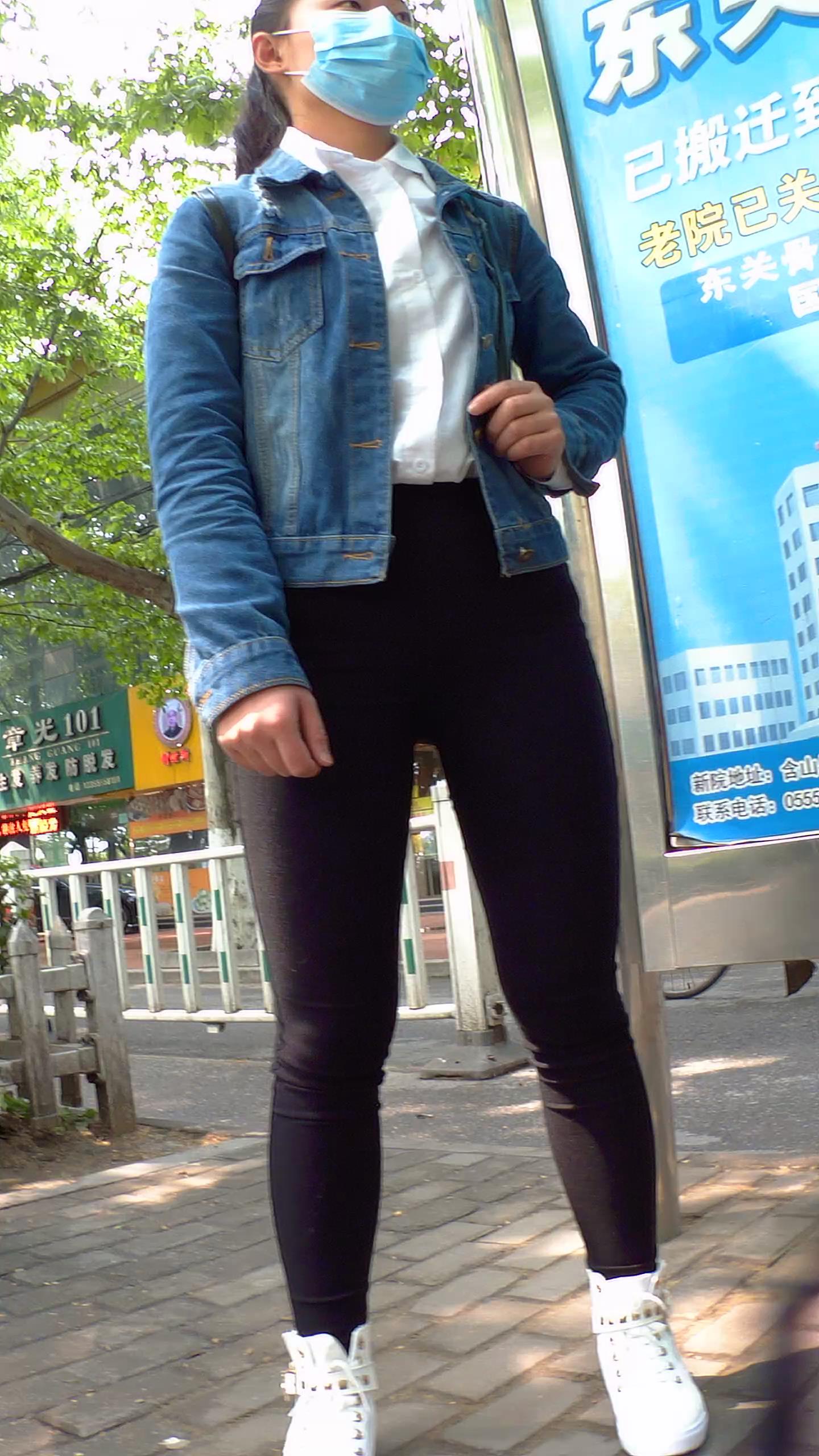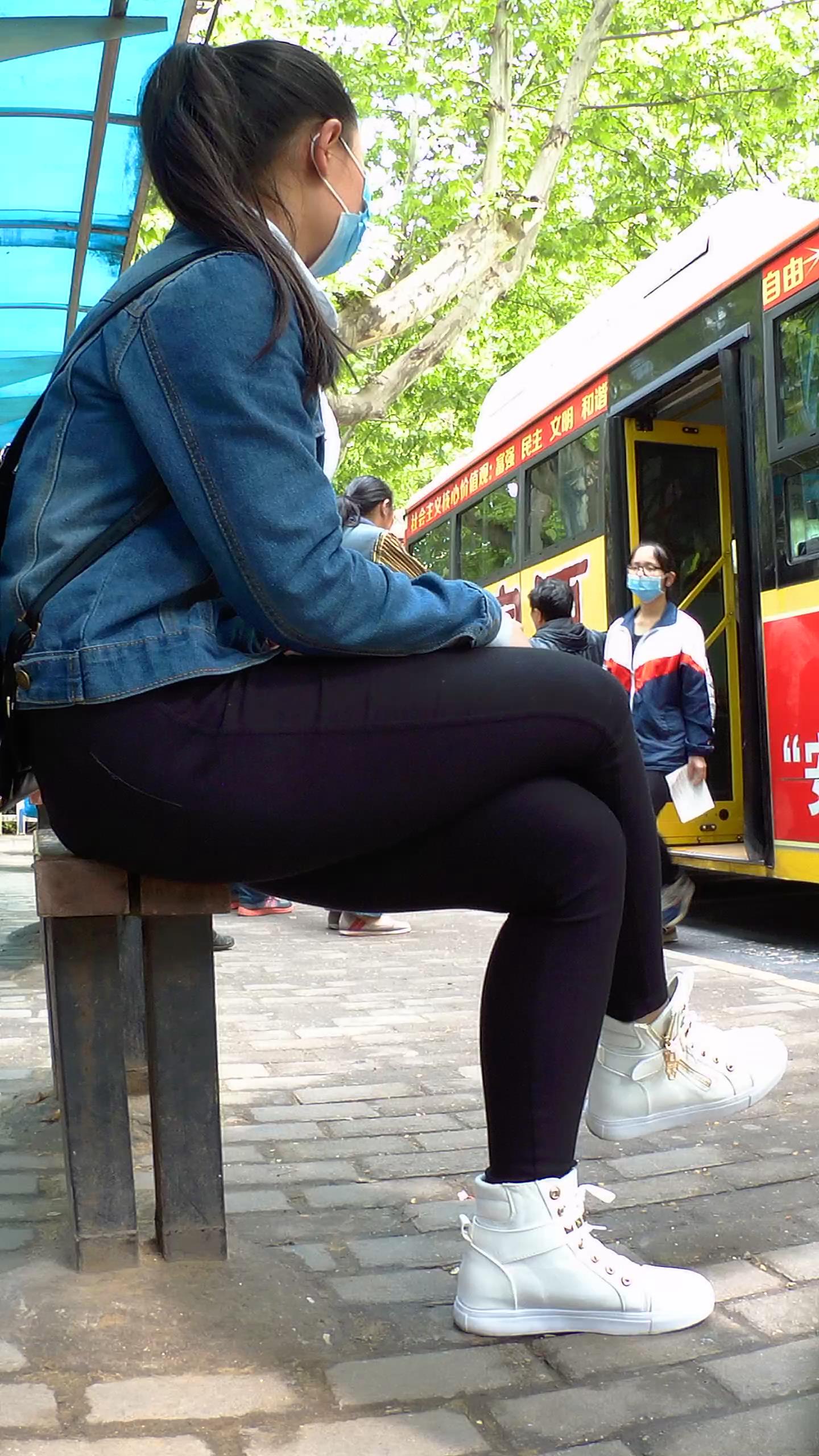 公交站拍摄黑色紧身裤宽臀学生妹 编号5551 |