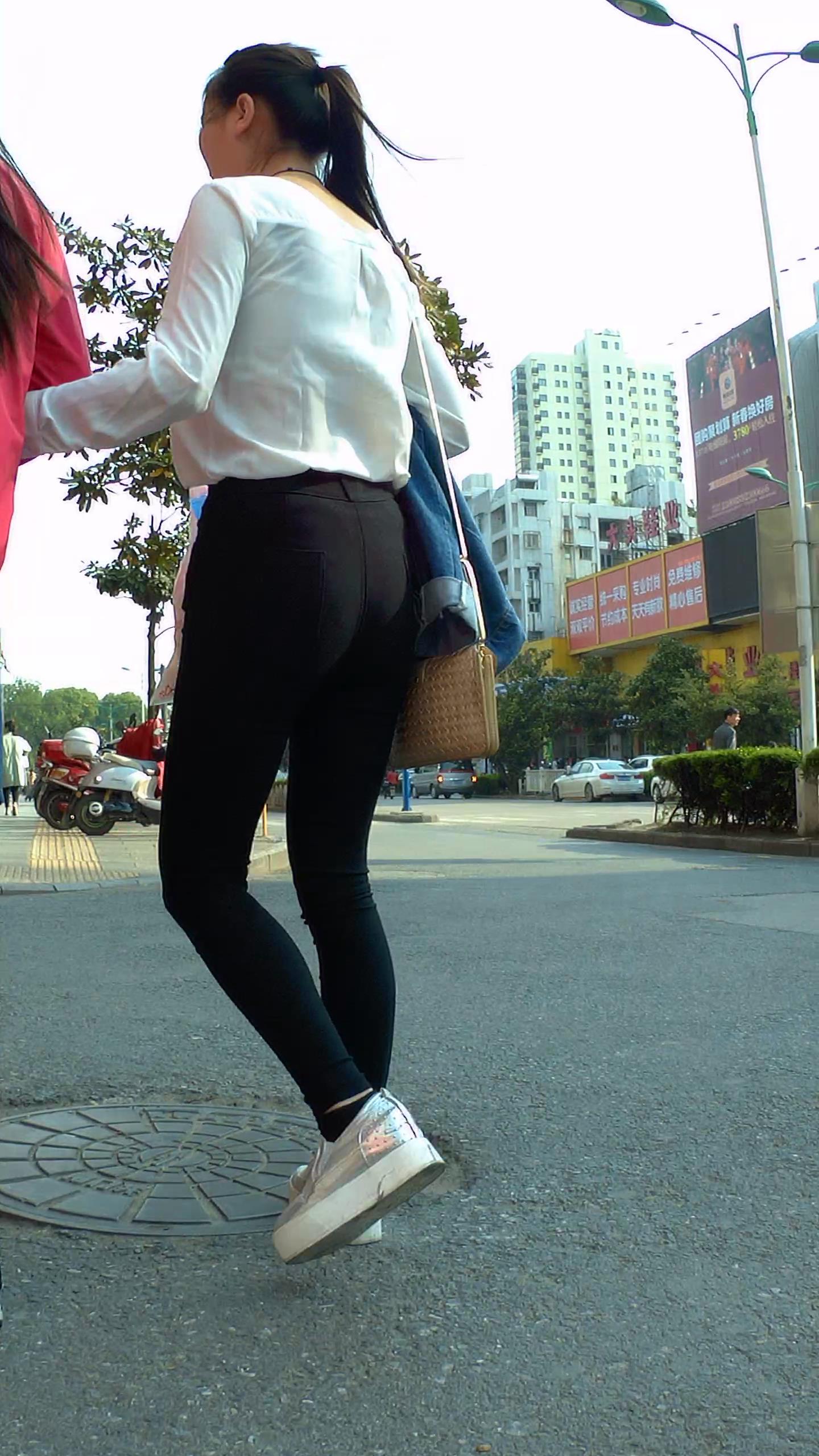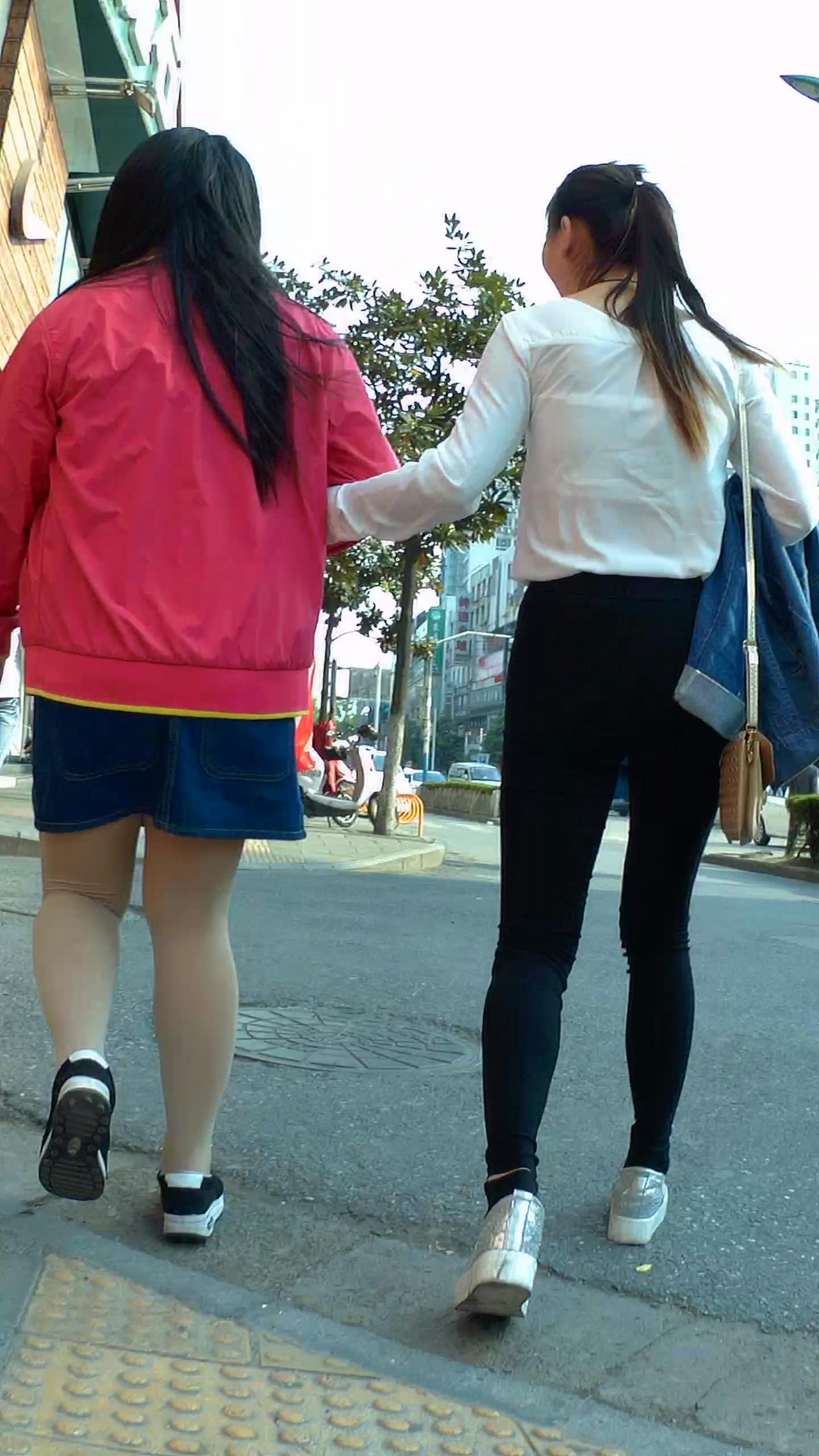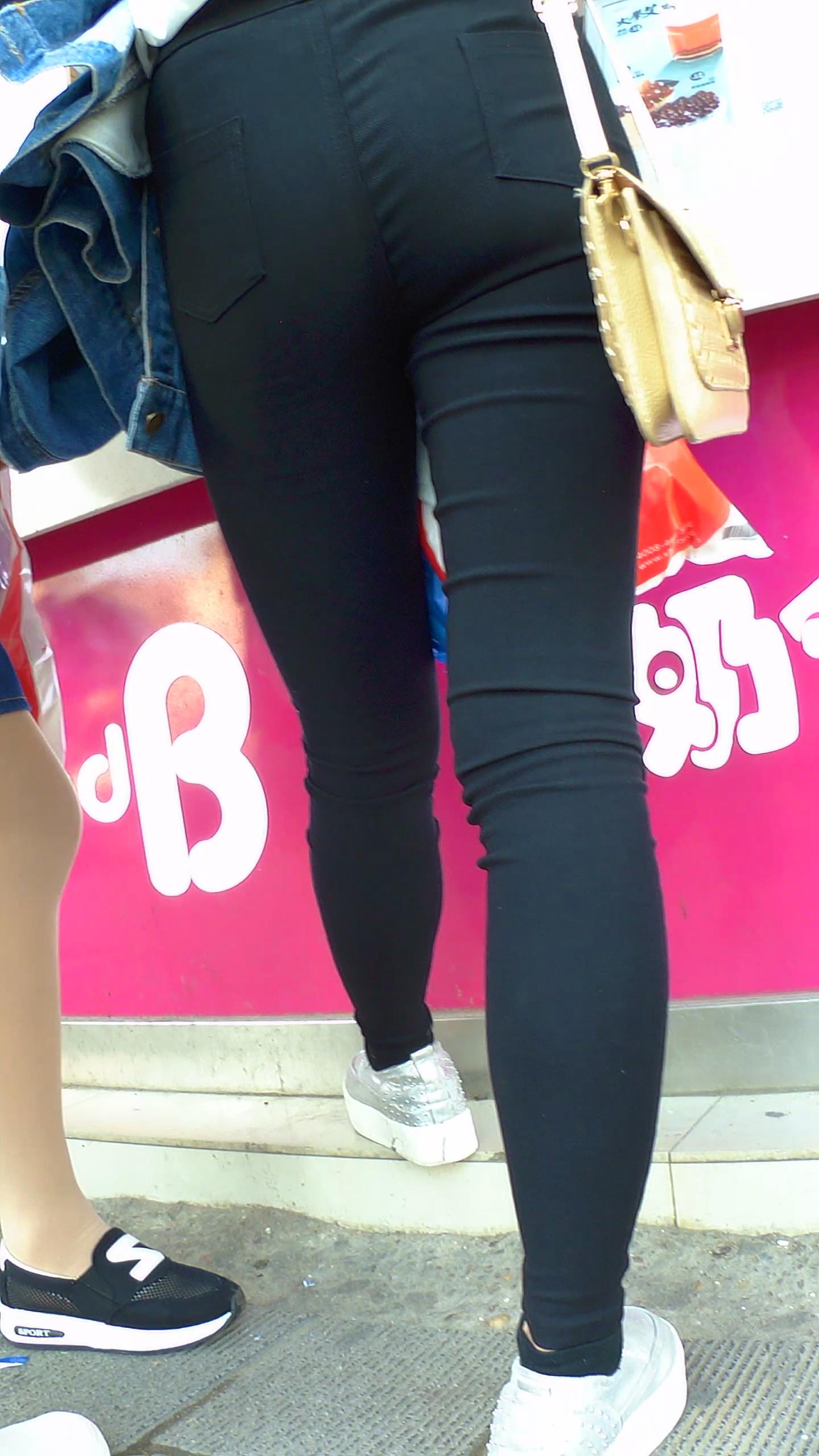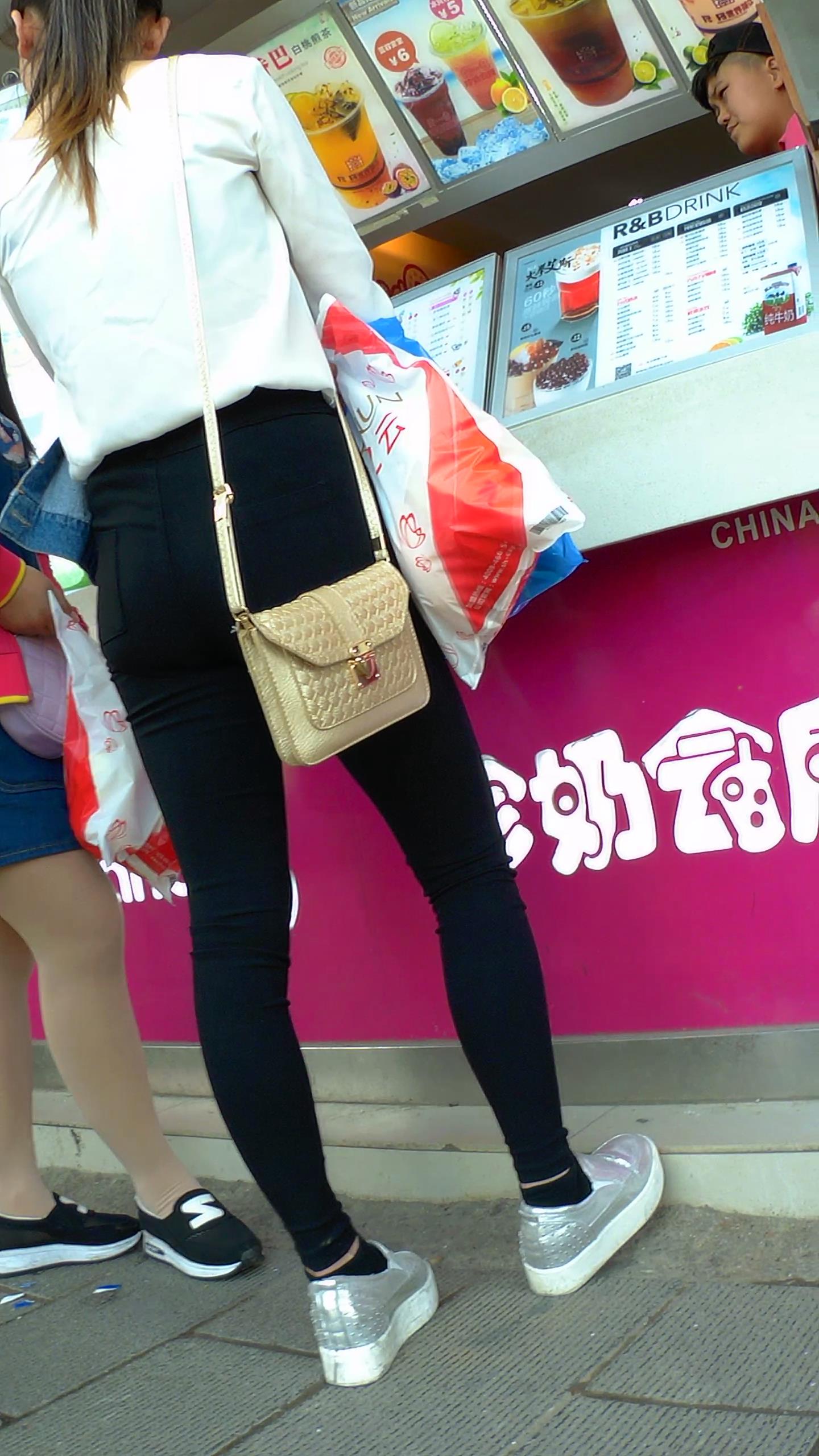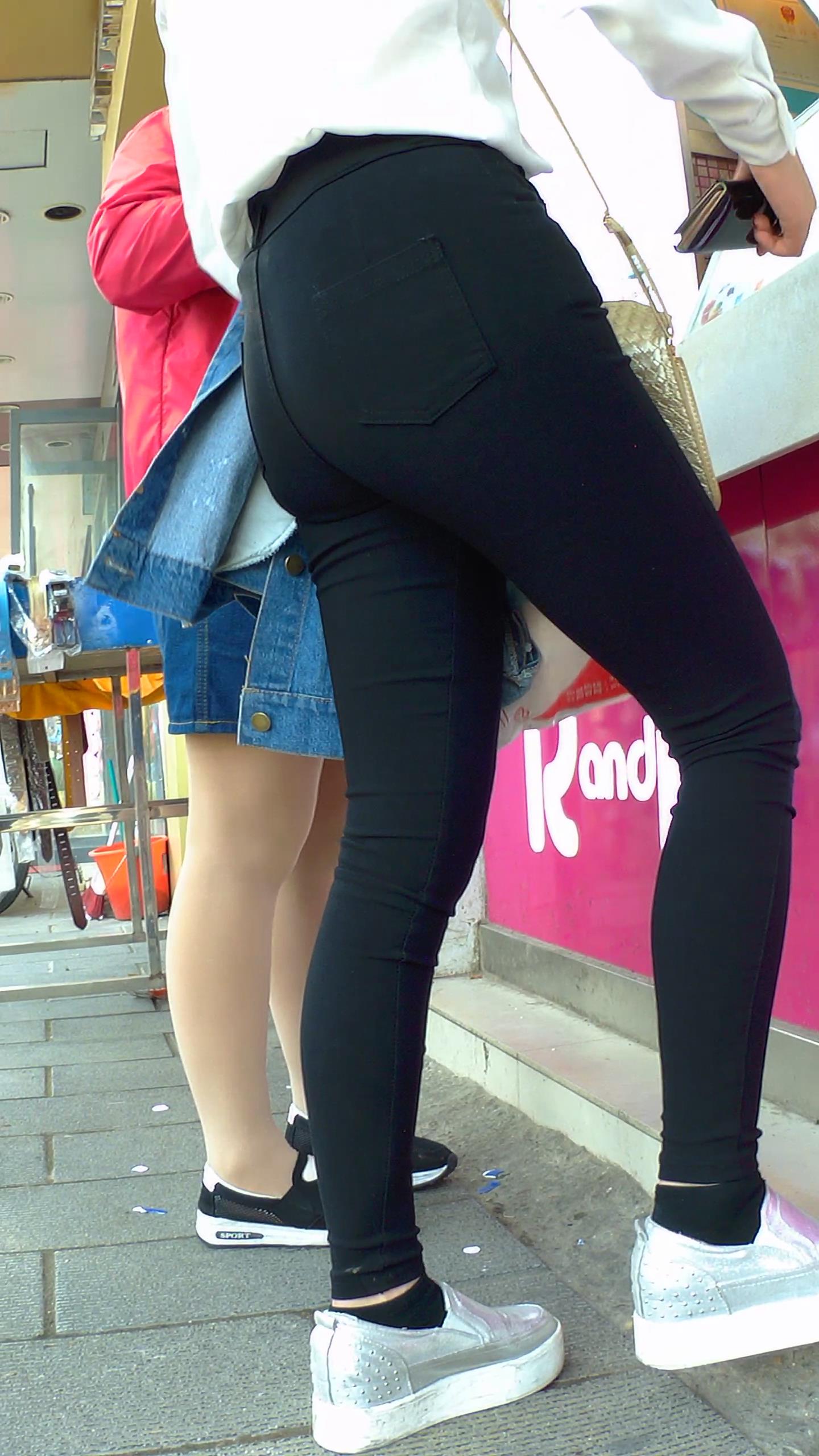高腰紧身黑裤苹果臀奶茶小妹,和短裙闺蜜逛街 编号5660 |