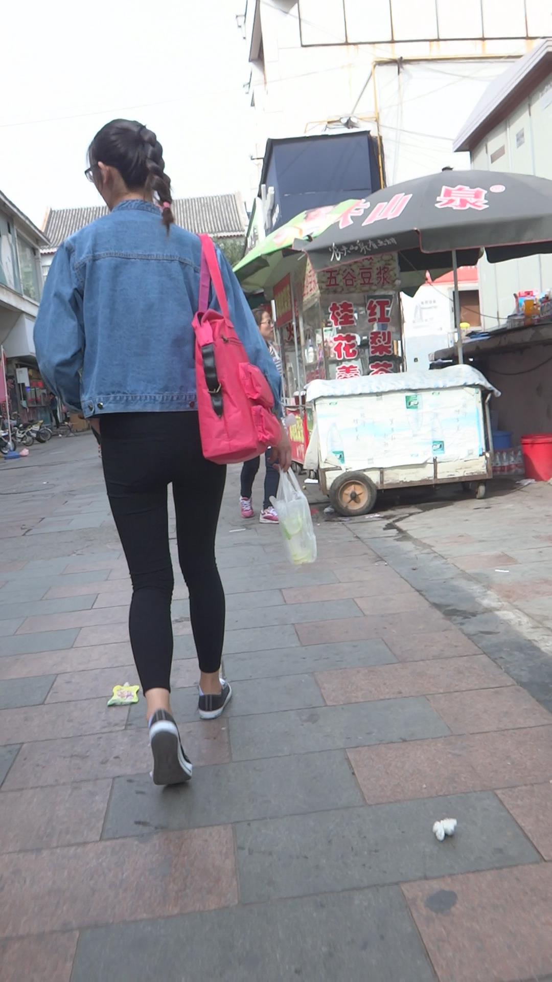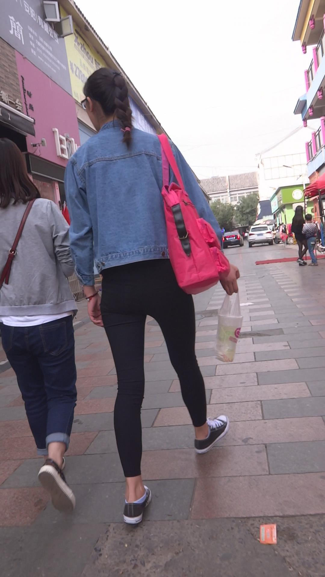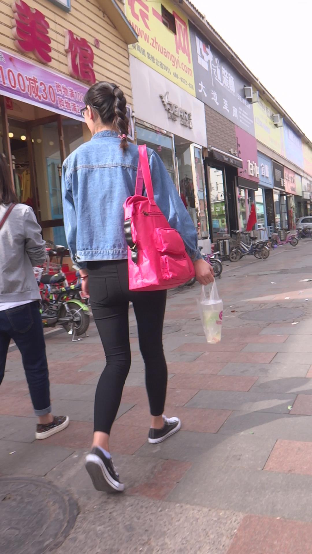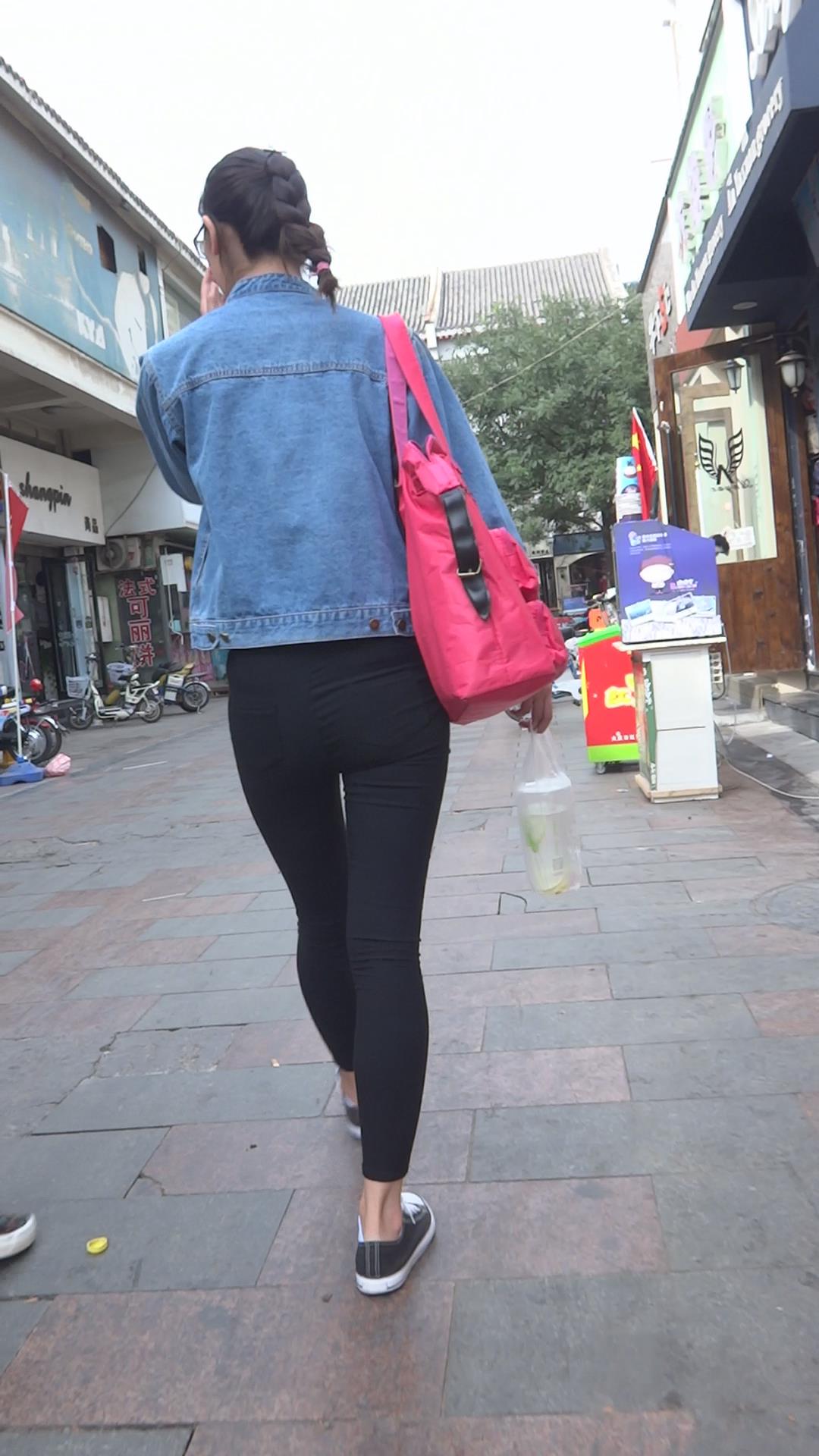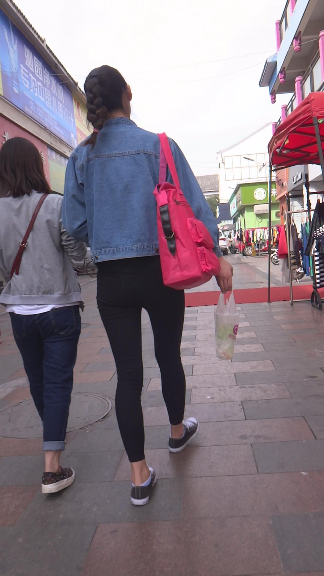 牛仔小外套紧身黑裤女孩跟闺蜜压马路 编号5701 |