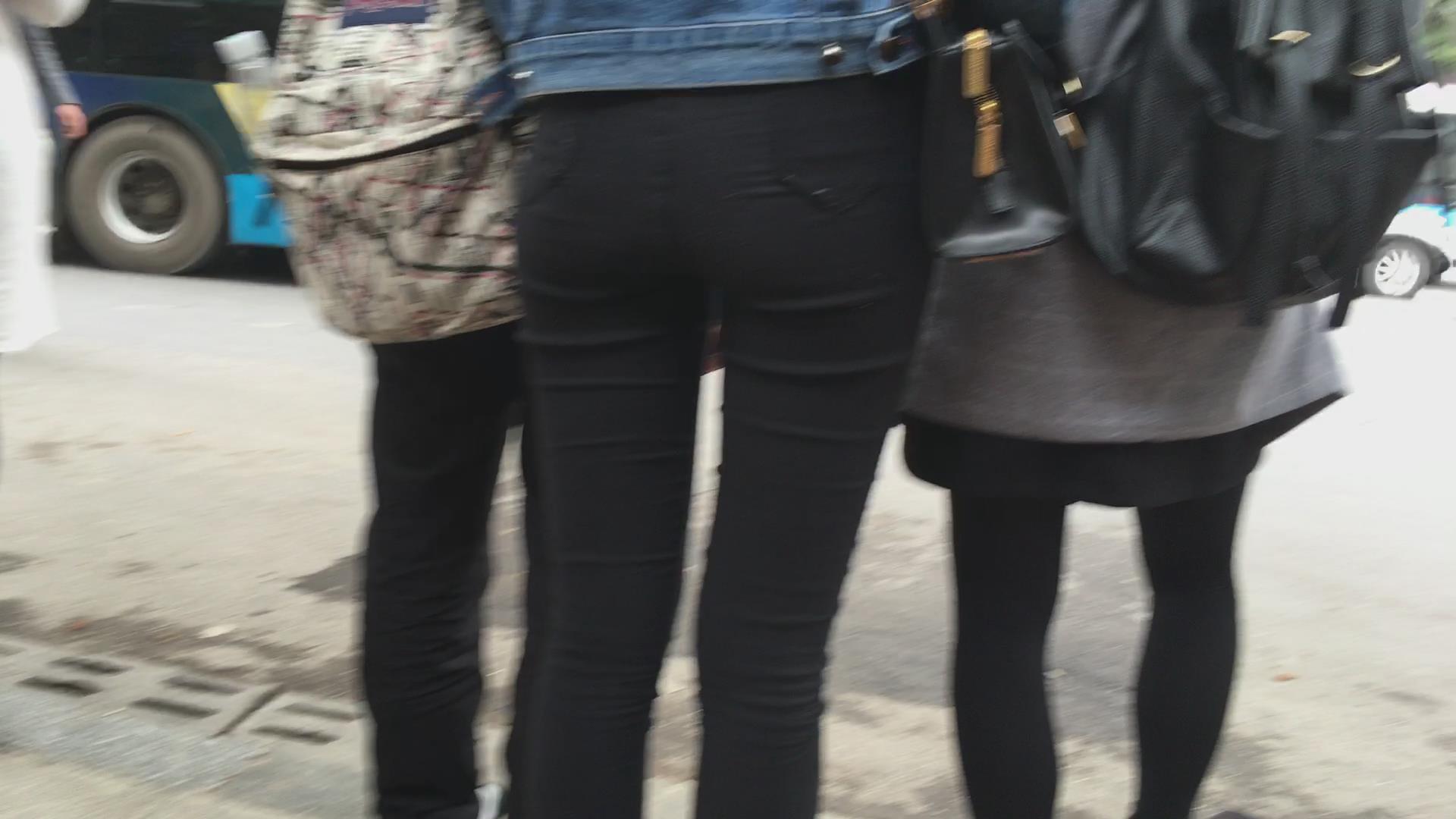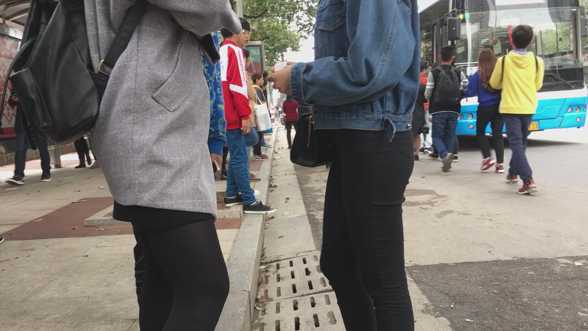 等车紧身黑裤三姐妹花 编号5714 |