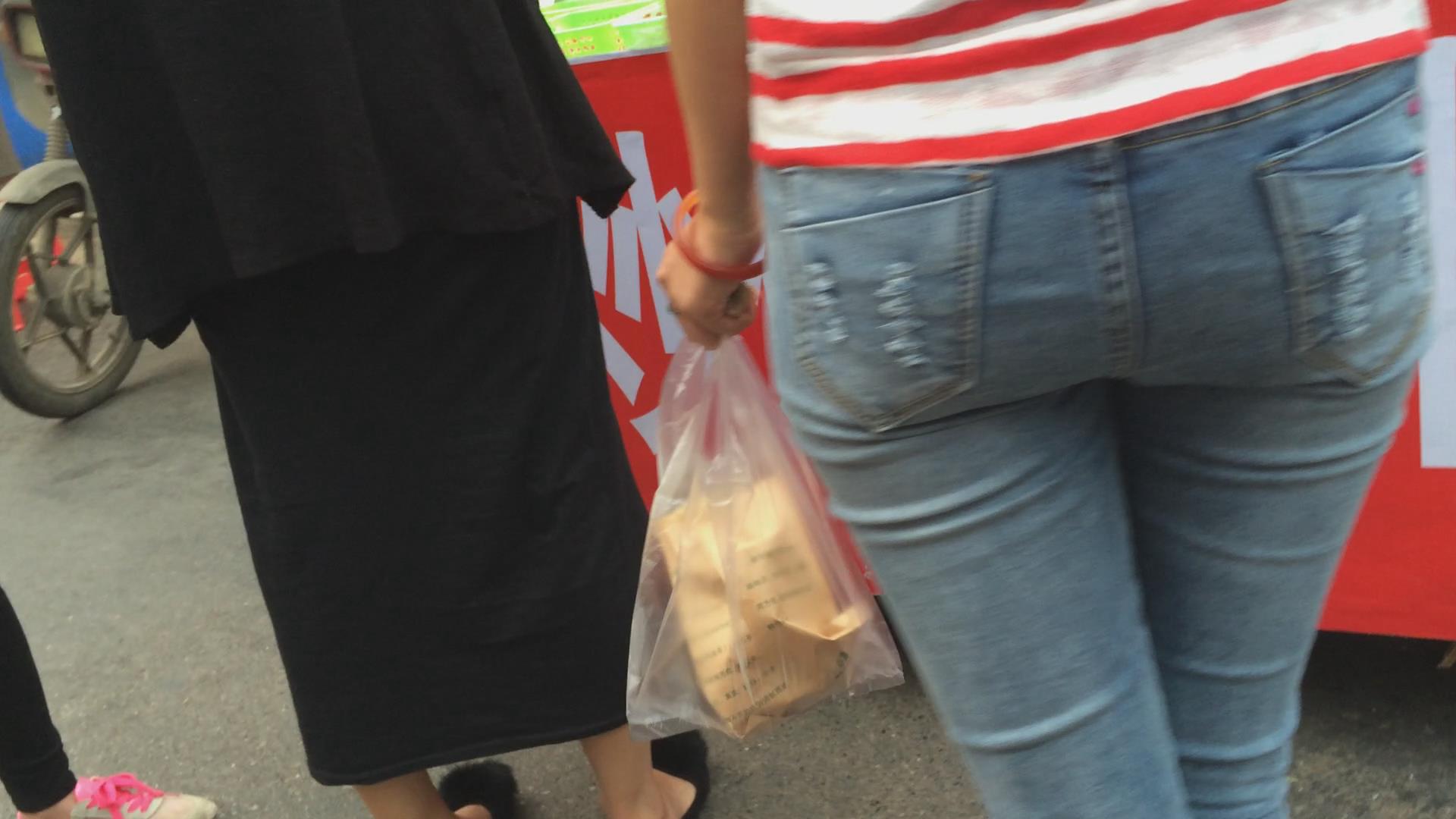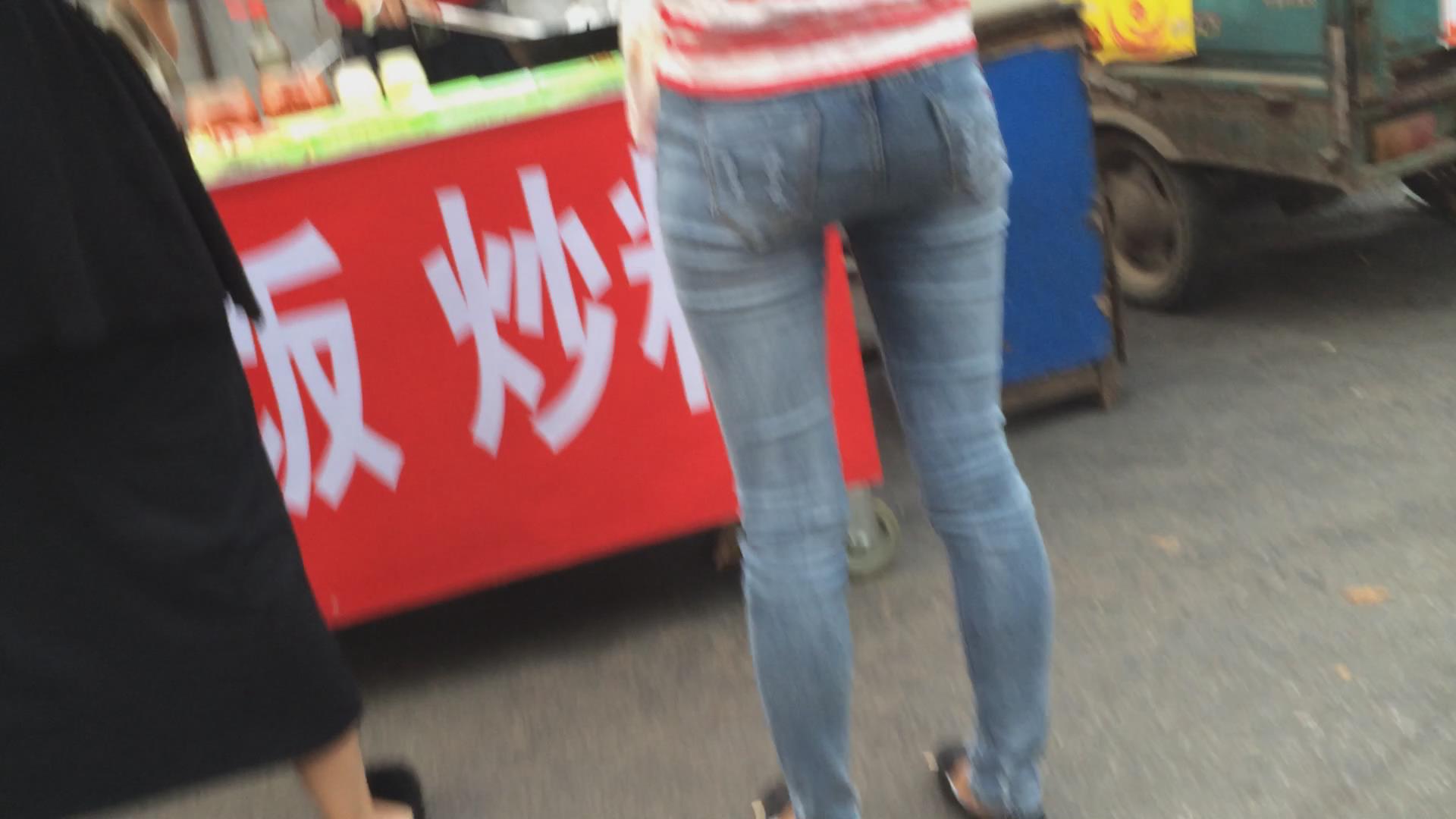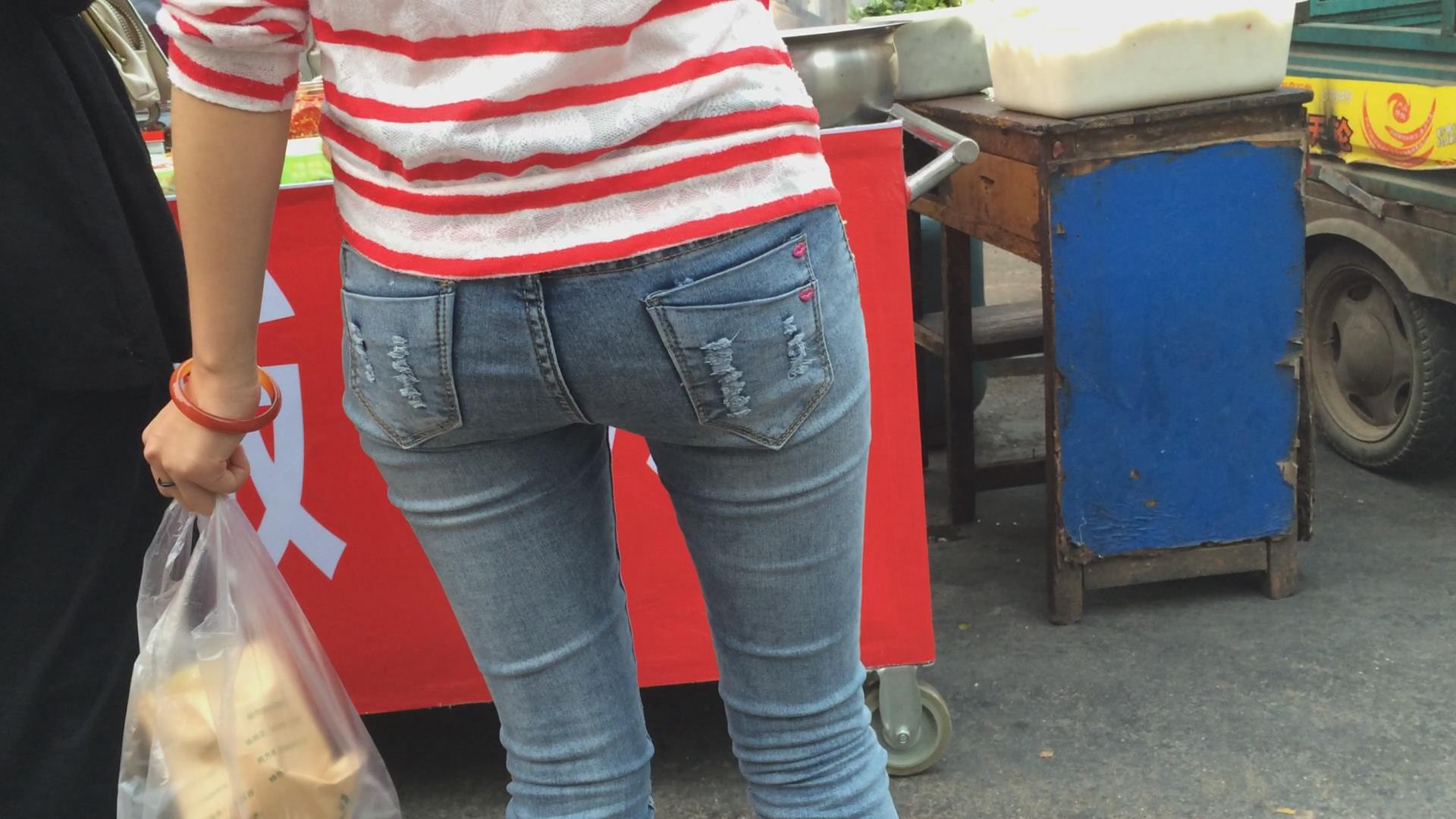 紧身细腿苗条牛仔裤美眉买炒粉吃 编号5769 |