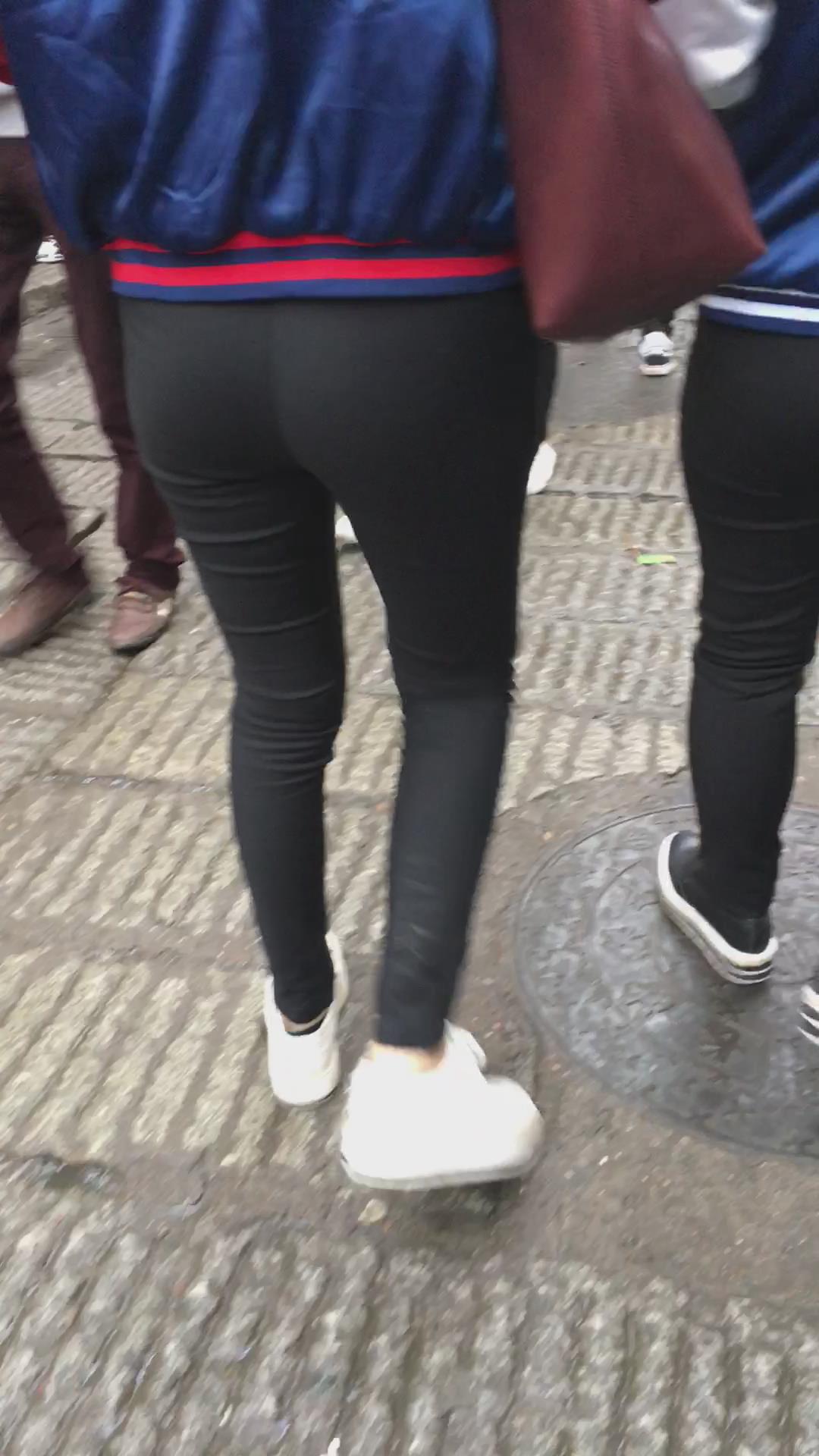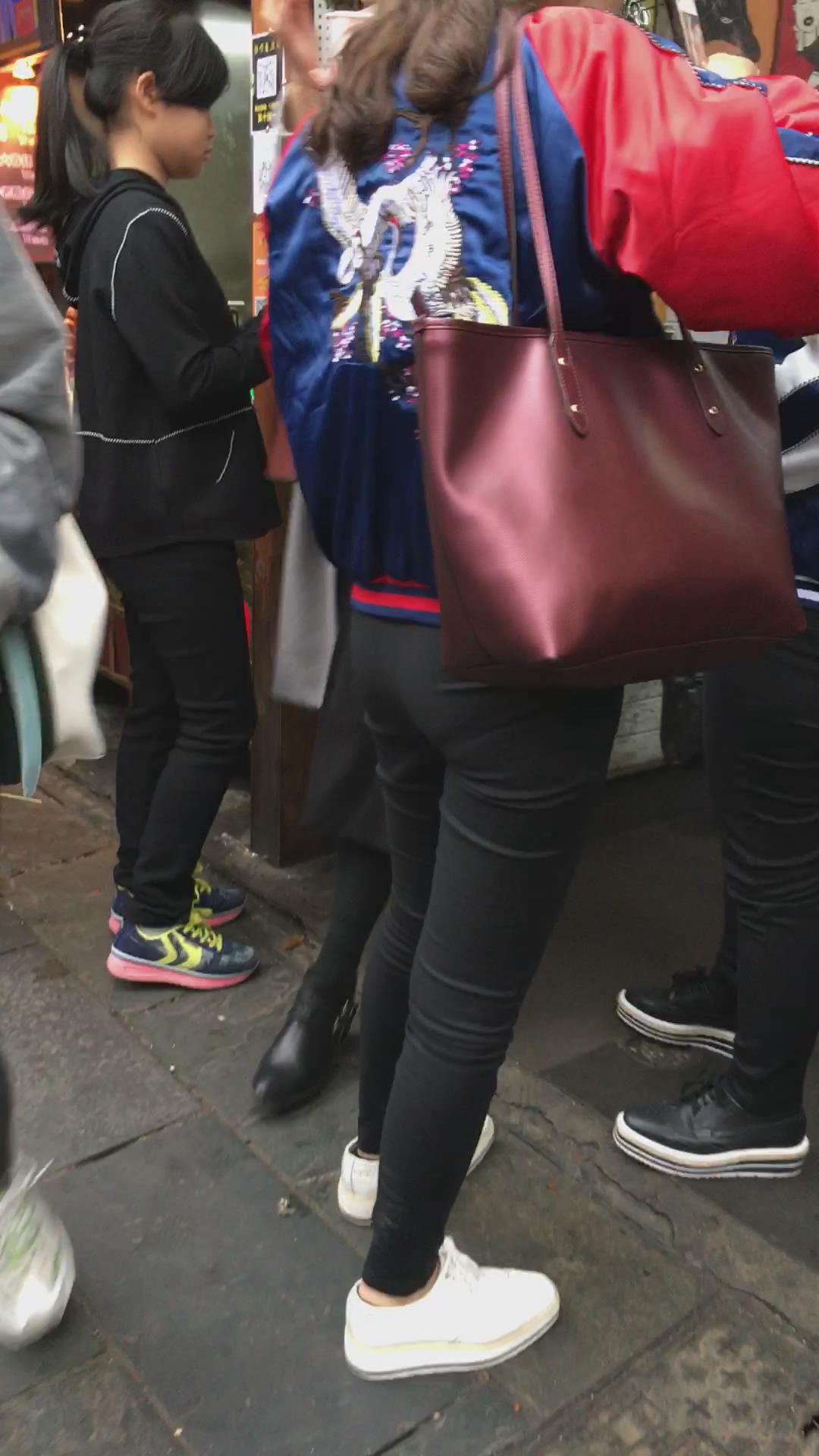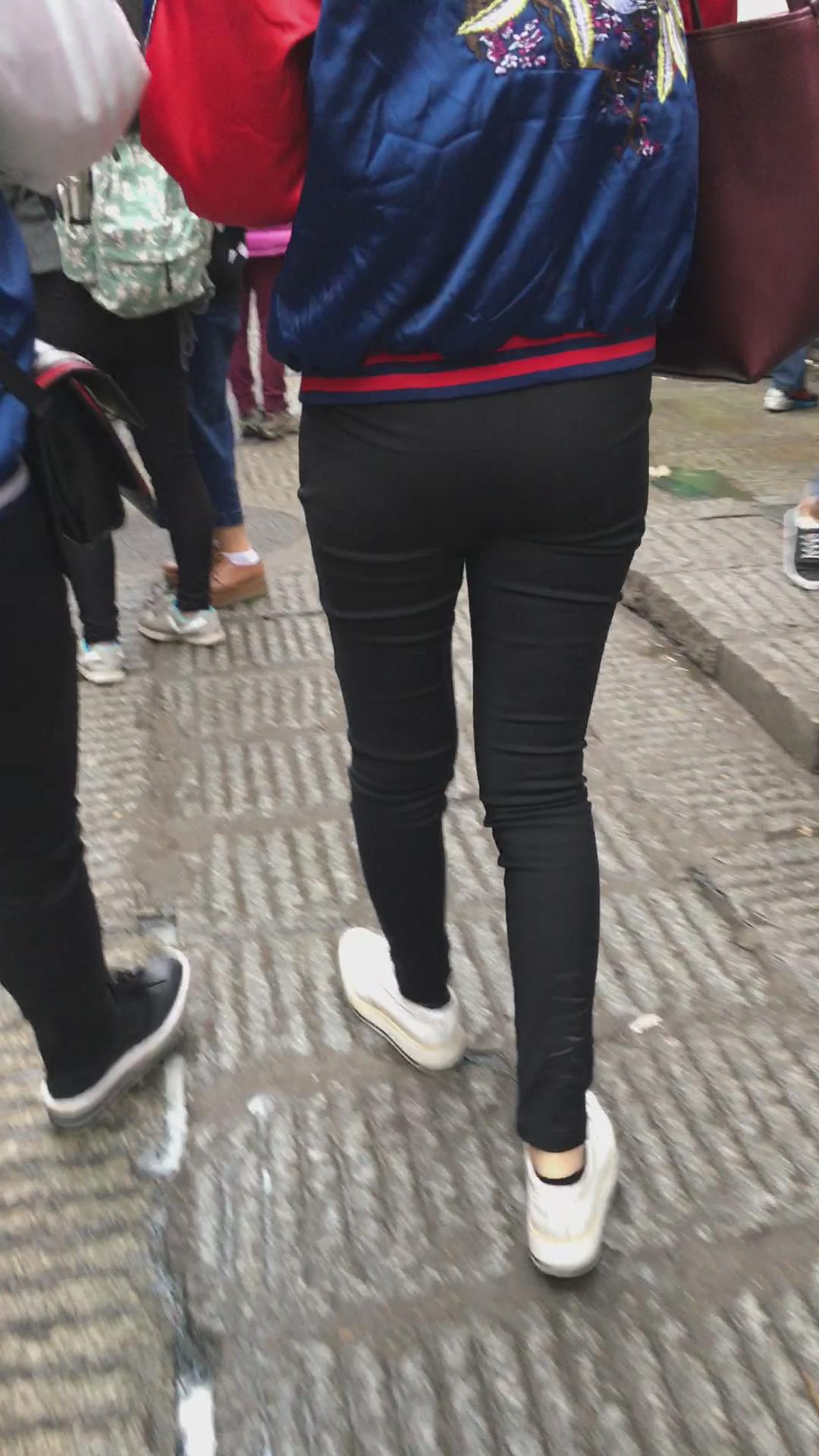 街拍黑色紧身裤学生妹 编号5818 |