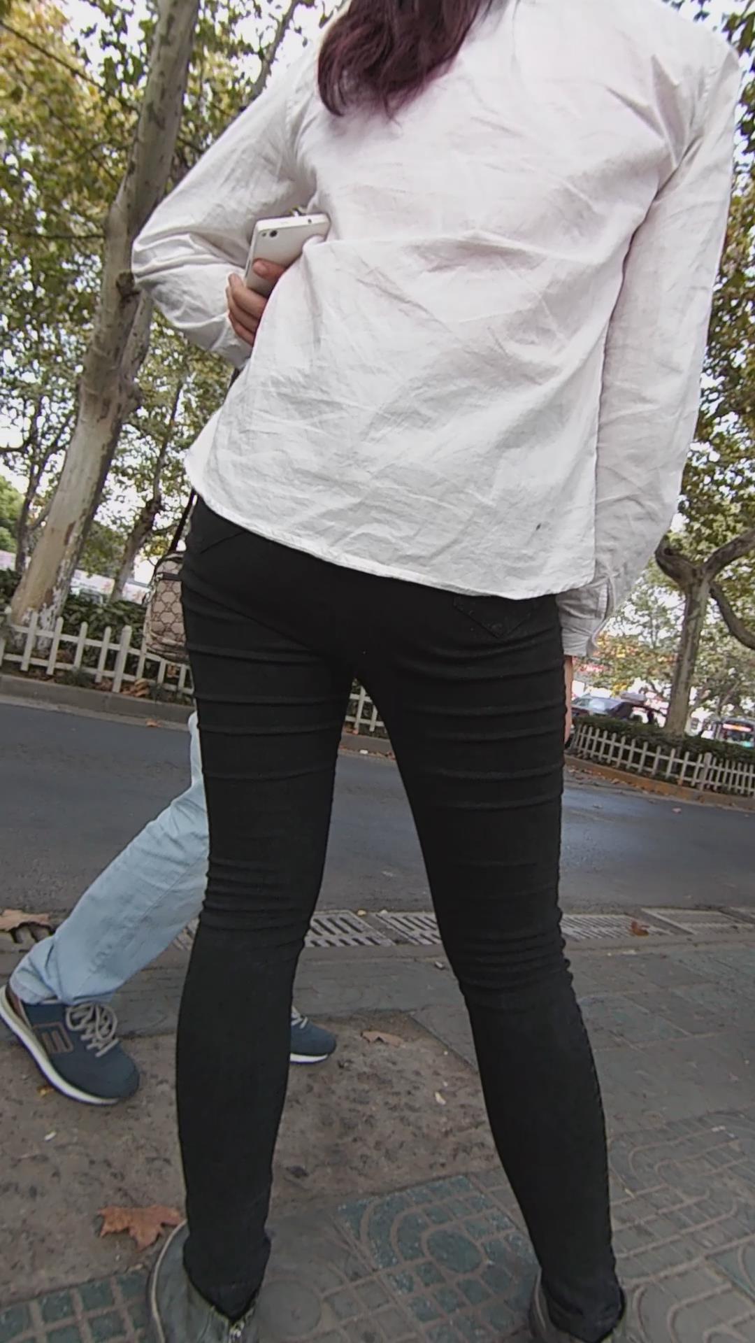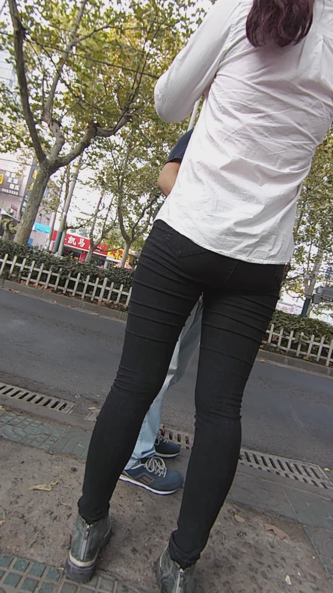 街边等车的紧身黑牛口罩女孩 编号5823 |