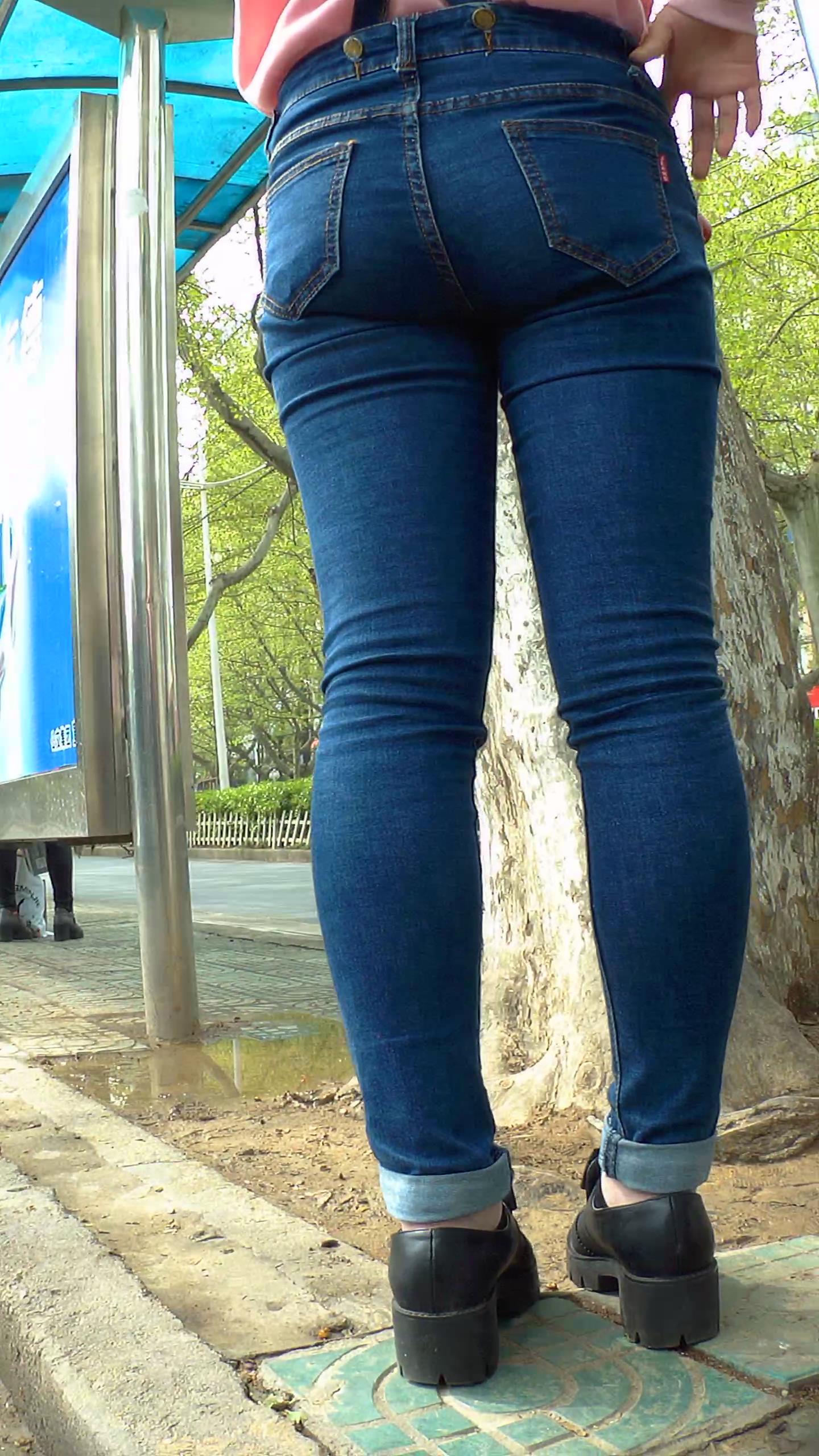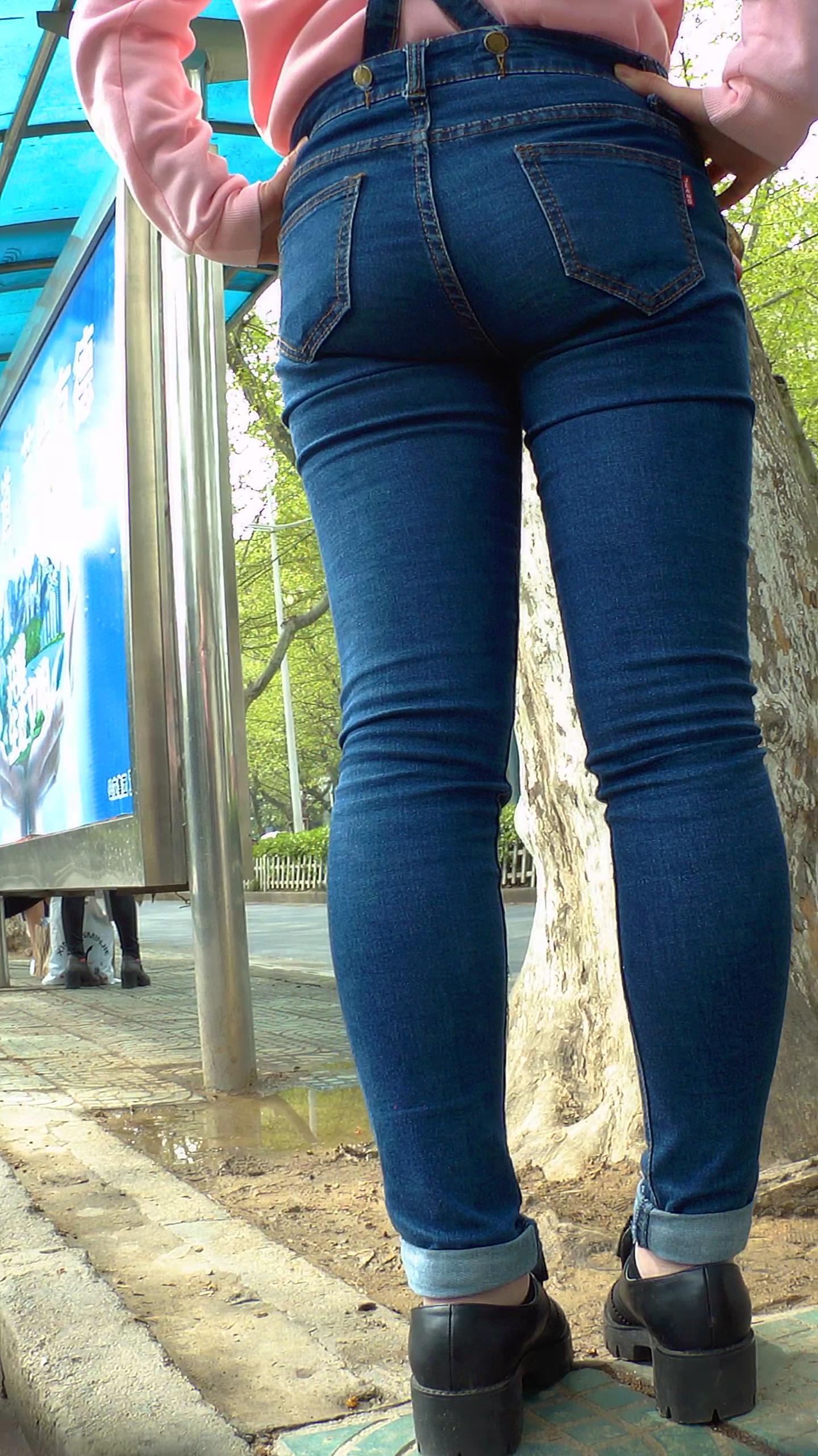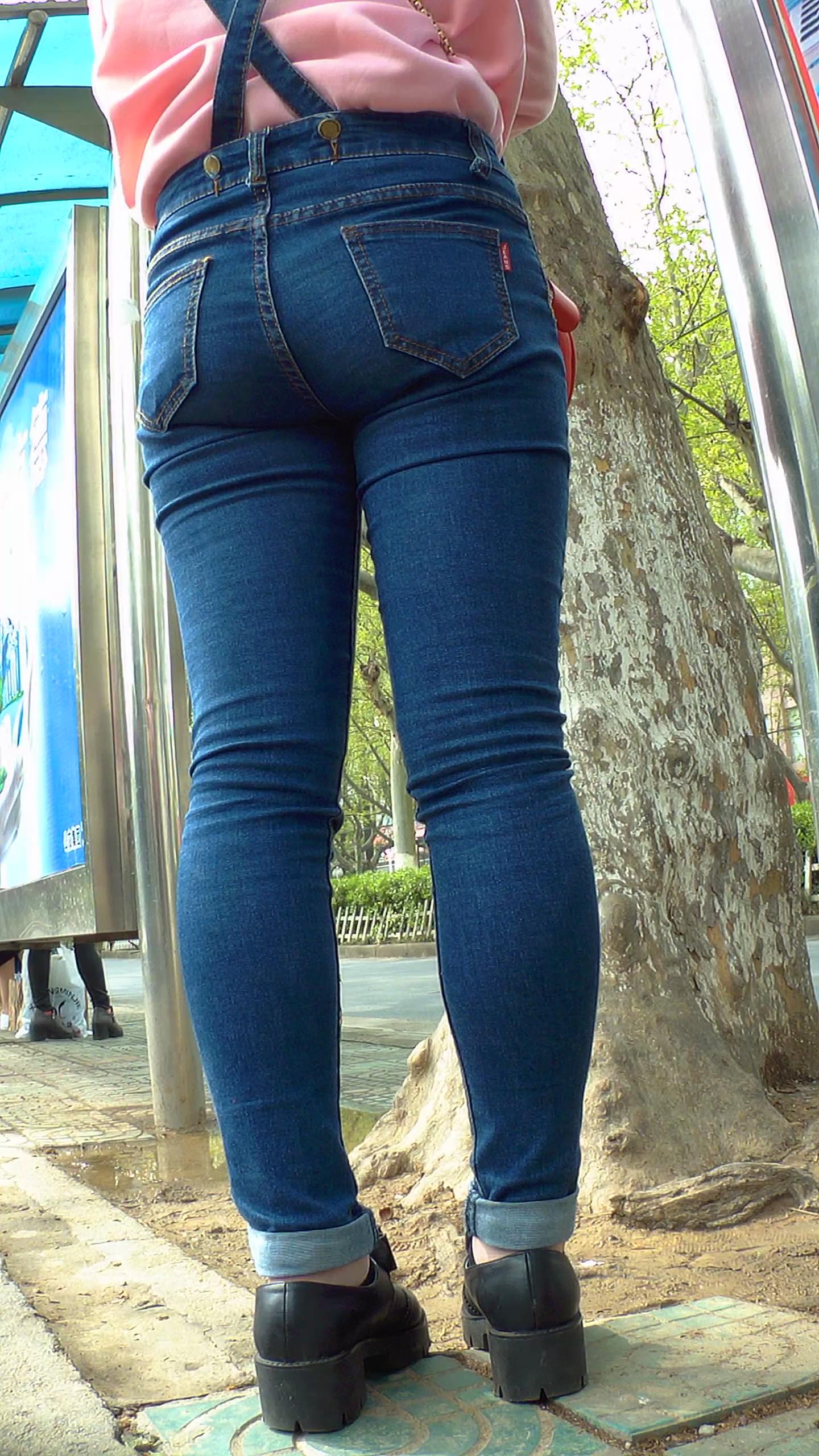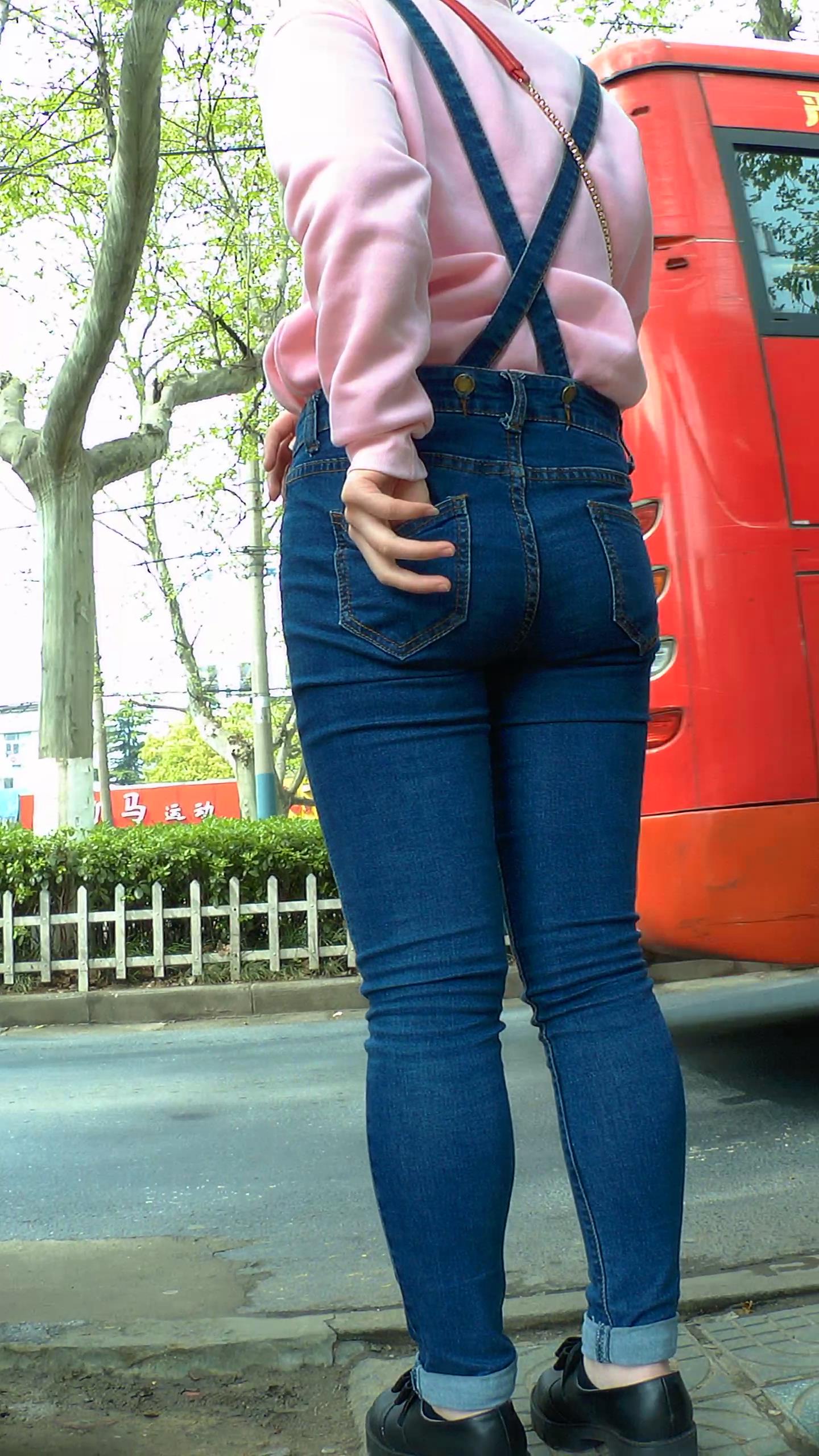 街拍等车的粉衣紧身背带蓝牛翘臀小妹 编号5828 |