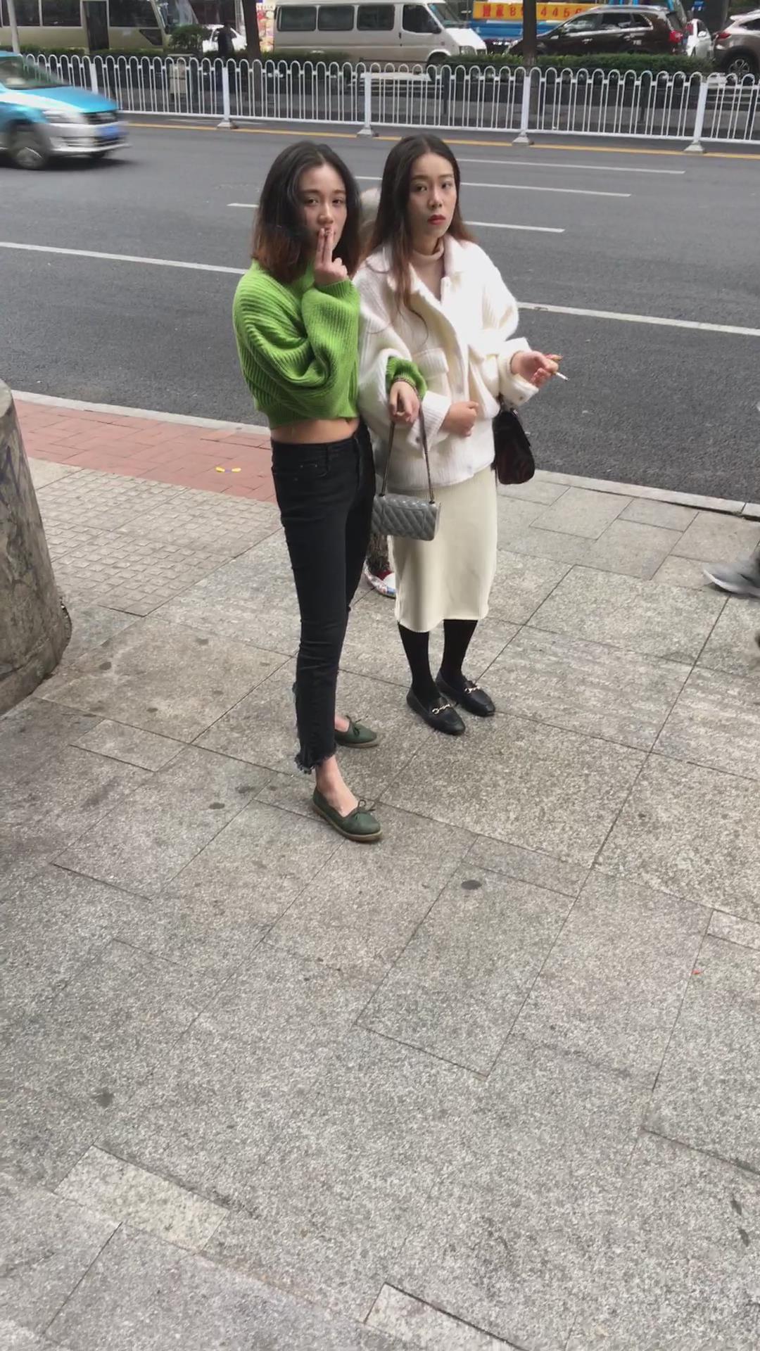 街拍路边抽烟的两位美女小姐姐 编号5841 |