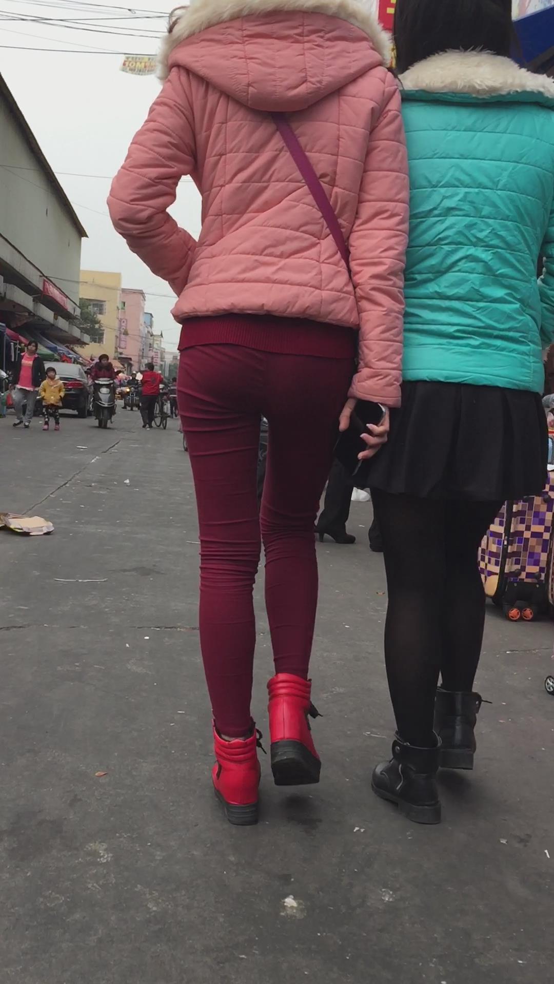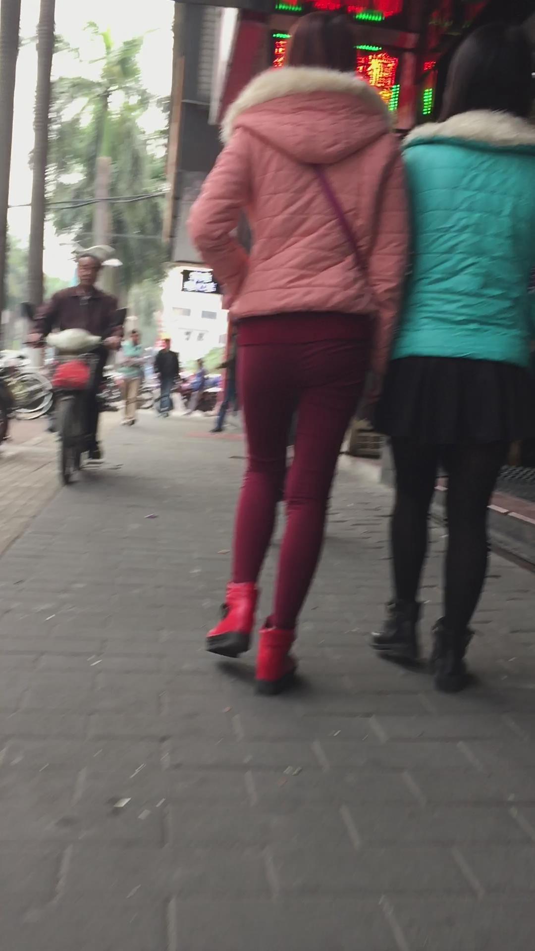街拍红色紧身裤美眉 编号5877 |
