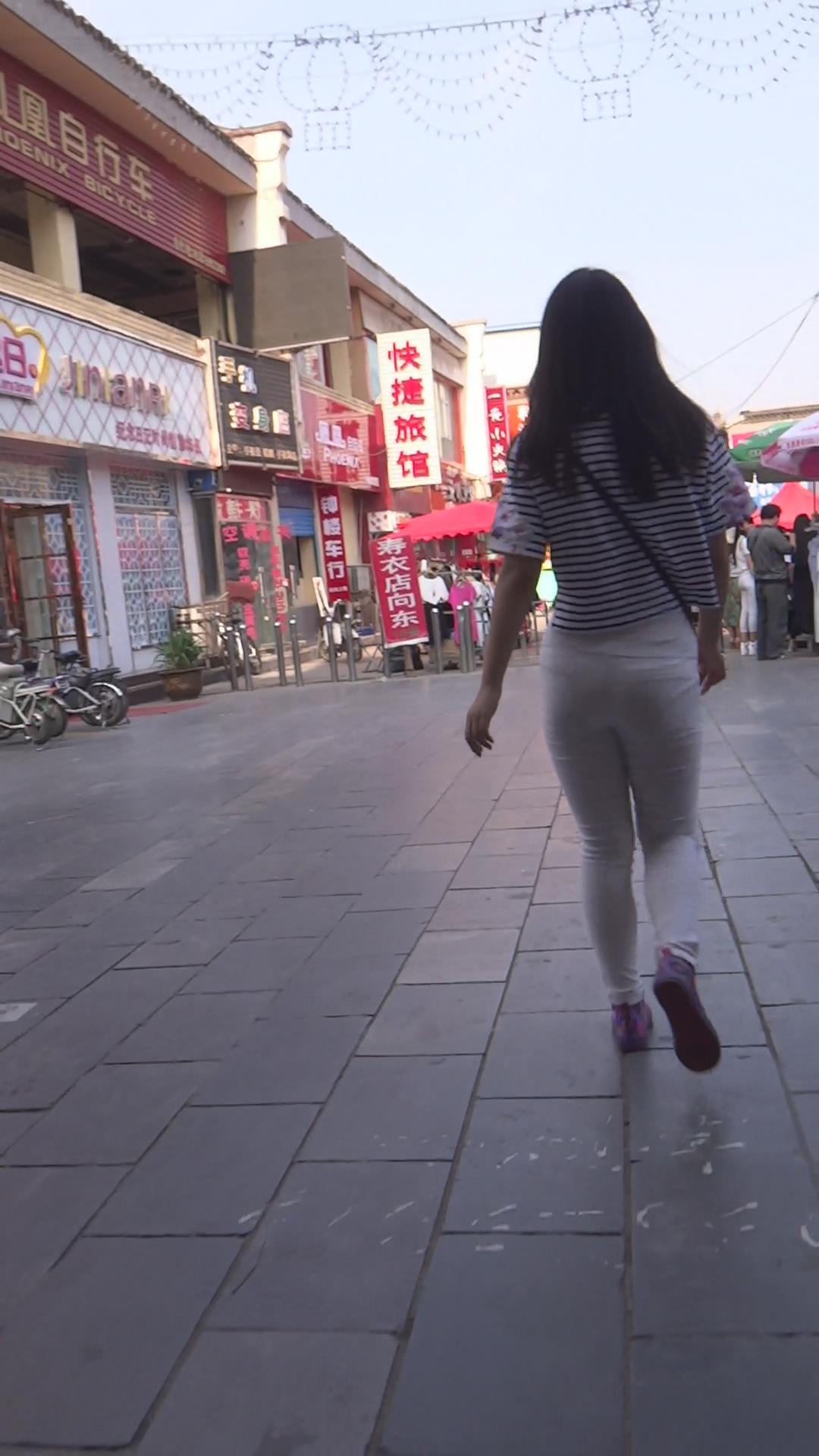 街拍条纹紧身裤圆臀性感美女 编号5885 |