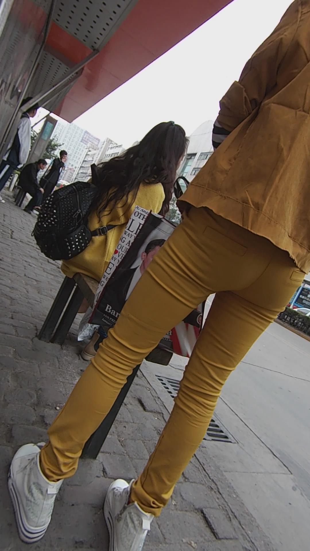 公车站娇小身材黄色紧身裤清新小美女。 编号5951 |