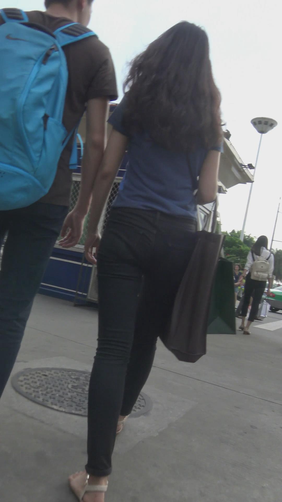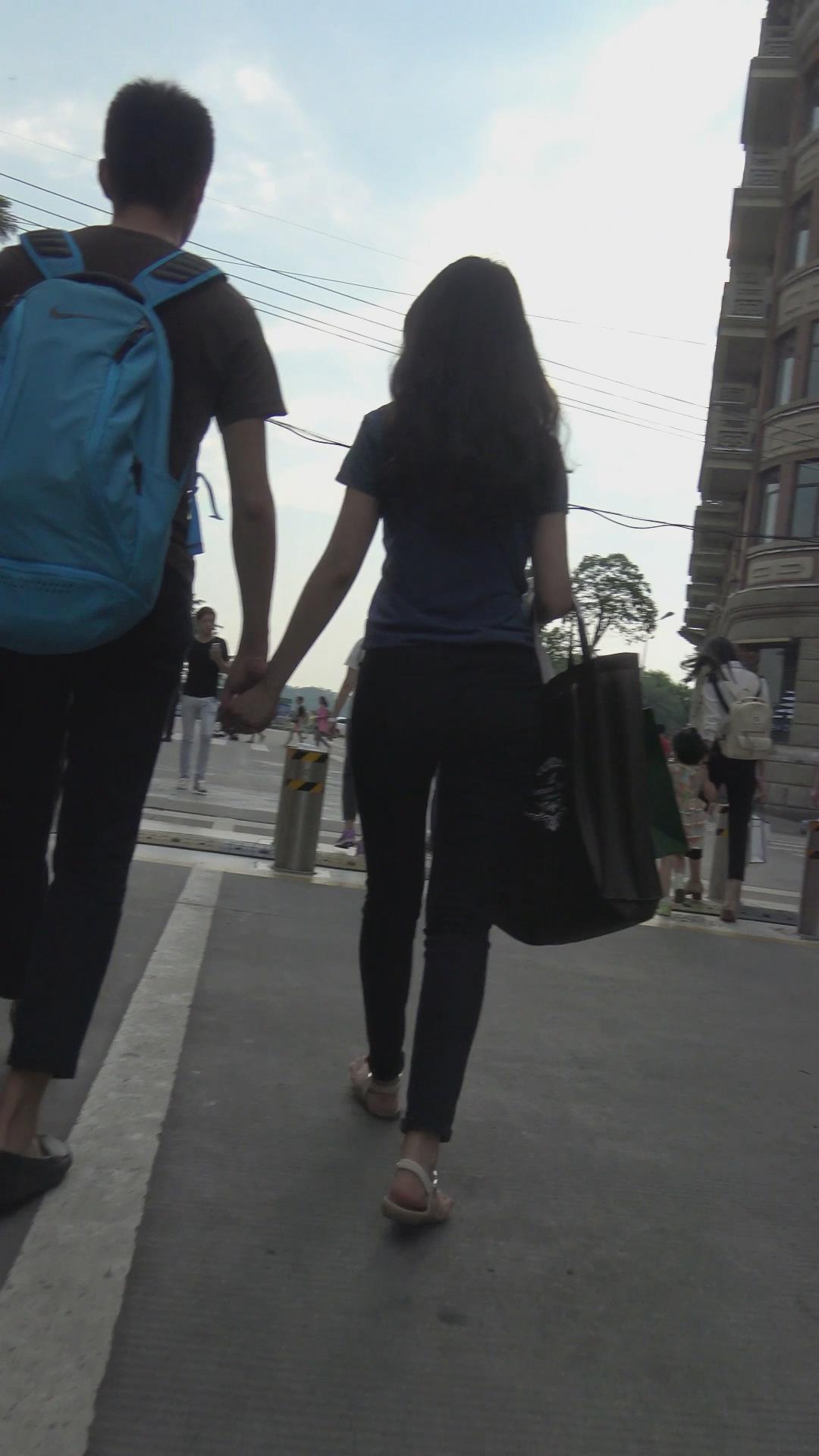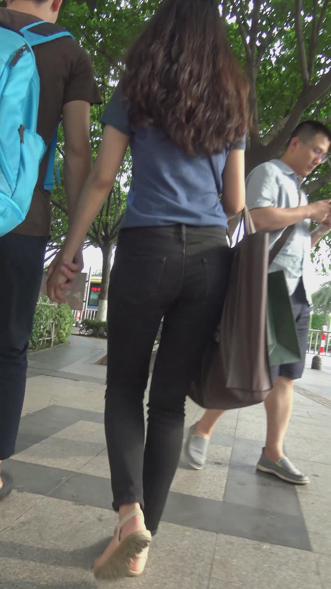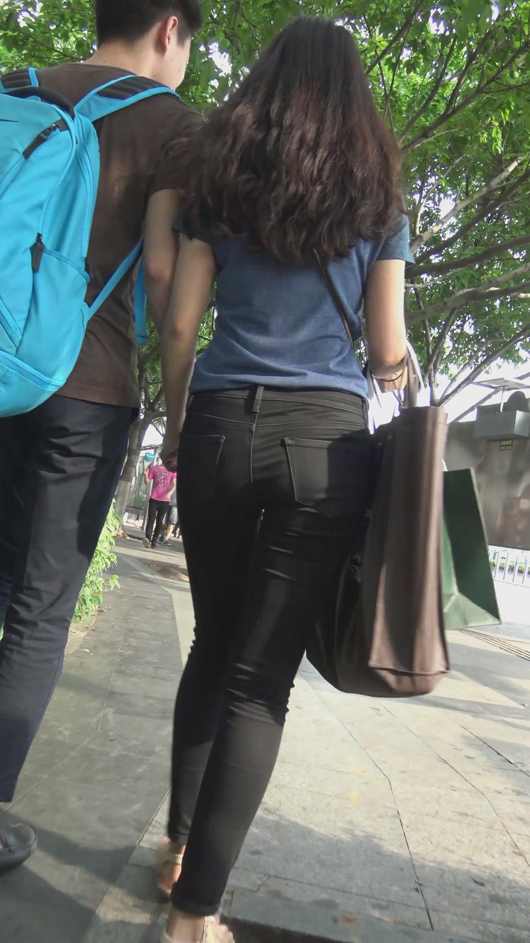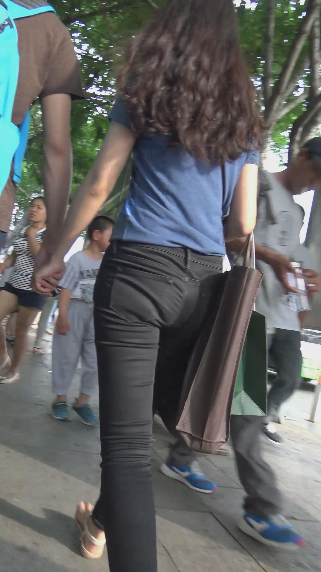 街拍苗条身材黑色紧身裤MM 编号6039 |