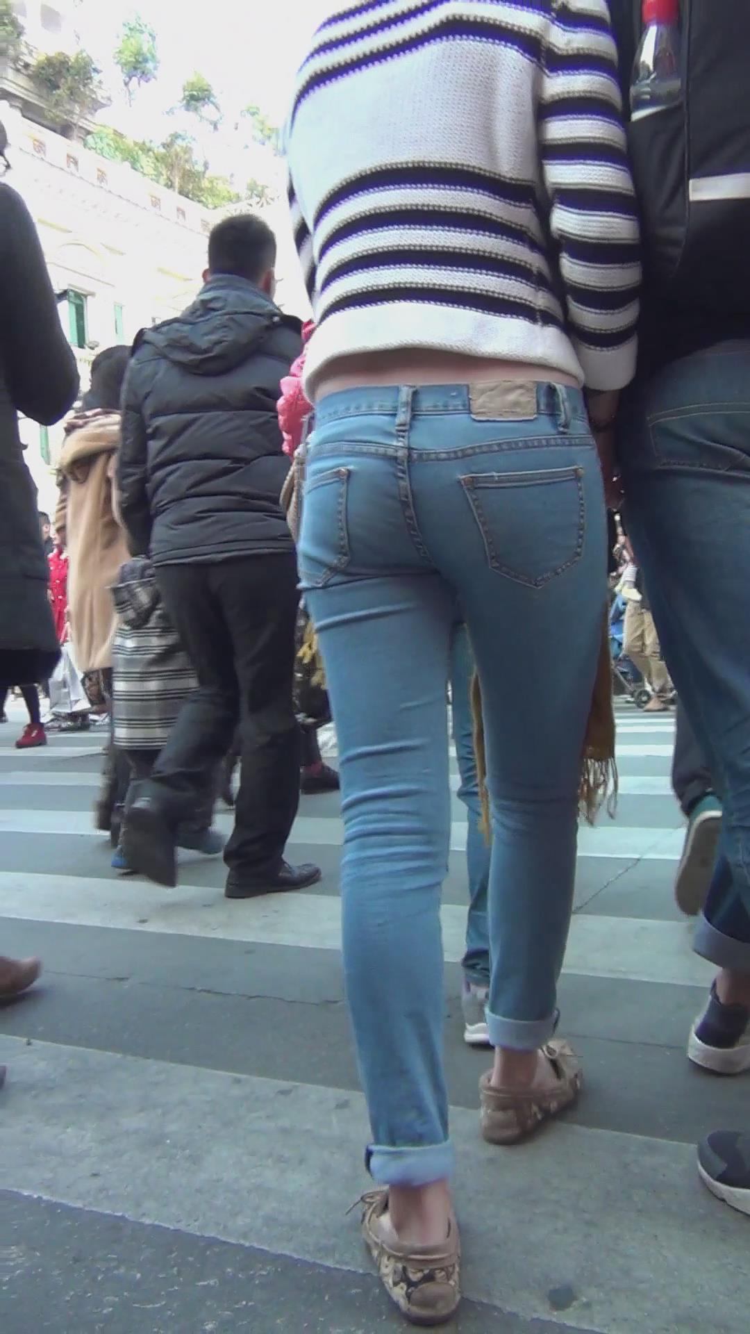 街拍翘臀紧身蓝色牛仔裤美女 编号6048 |