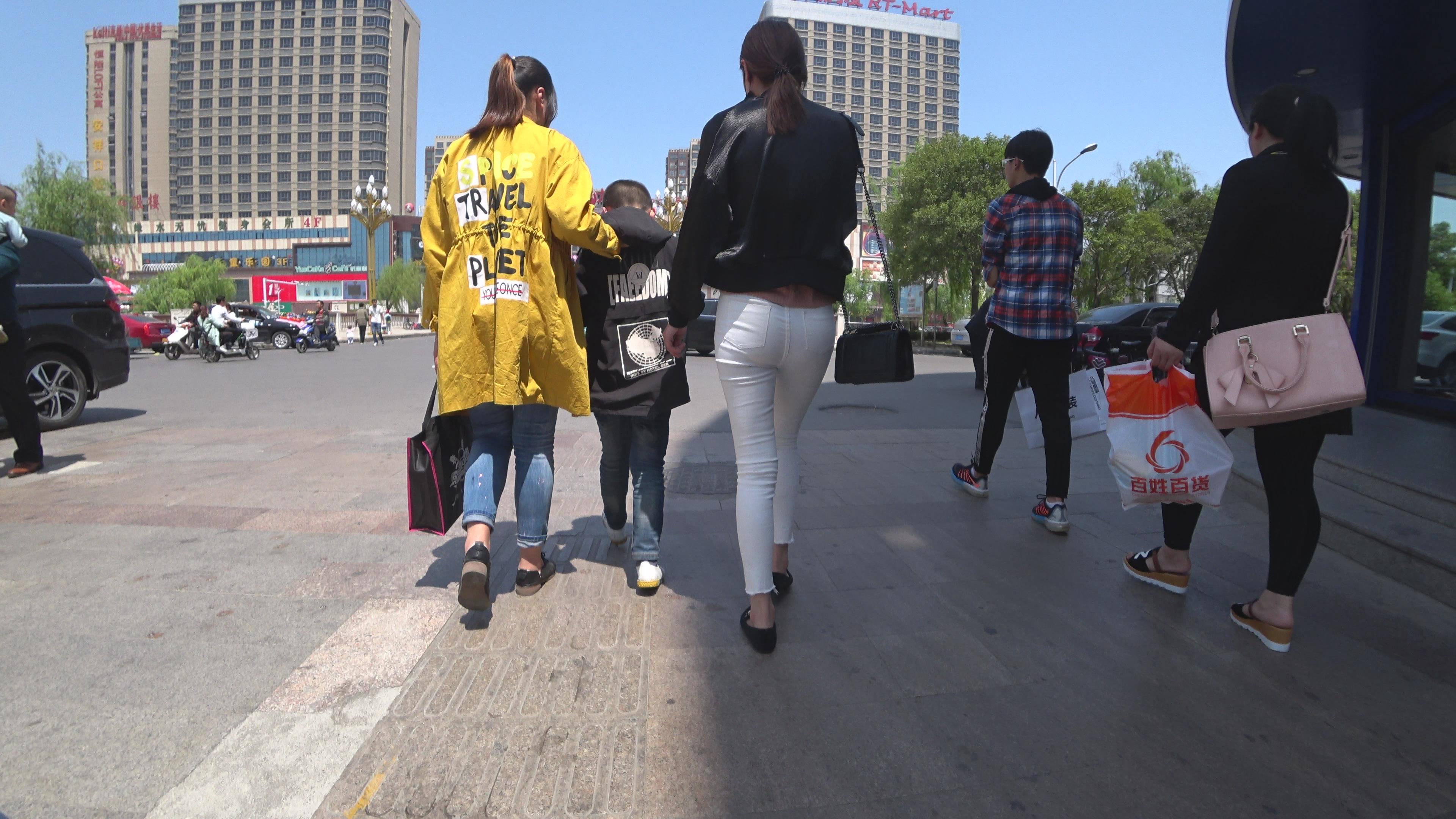 街拍皮衣紧身白裤美女 编号6066 |
