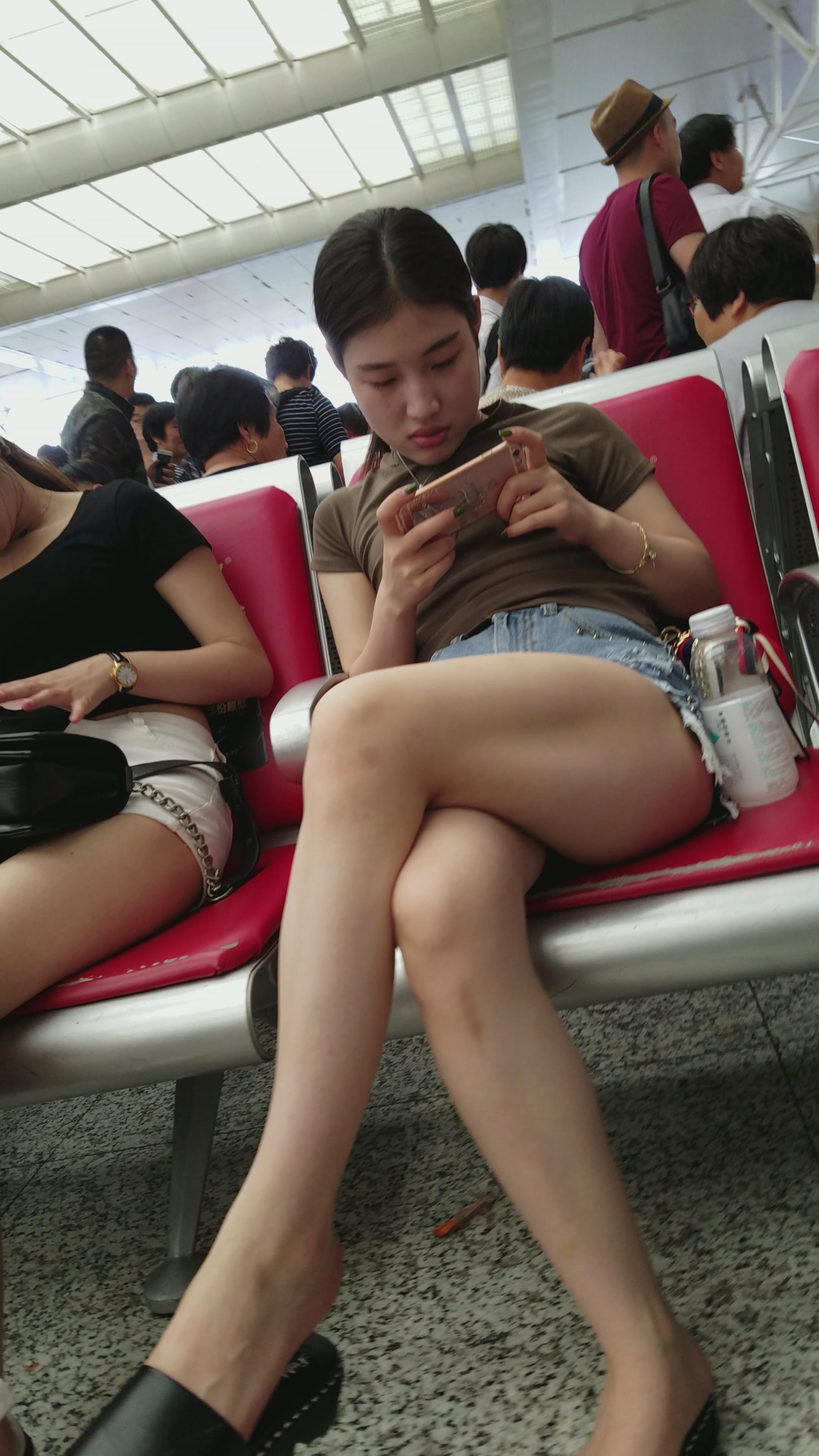 4K-牛仔热裤长腿墨绿T恤衫街拍美女 编号2765 |