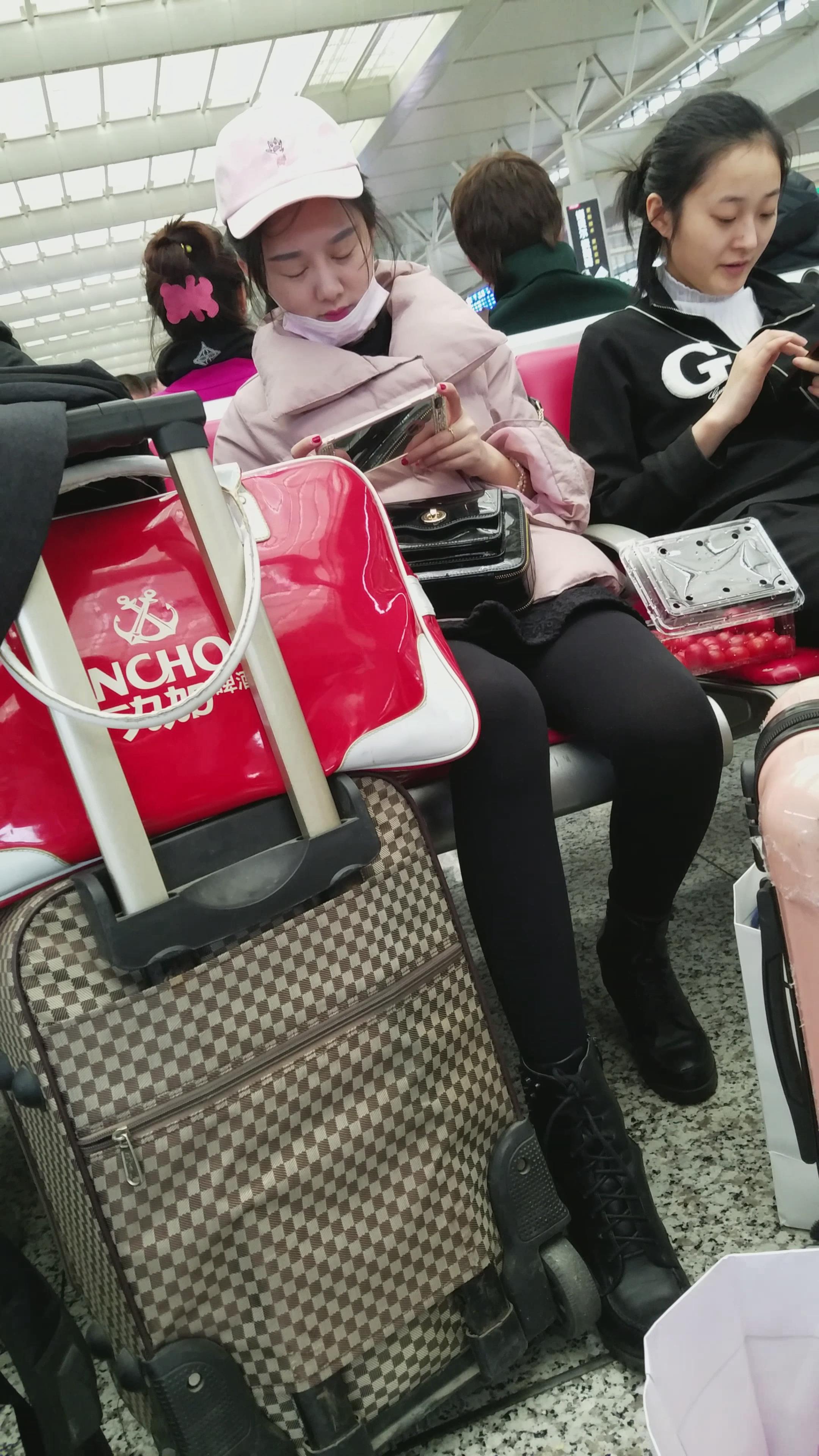 4k-高铁站候车室拍摄粉色鸭舌帽美眉 编号2953 |