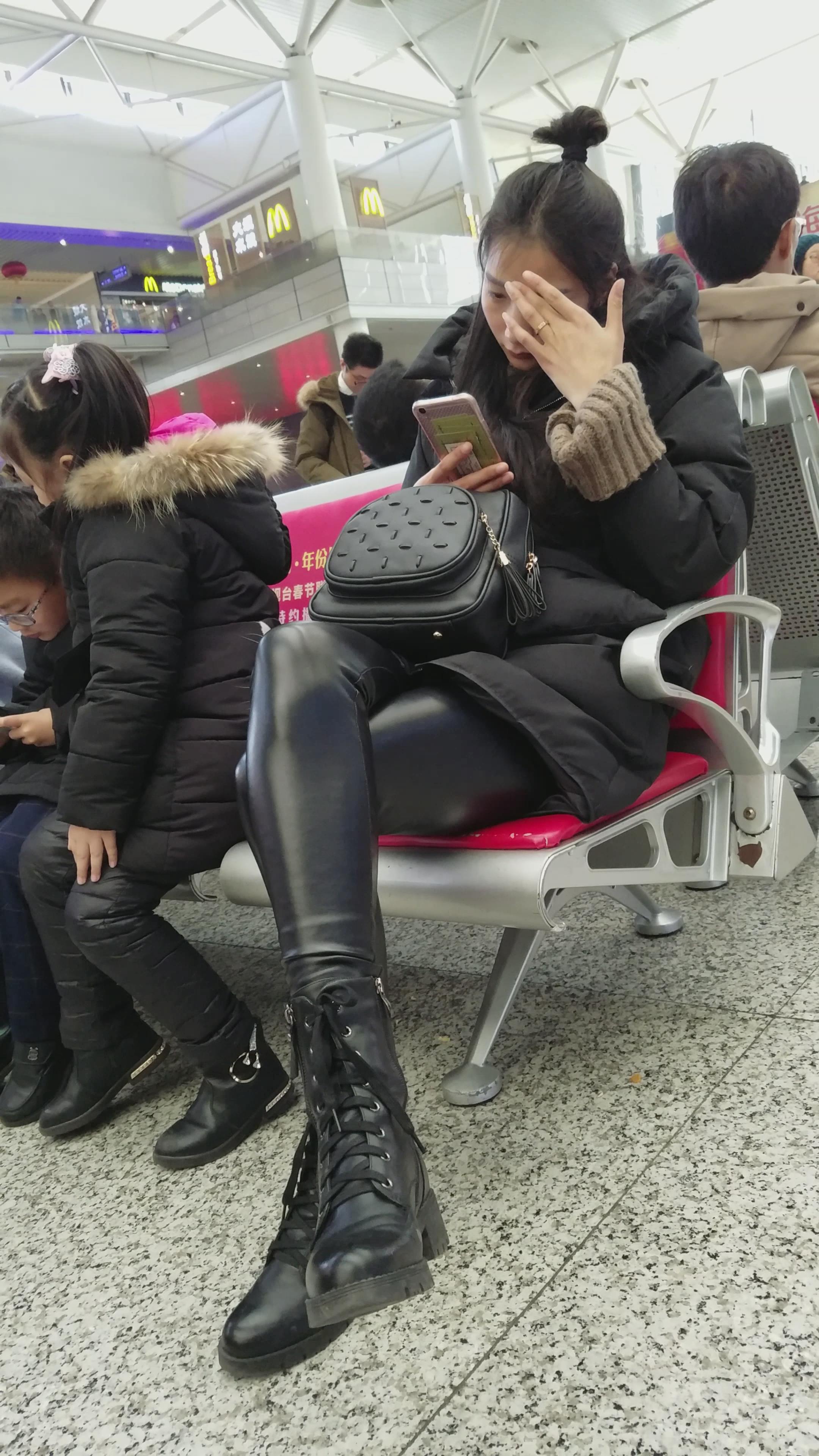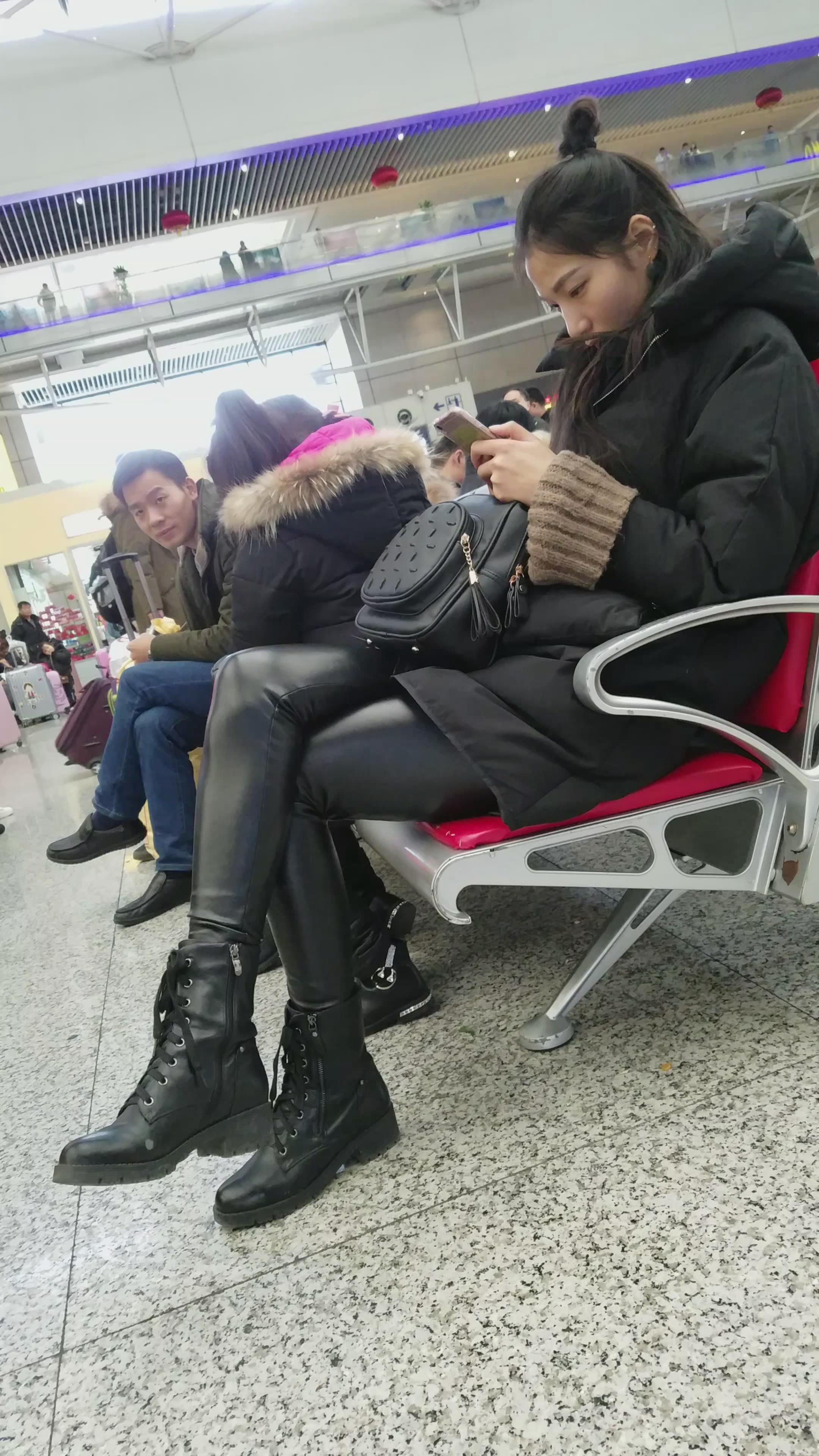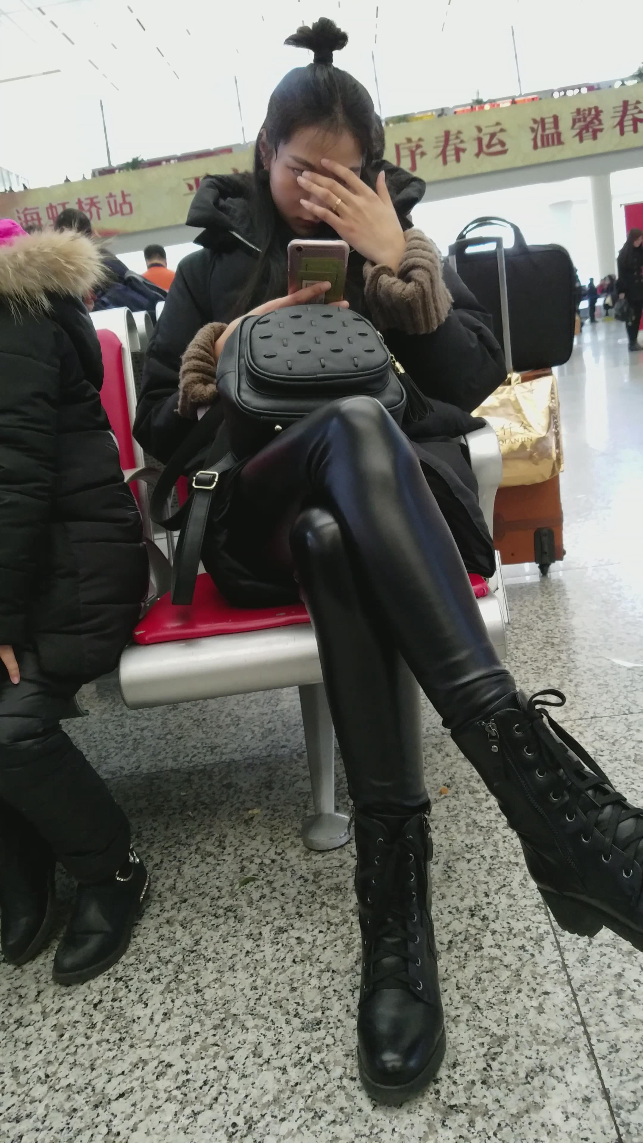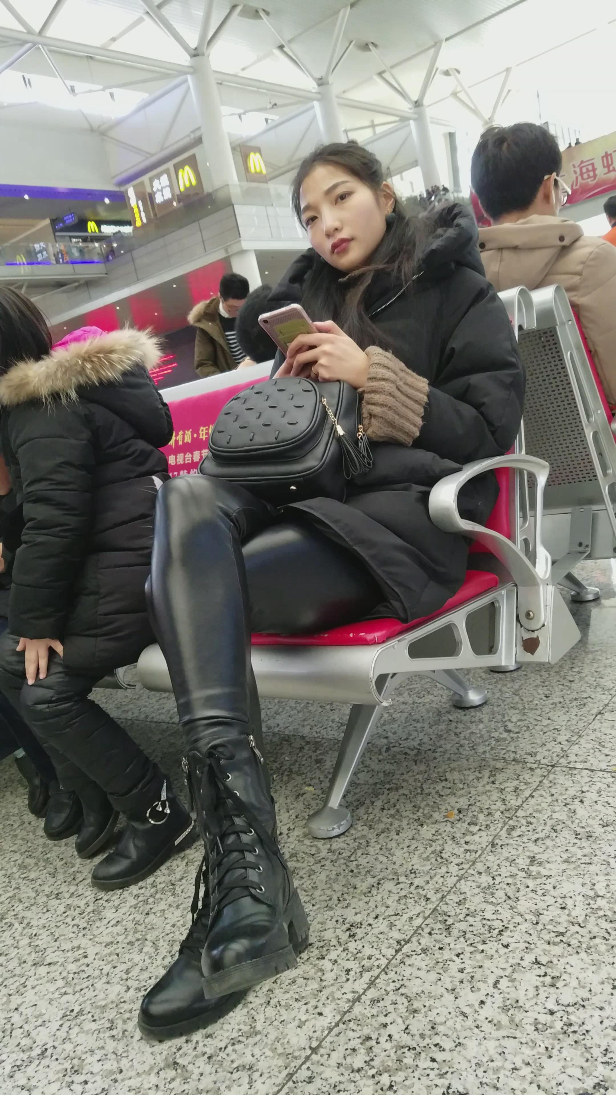 4k-高铁站候车室拍摄皮裤长腿美女 编号2962 |