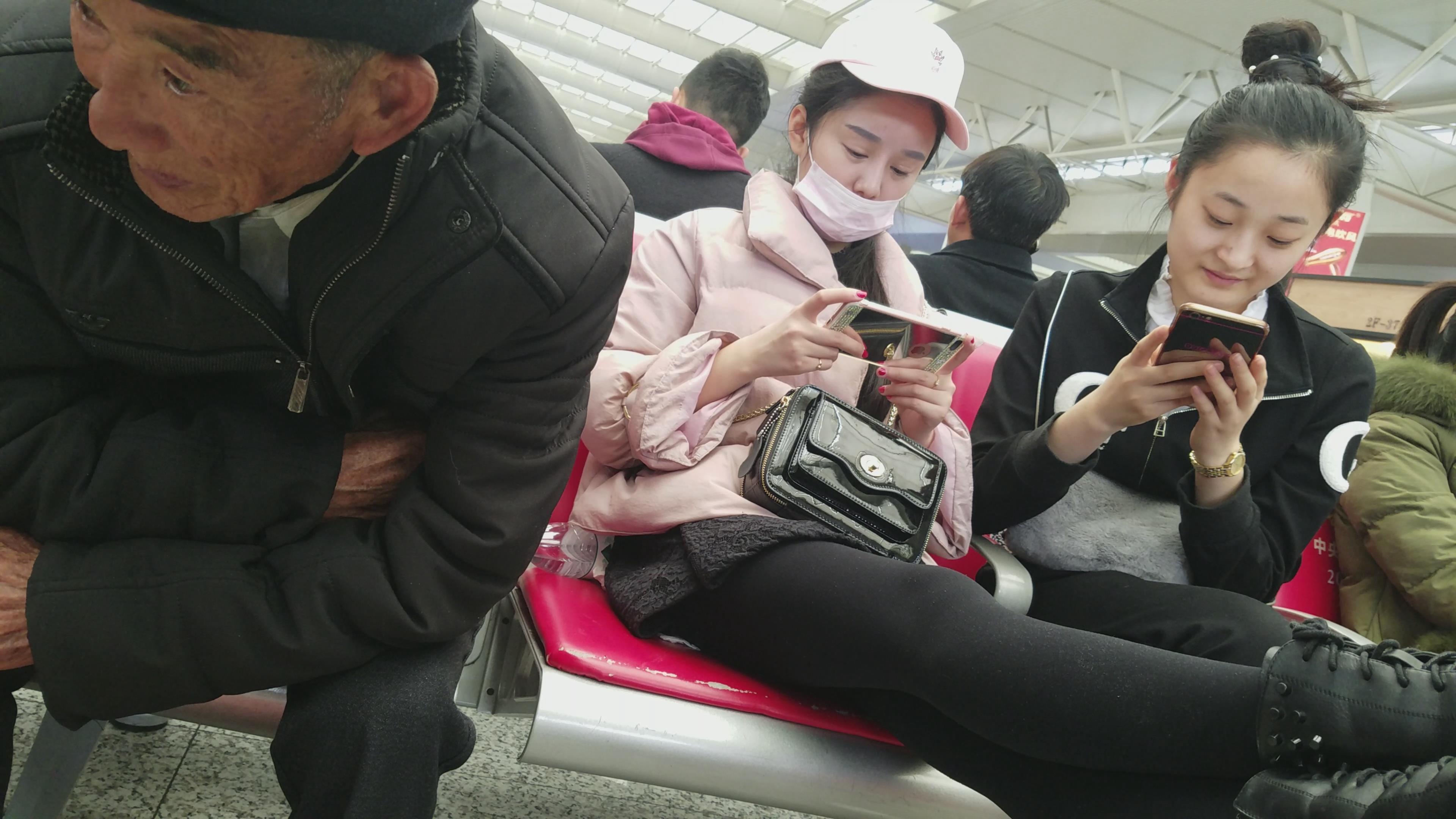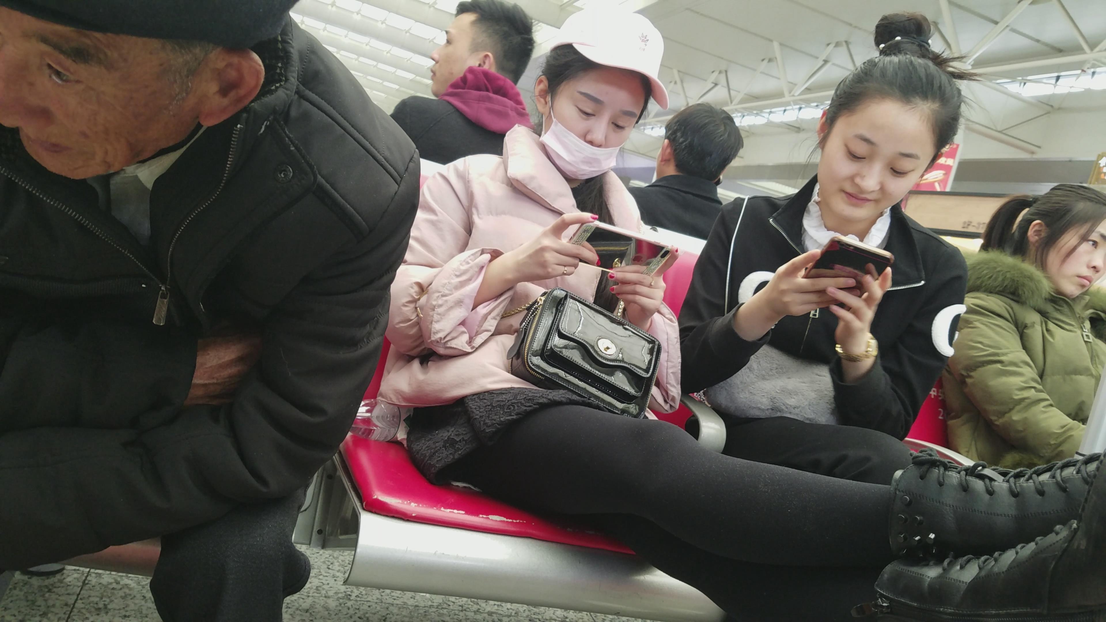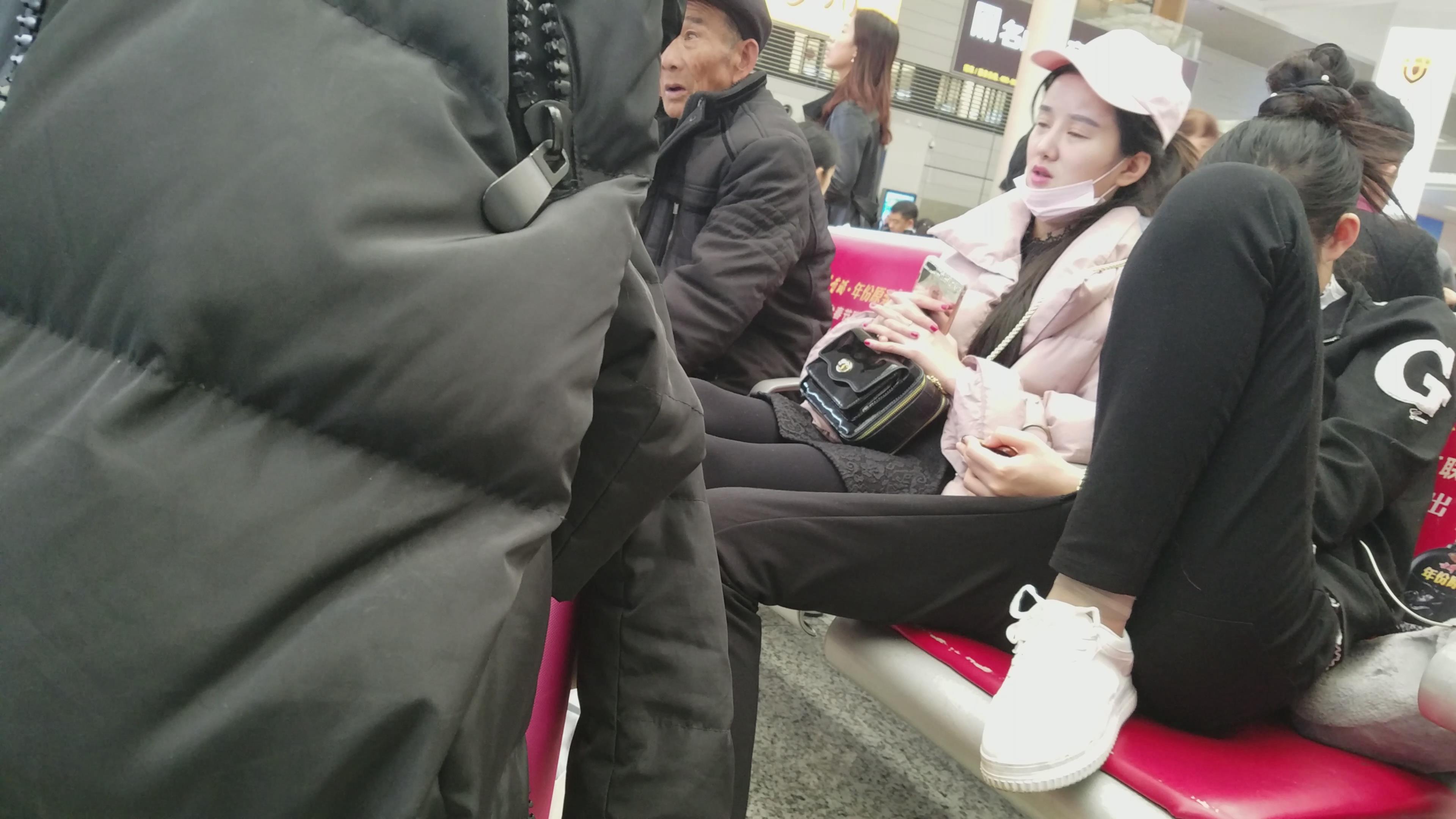 4k-高铁站候车室拍摄美腿粉衣口罩MM 编号3090 |