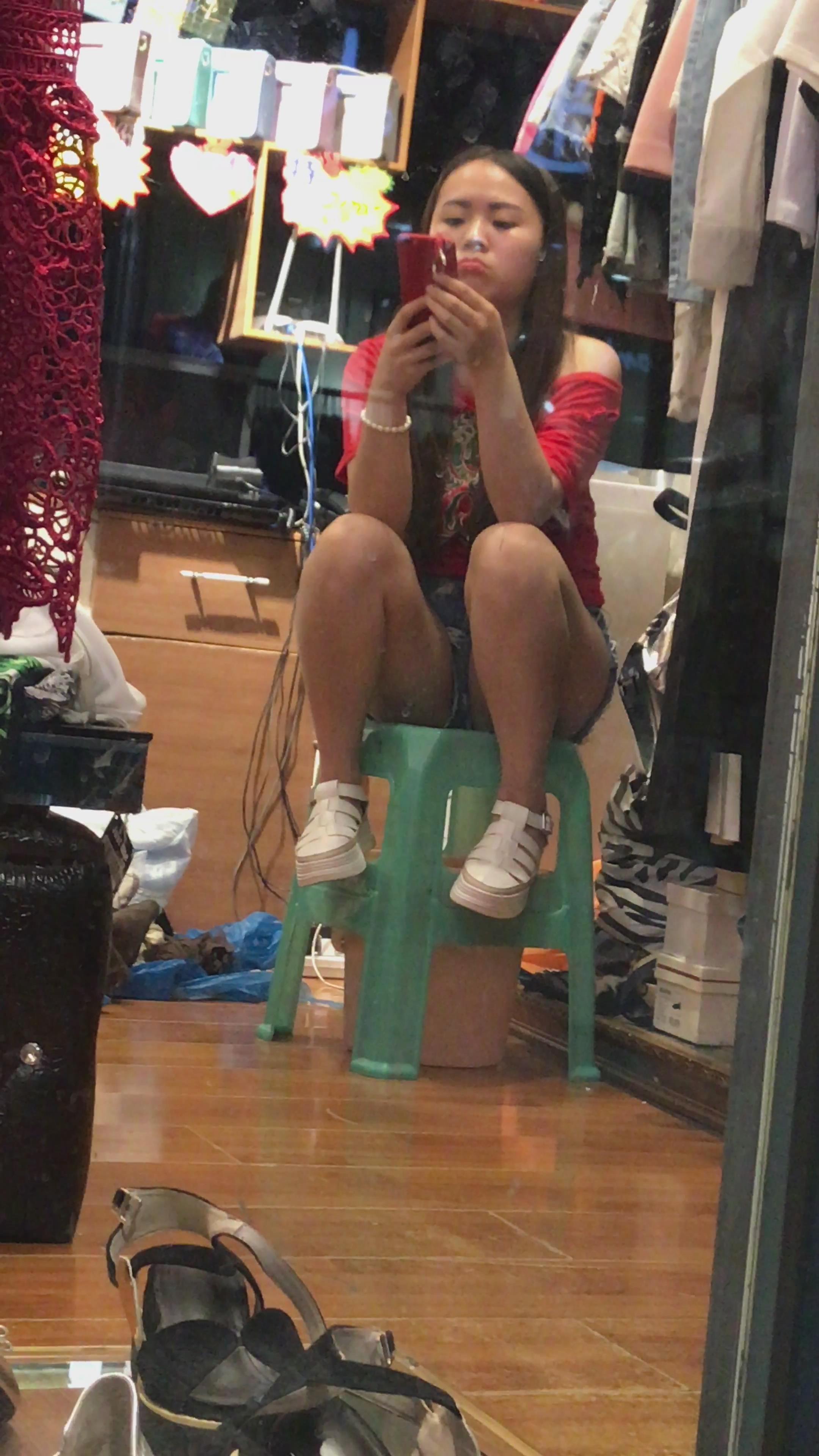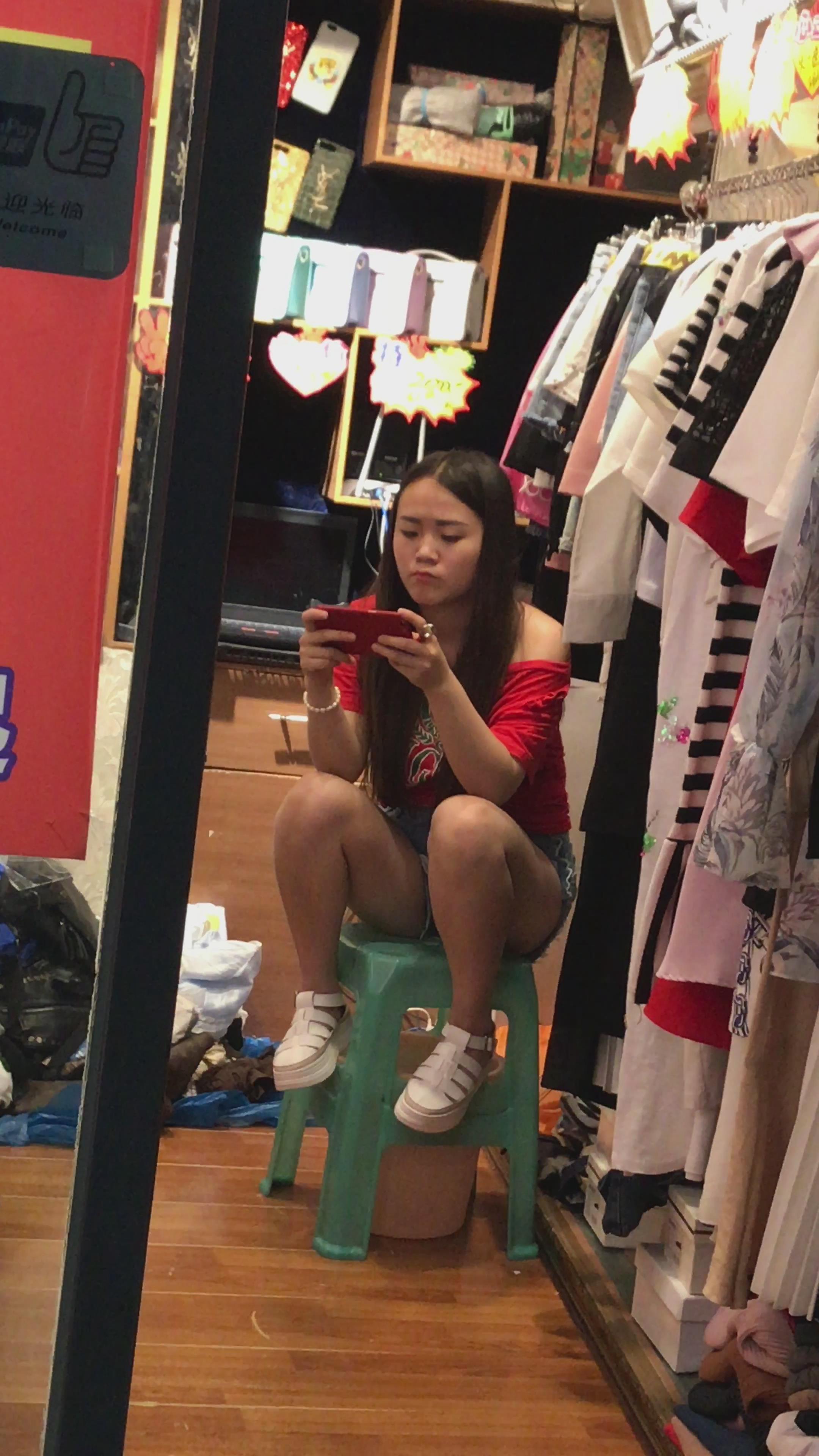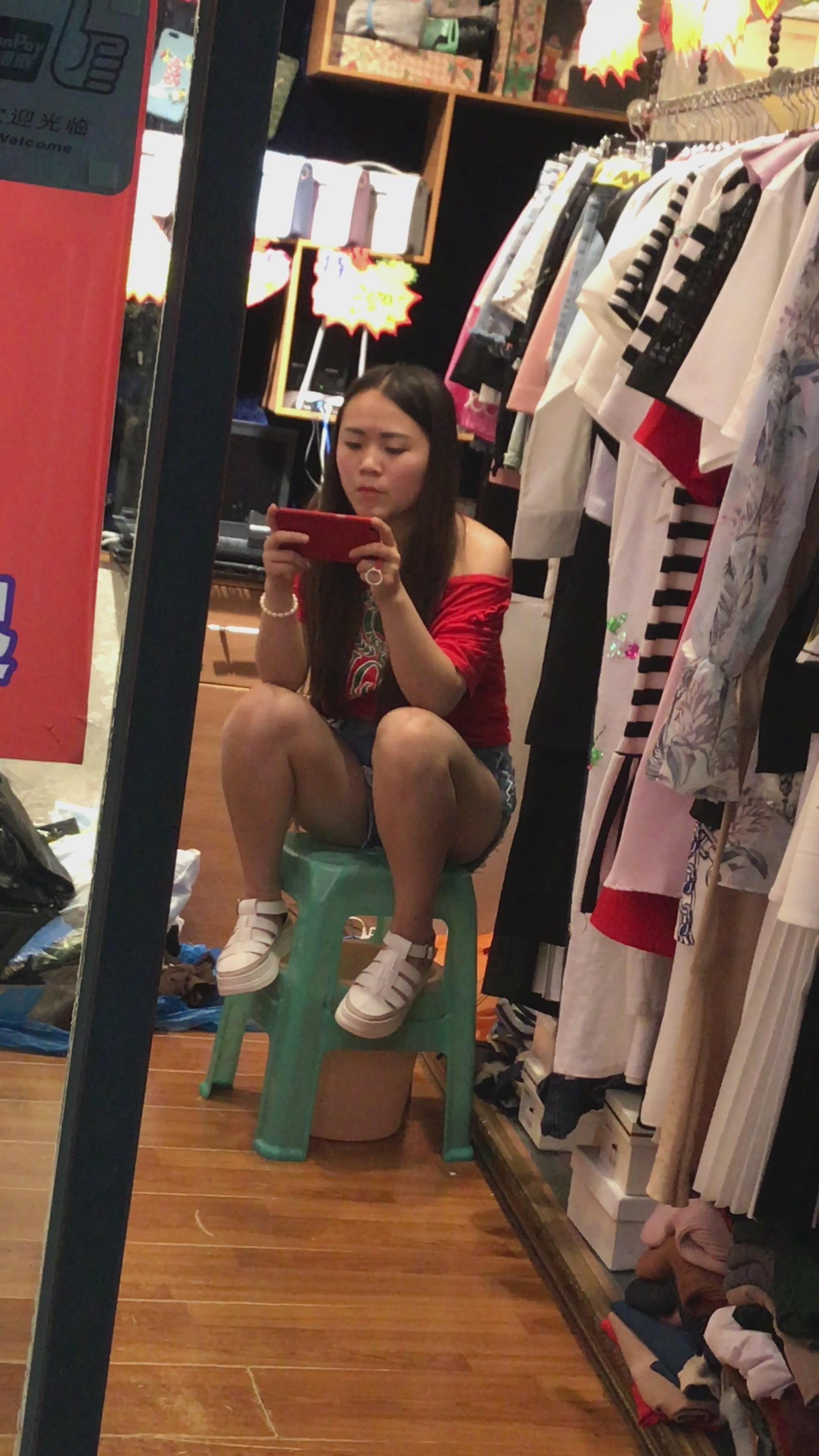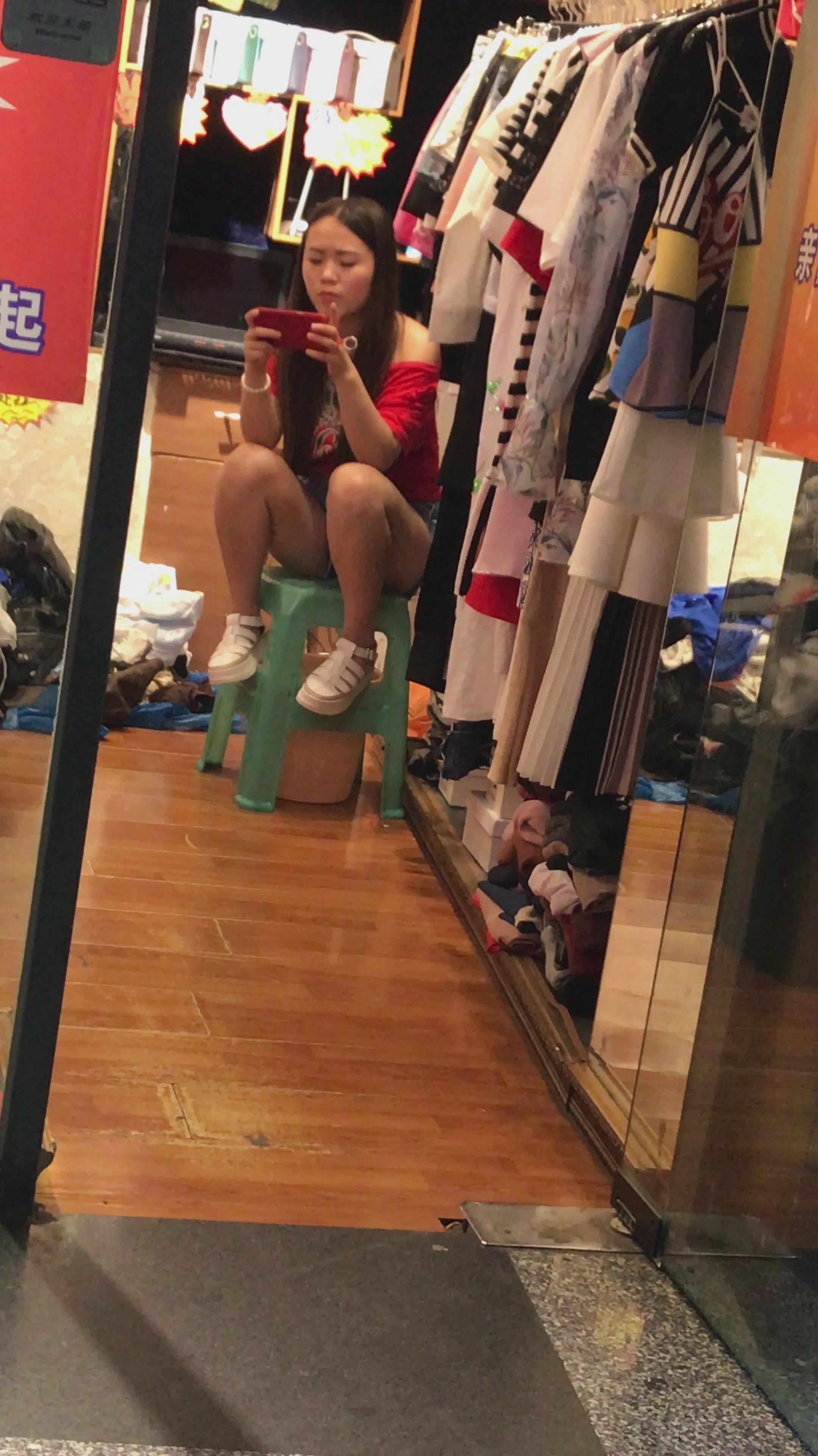 4K - 服装店玩手机的妹纸 编号4068 |
