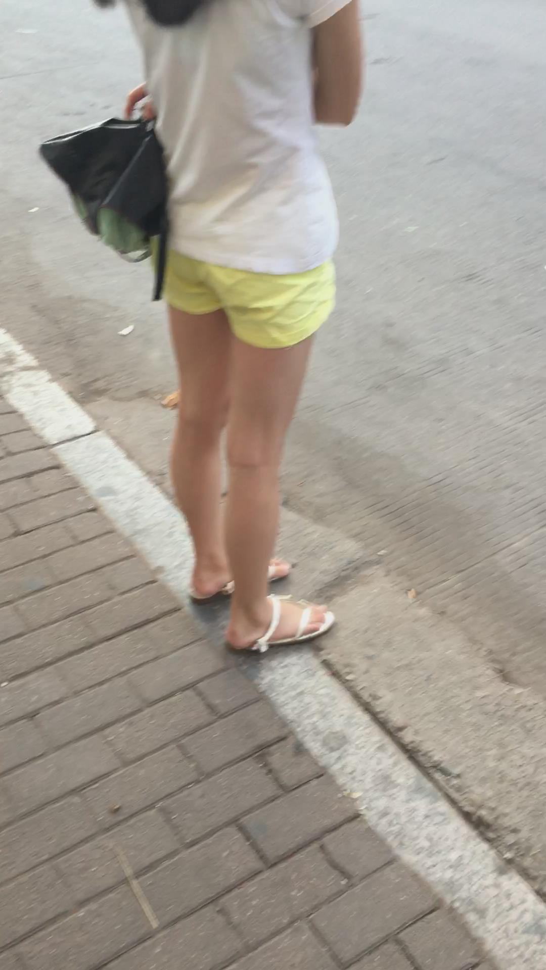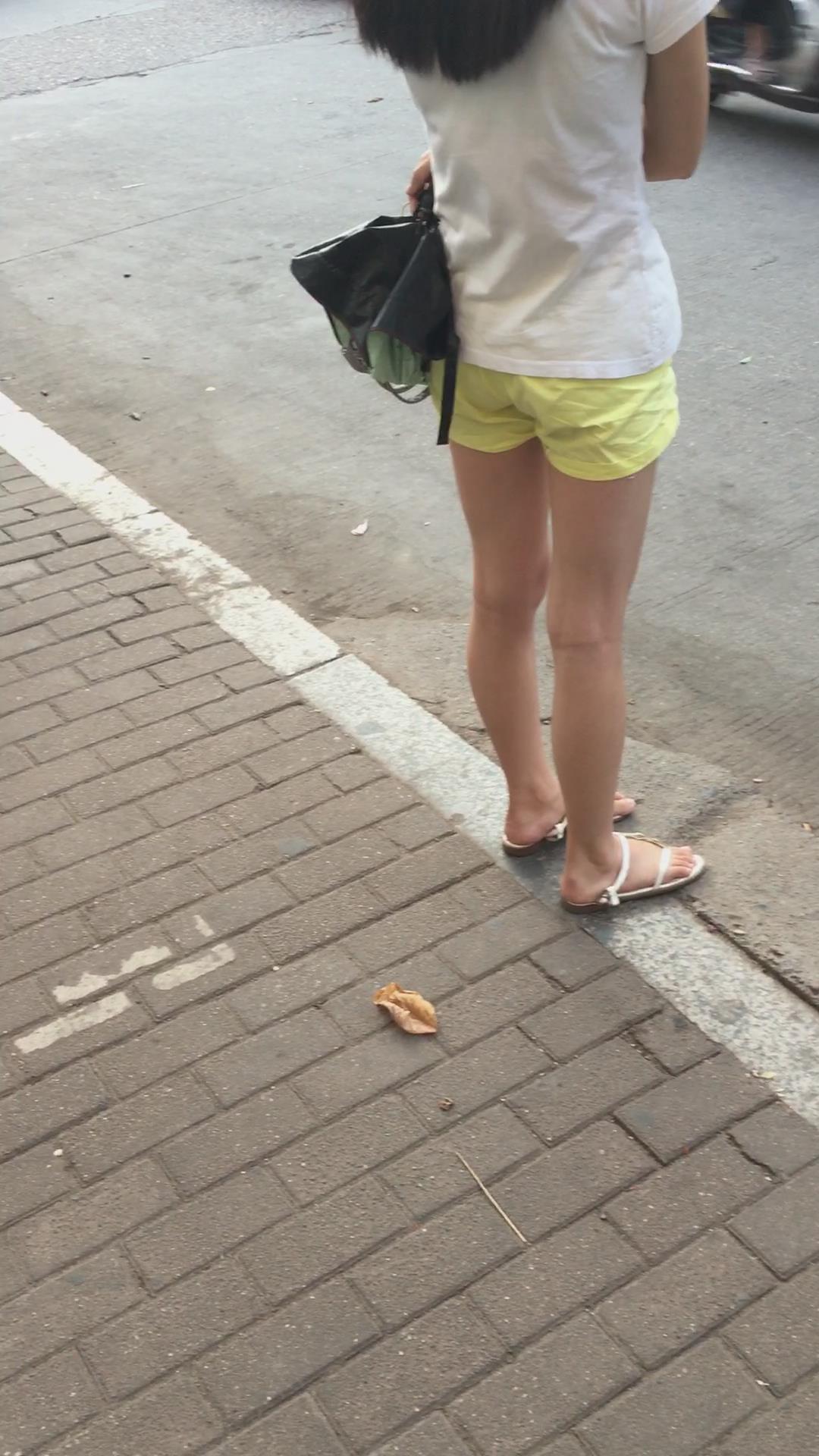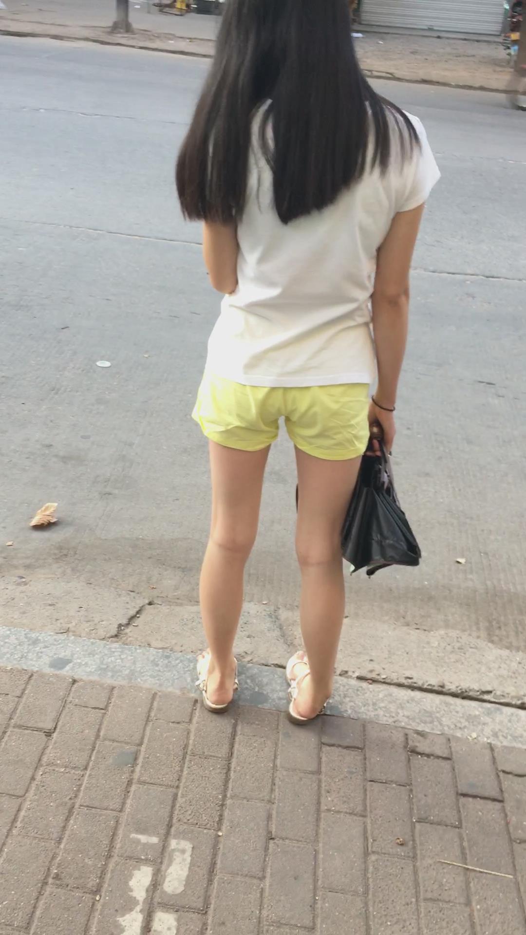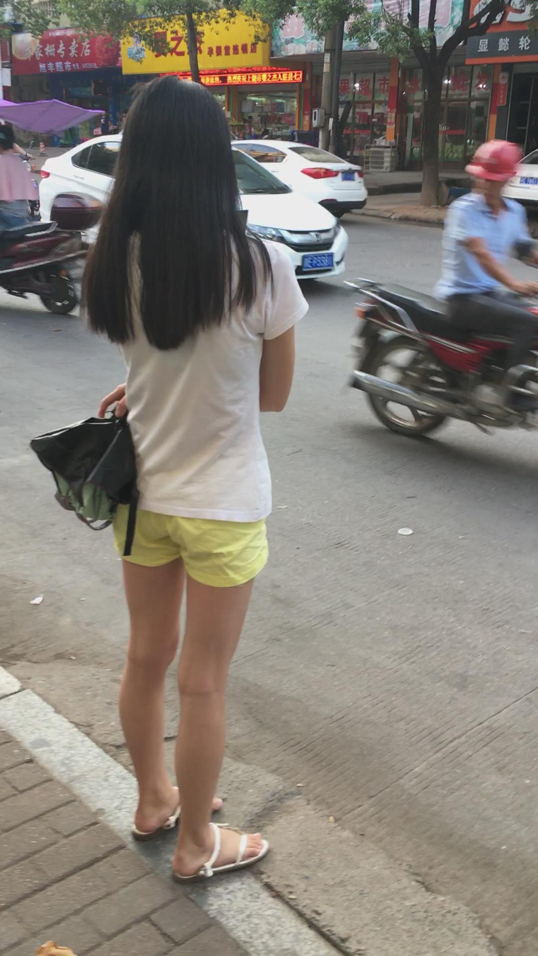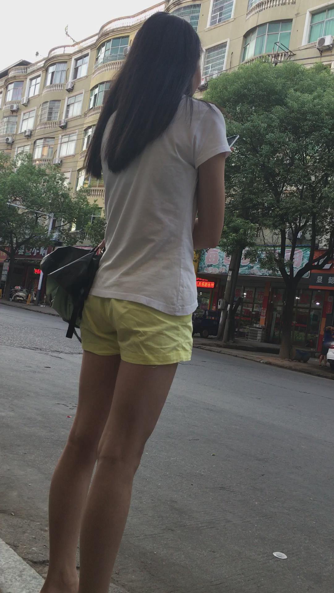 白色体恤黄色短裤娇小身材美眉 编号4071 |