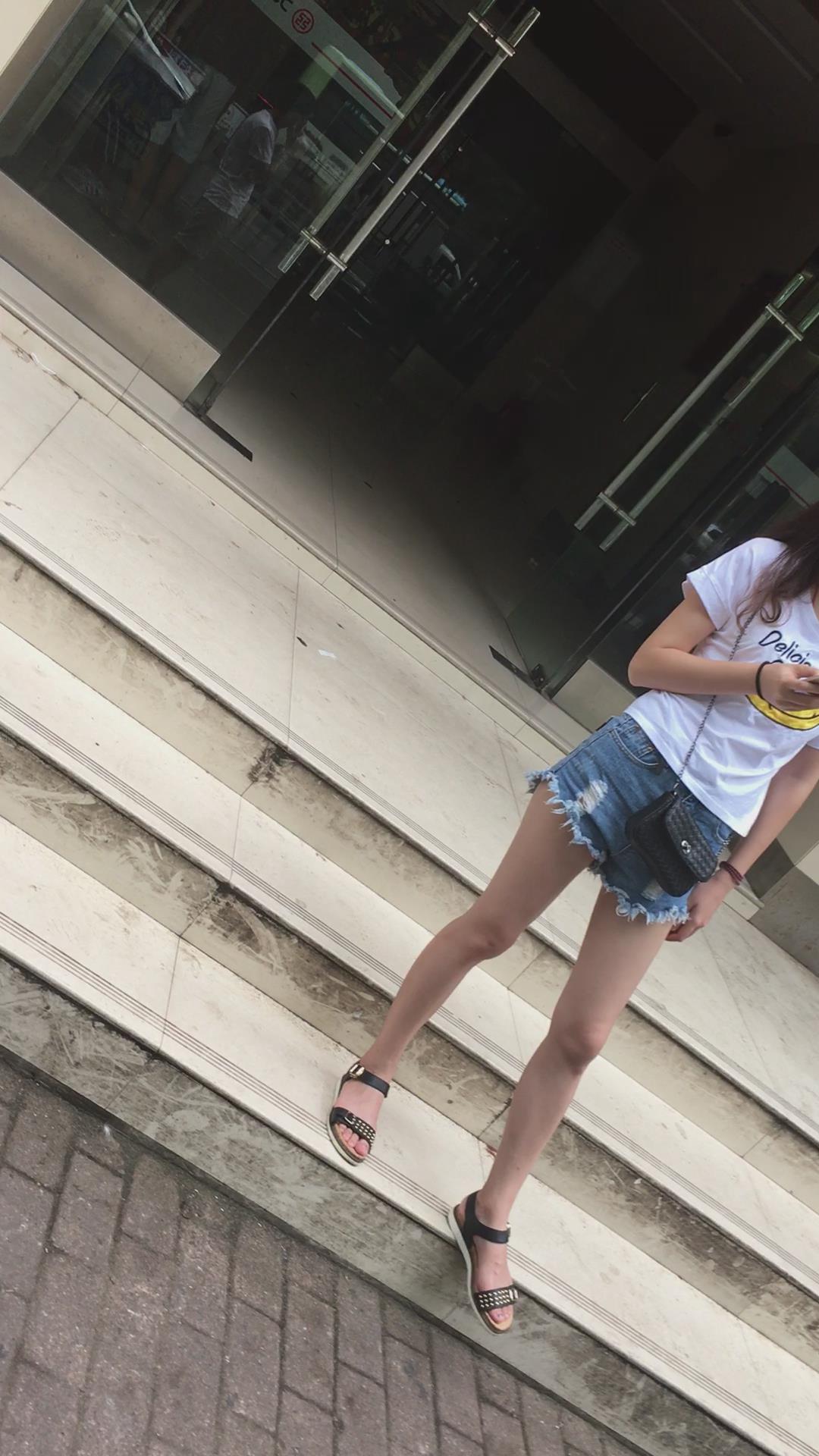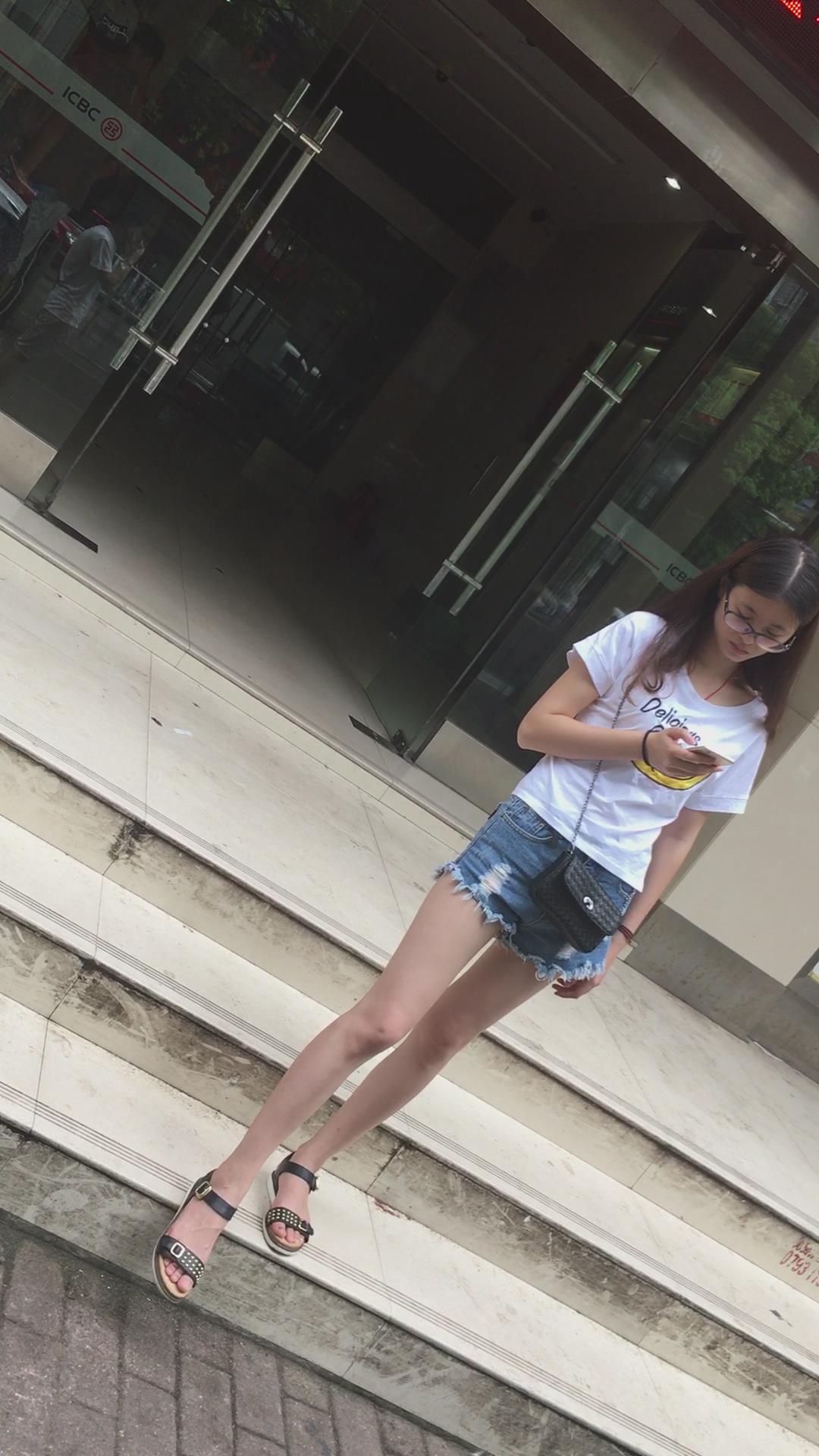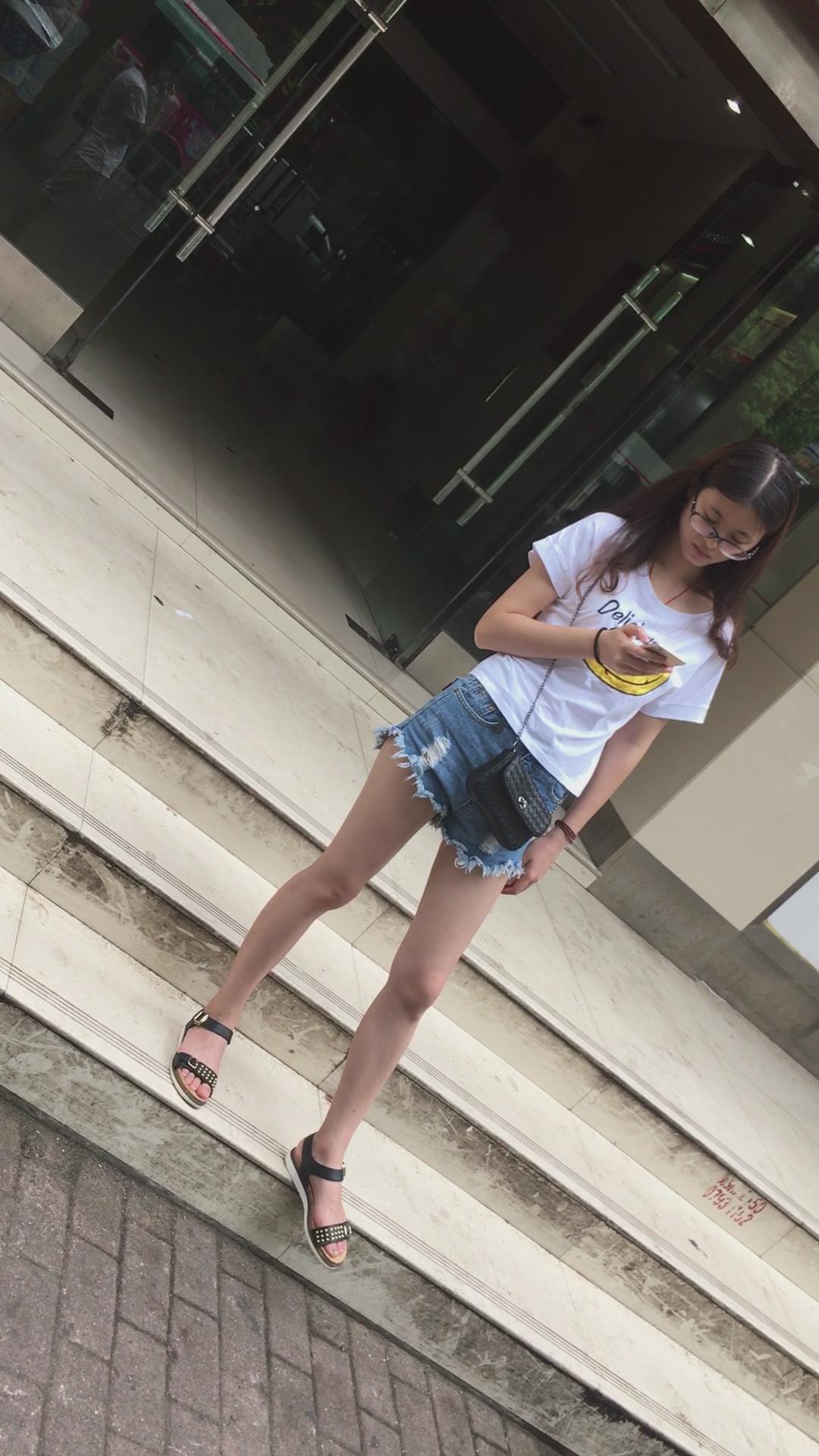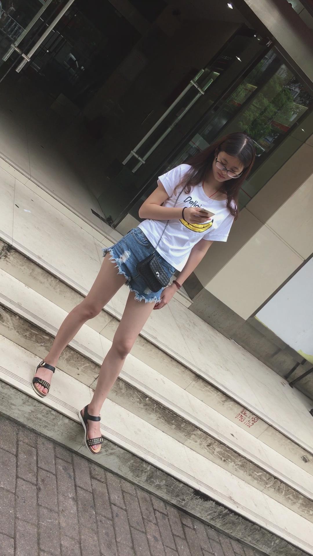 广场上在等人的白T恤热裤眼镜妹 编号4096 |