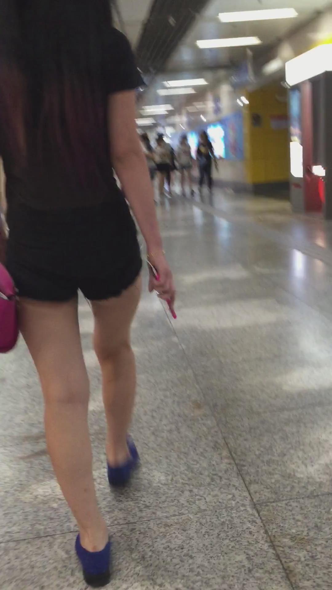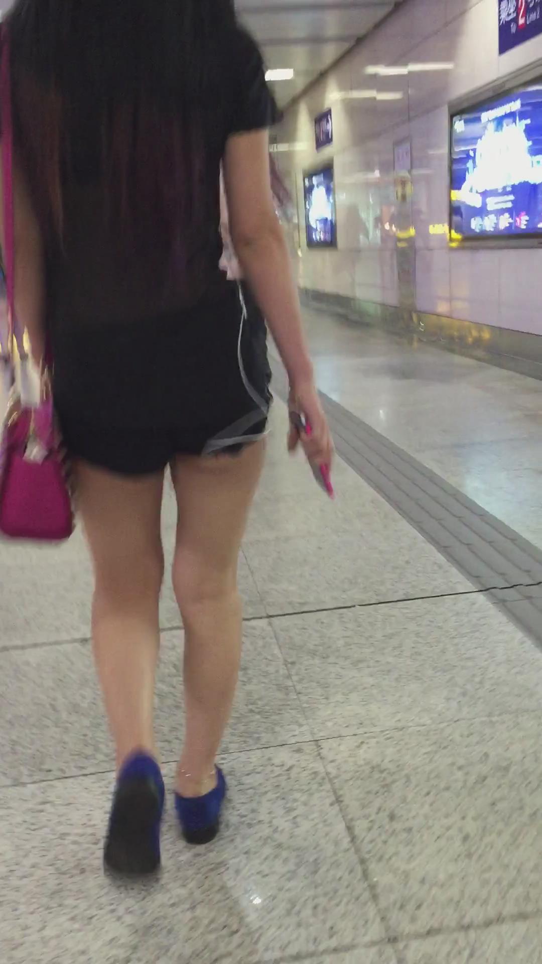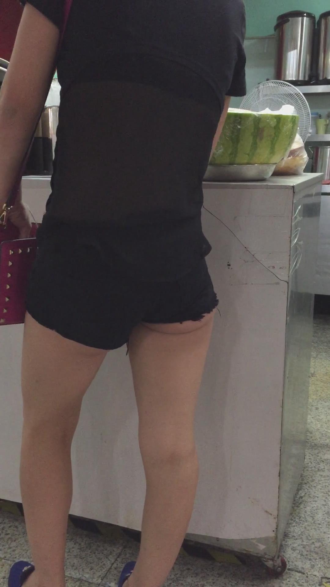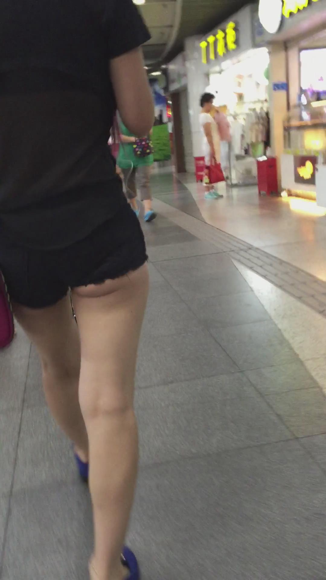 黑色超短热裤T恤衫露出屁股蛋蛋街拍美女 编号4108 |