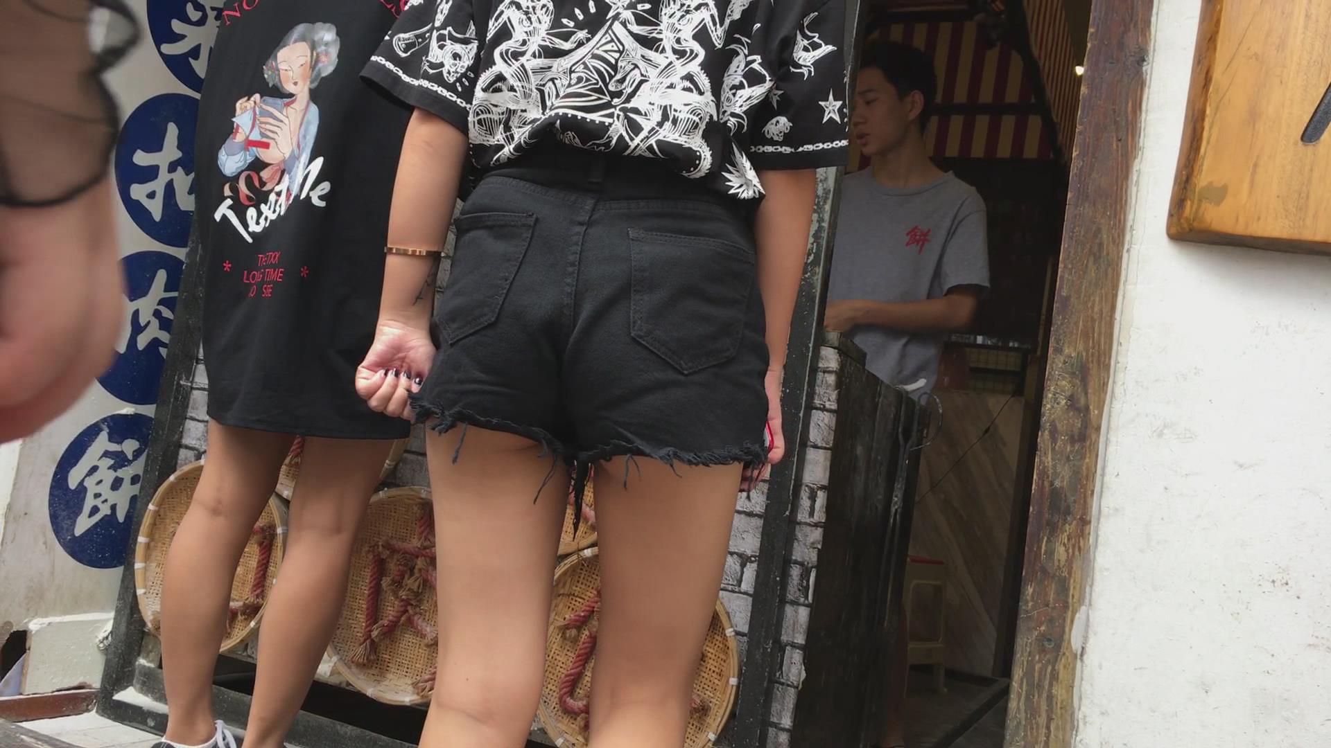 黑色牛仔热裤苹果臀美眉 编号4148 |