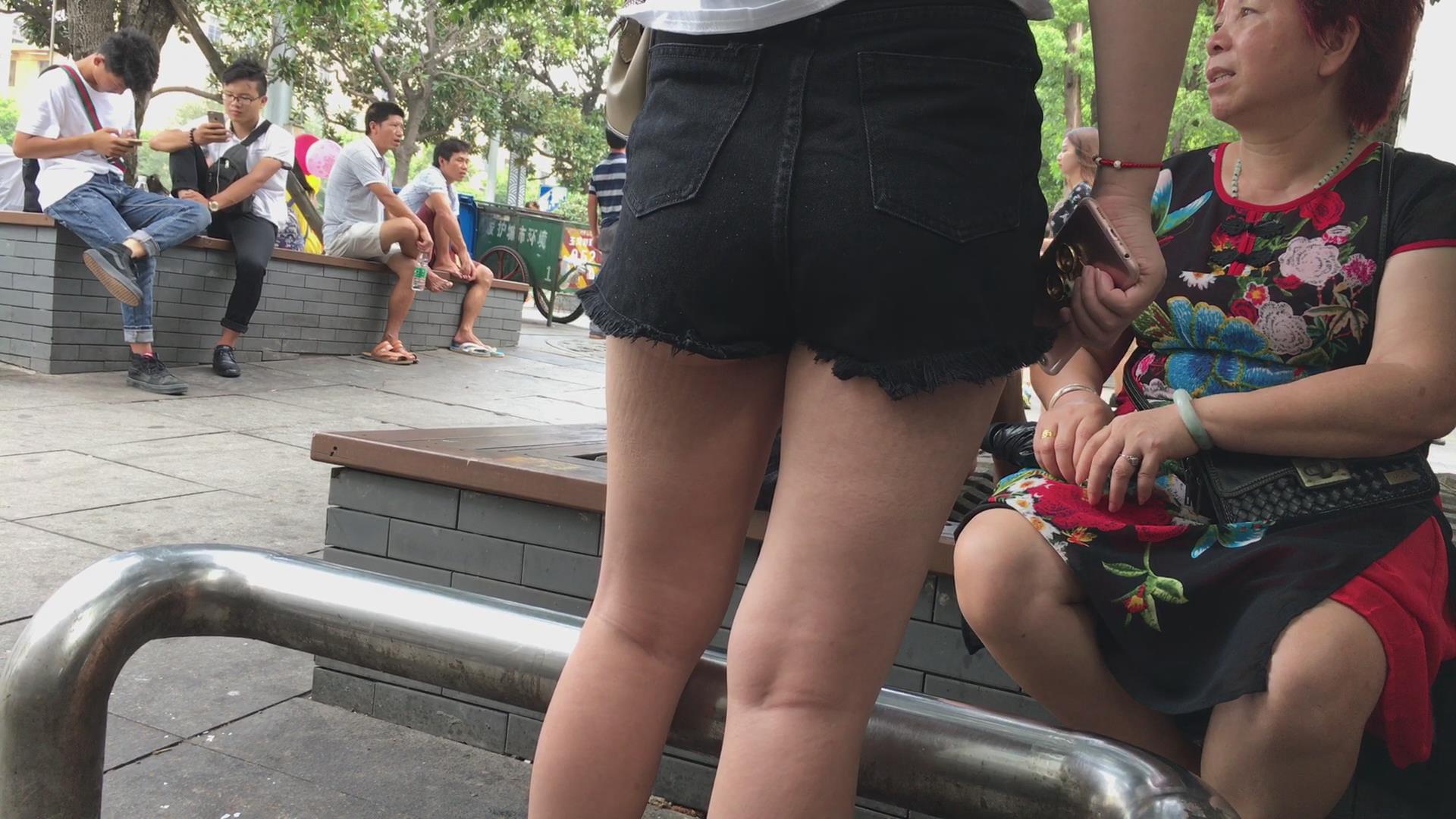 黑色随便高腰短裤丰臀美眉 编号4149 |