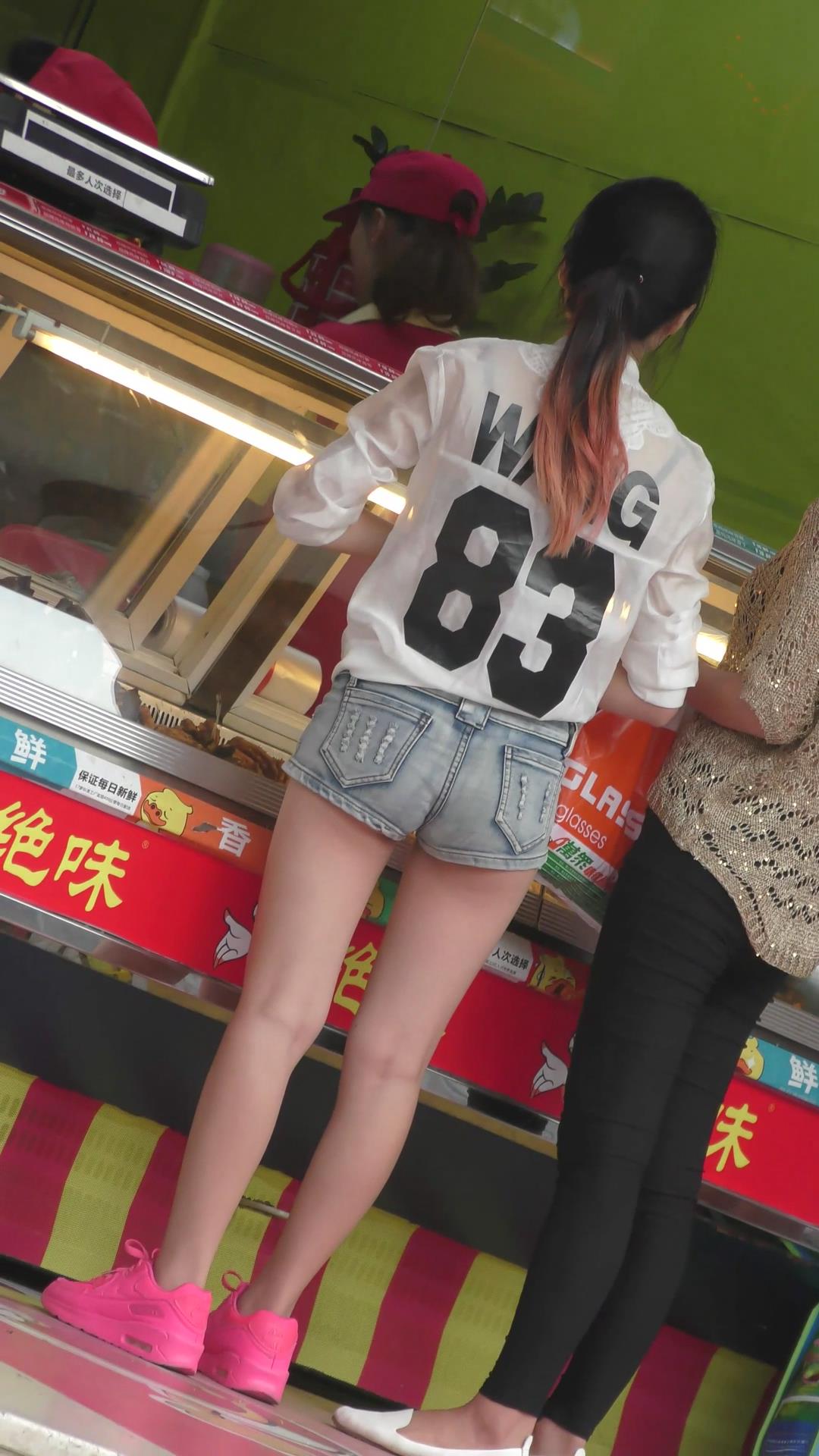 粉色运动鞋牛仔热裤雪白大腿美眉 编号4552 |