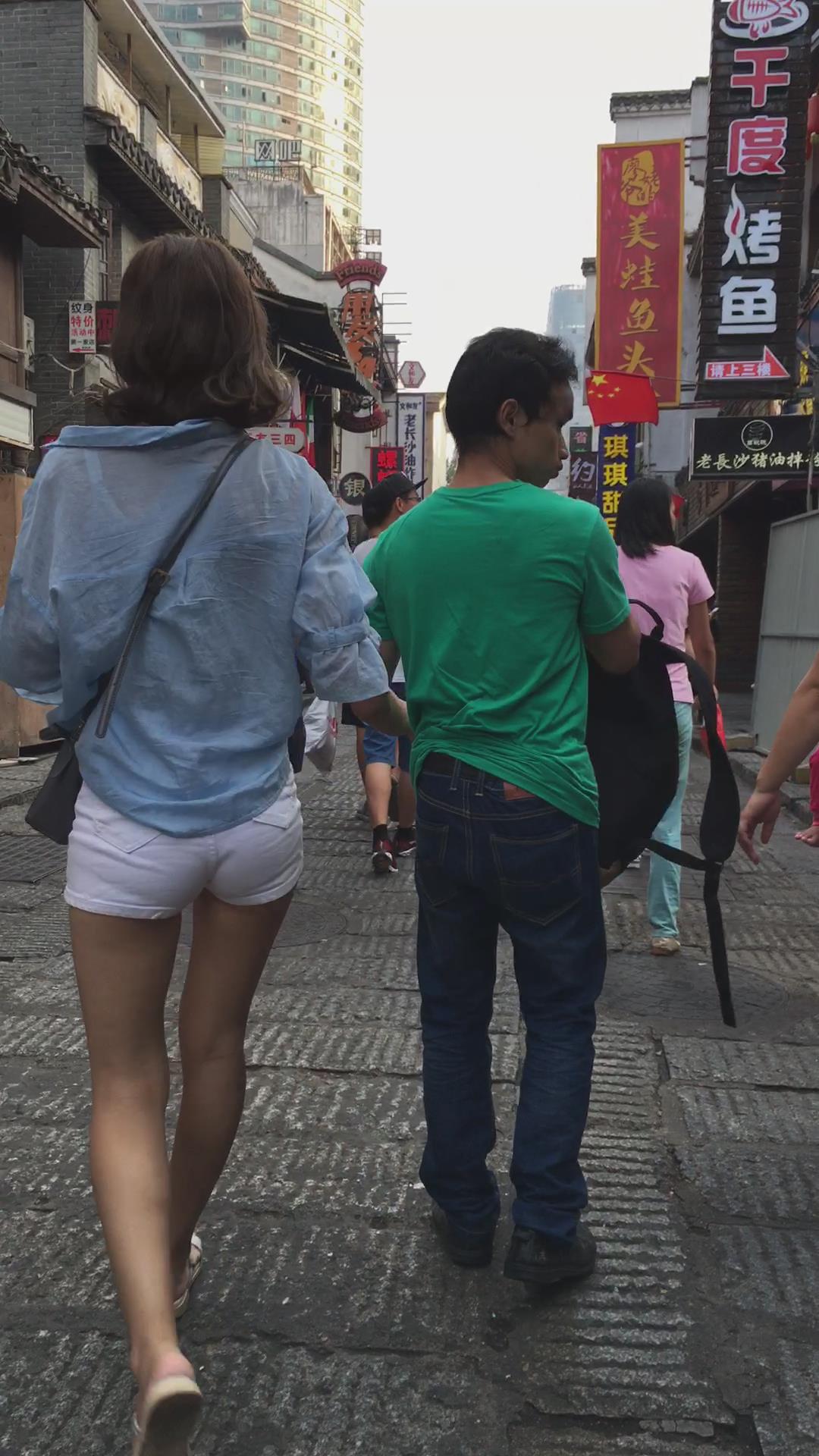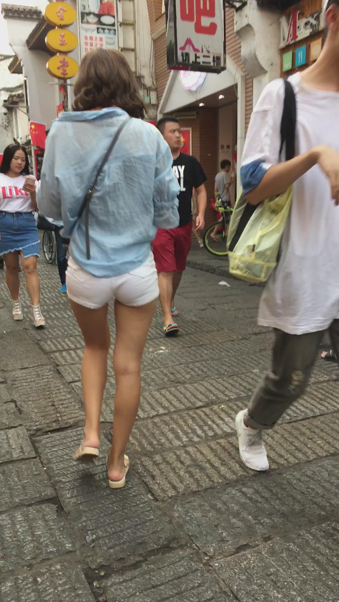跟拍蓝T恤圆臀白短热裤小清新妹子 编号4222 |