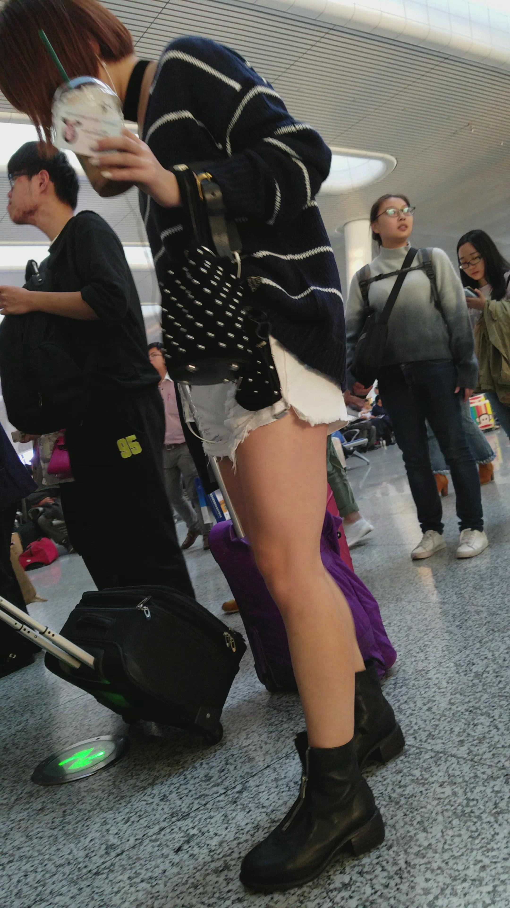 4k-车站排队检票的性感美腿白热裤短发女孩 编号4361 |