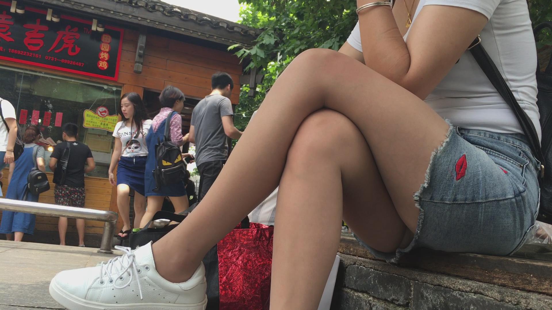 花坛边休息的短热裤白皙美腿女孩 编号4365 |