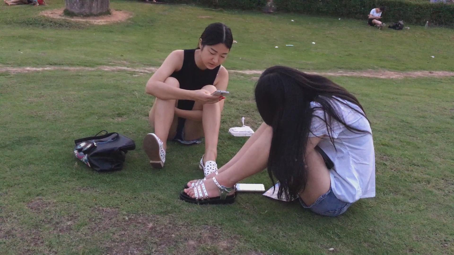 公园草地上闲聊的两姐妹 编号4371 |