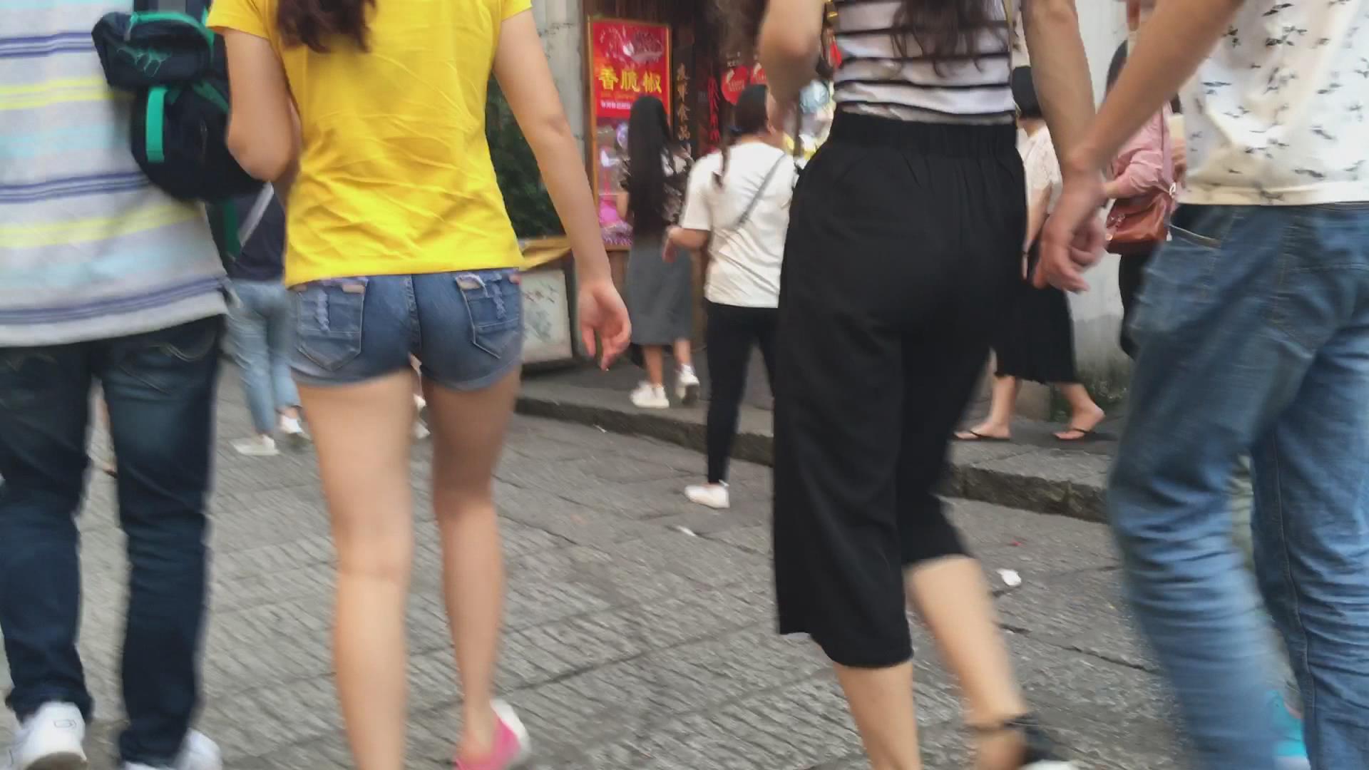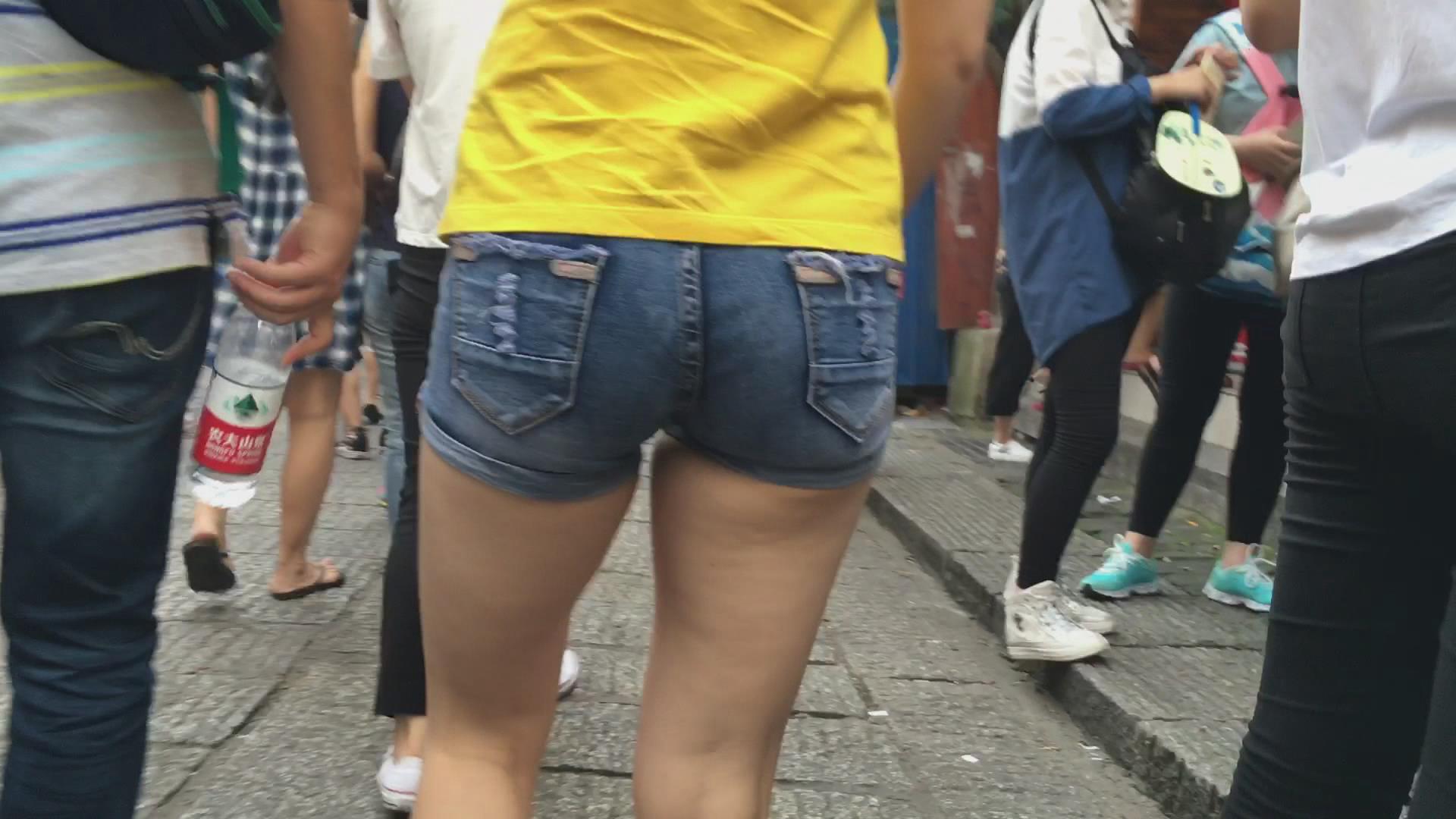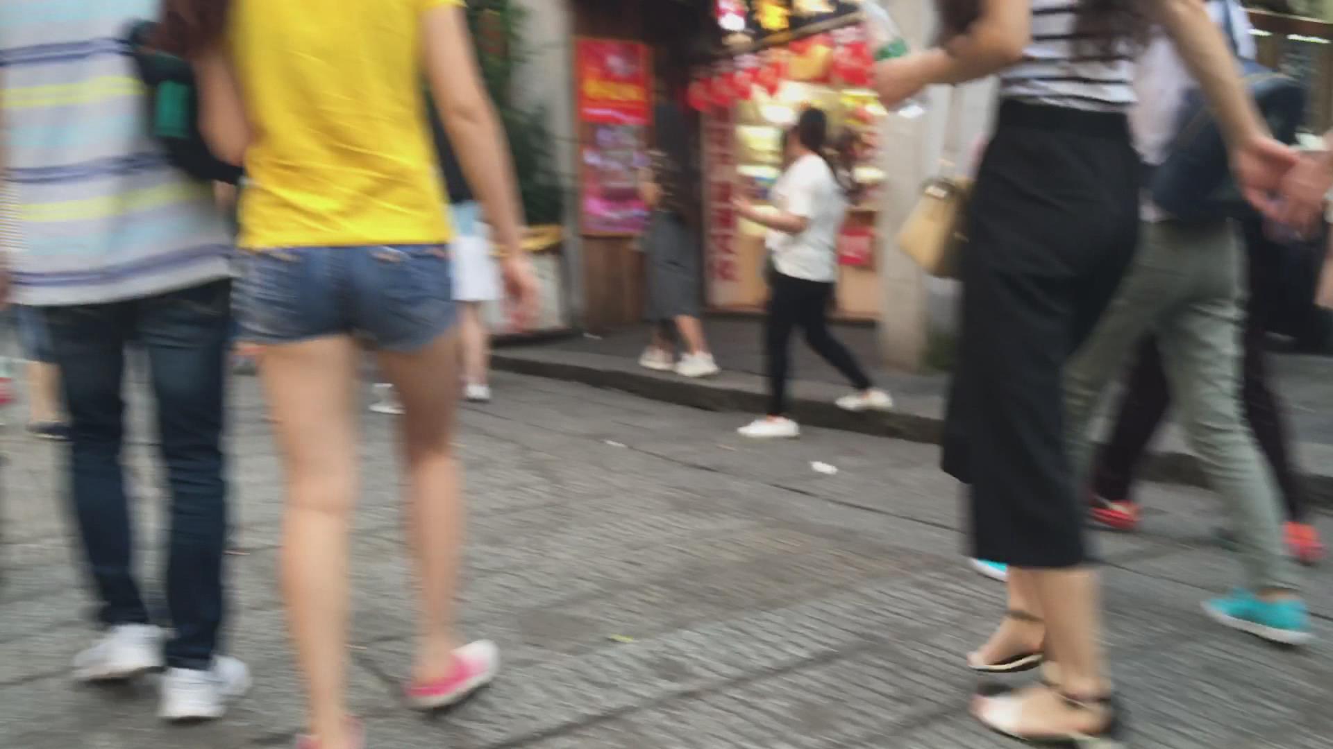 街拍黄T恤紧牛热裤光腿美女逛街 编号4384 |