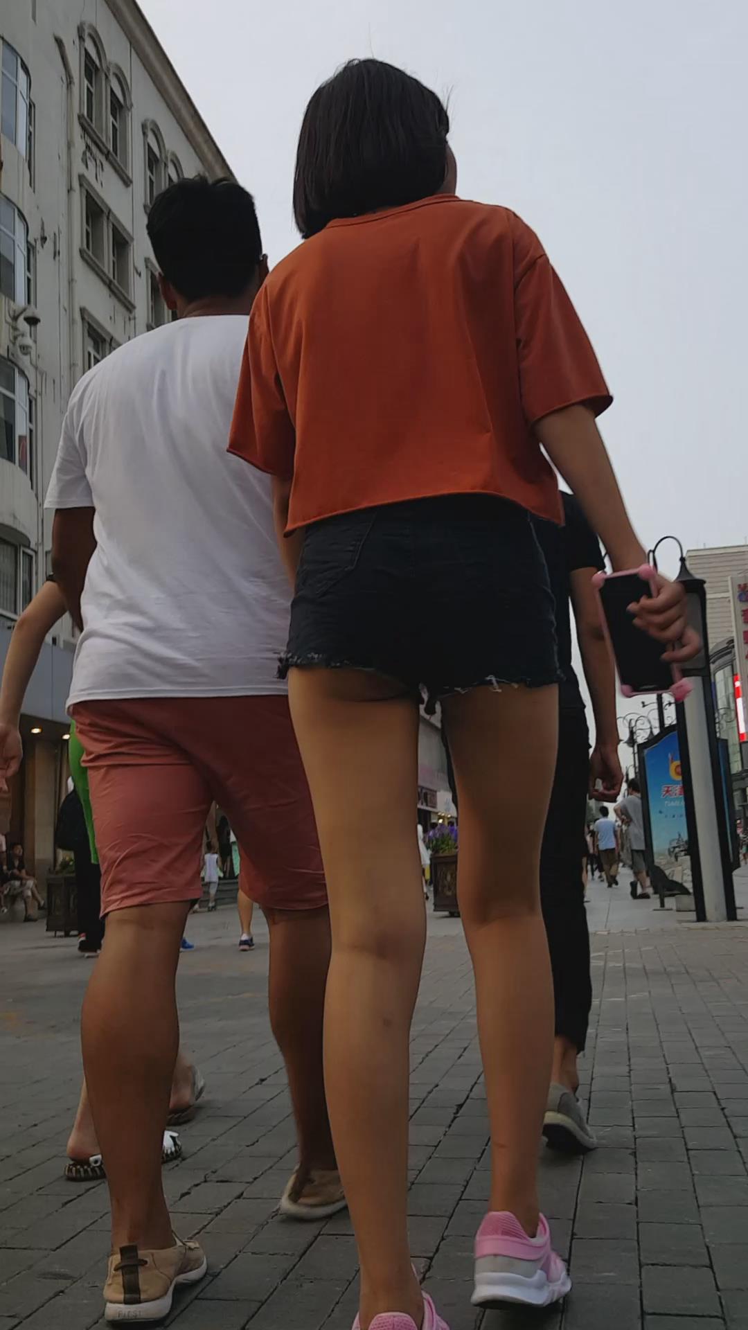 橘色T恤运动鞋美女的超短热裤短得可以 编号4450 |