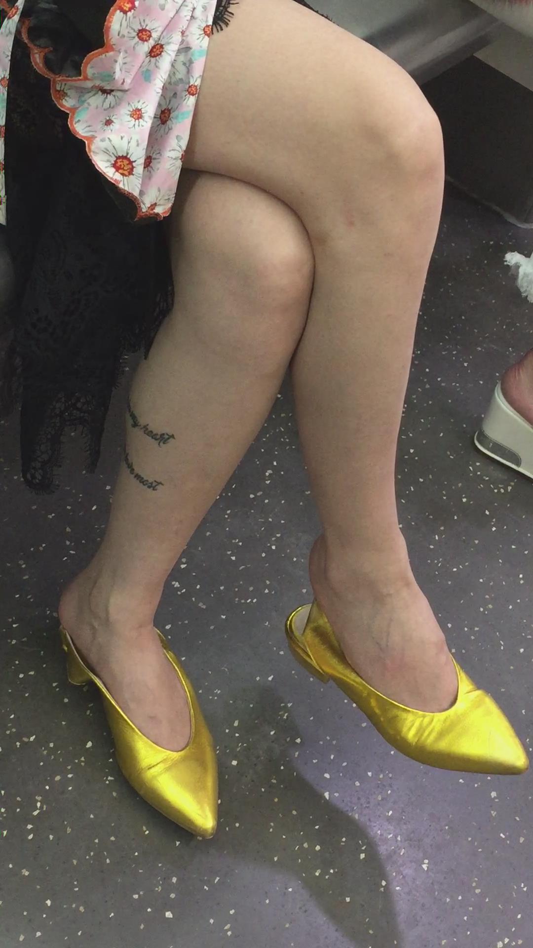地铁拍摄极品裸腿金色平底鞋美女 编号1698 |